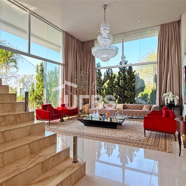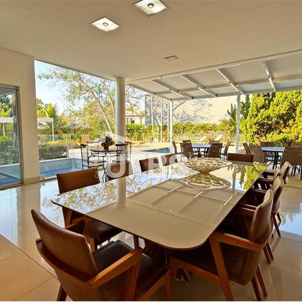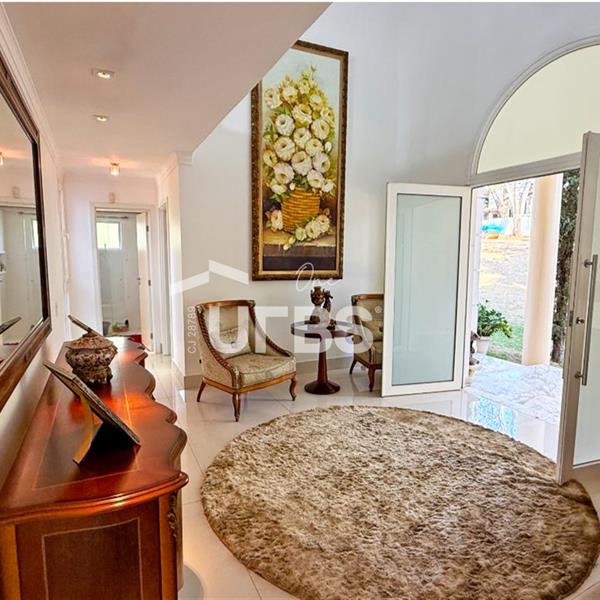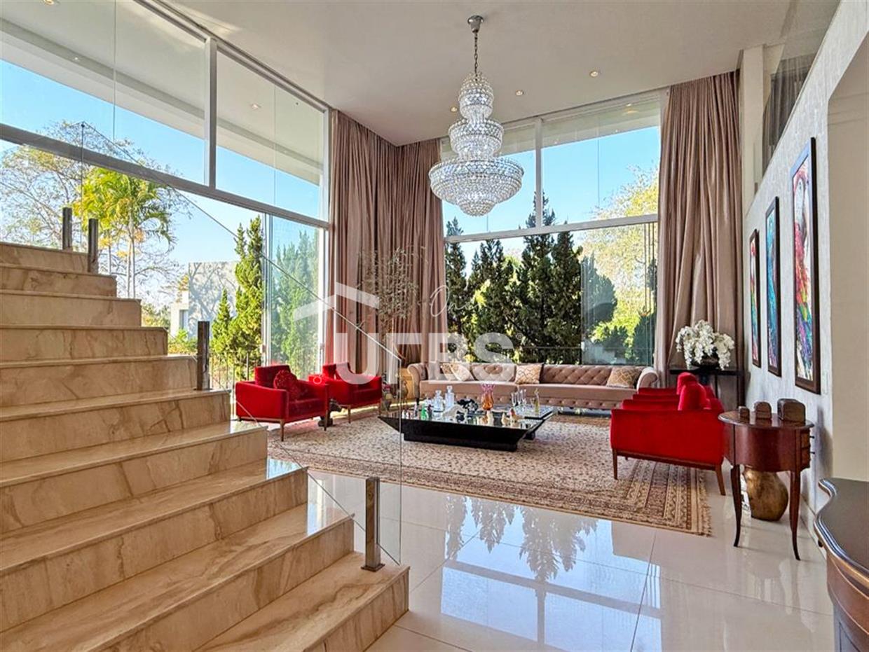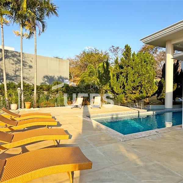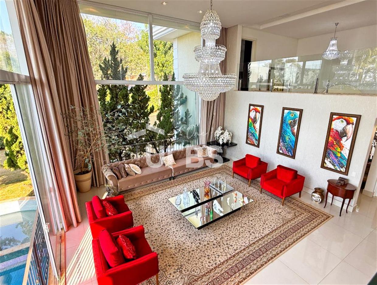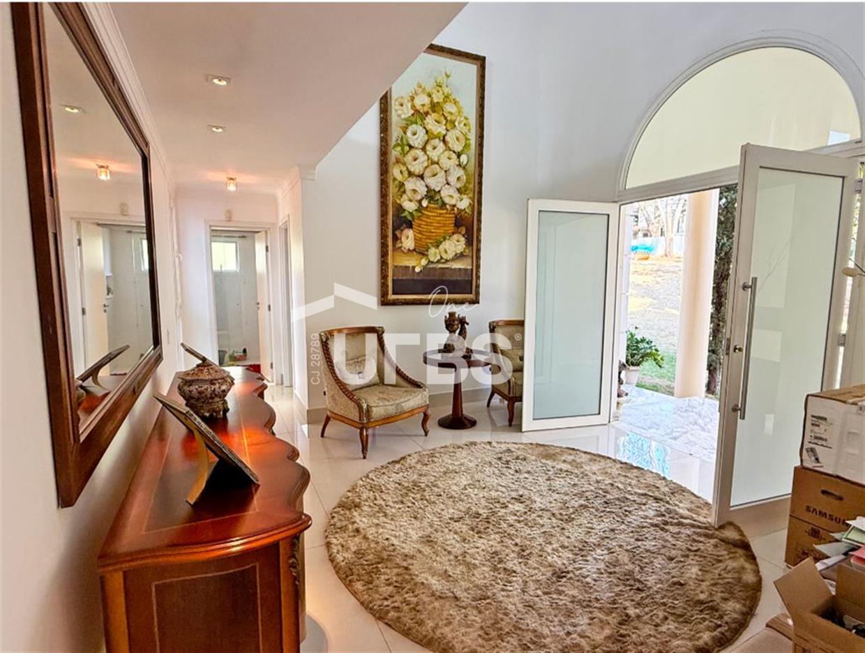 SOBRADO ESTILO NEOCLÁSSICO Sobrado no Aldeia do Vale: Fachada imponente, área privativa 679 m2, área do lote 2.979 m2, 4 vagas cobertas, lobby de entrada com pé direito duplo amplo, sala office + banheiro, 3 salas sendo uma de estar, 2° sala intima, 3° sala de jantar, Home Theaters, cozinha, área de serviço, dependência de empregada completa, cozinha com acesso interno ao espaço gourmet integrado a varanda direto a piscina e solarium, sauna, piso superior acesso pela escada, sala intima de tv, mirante com vista para o quintal, 5 suítes, 2 c/ varandas e 3 c/ balcony, salão de festa, gourmet + 2 lavabos,