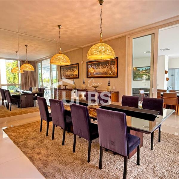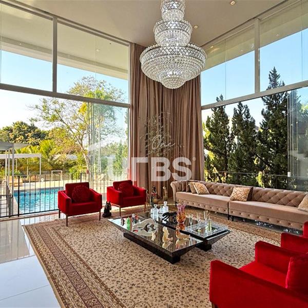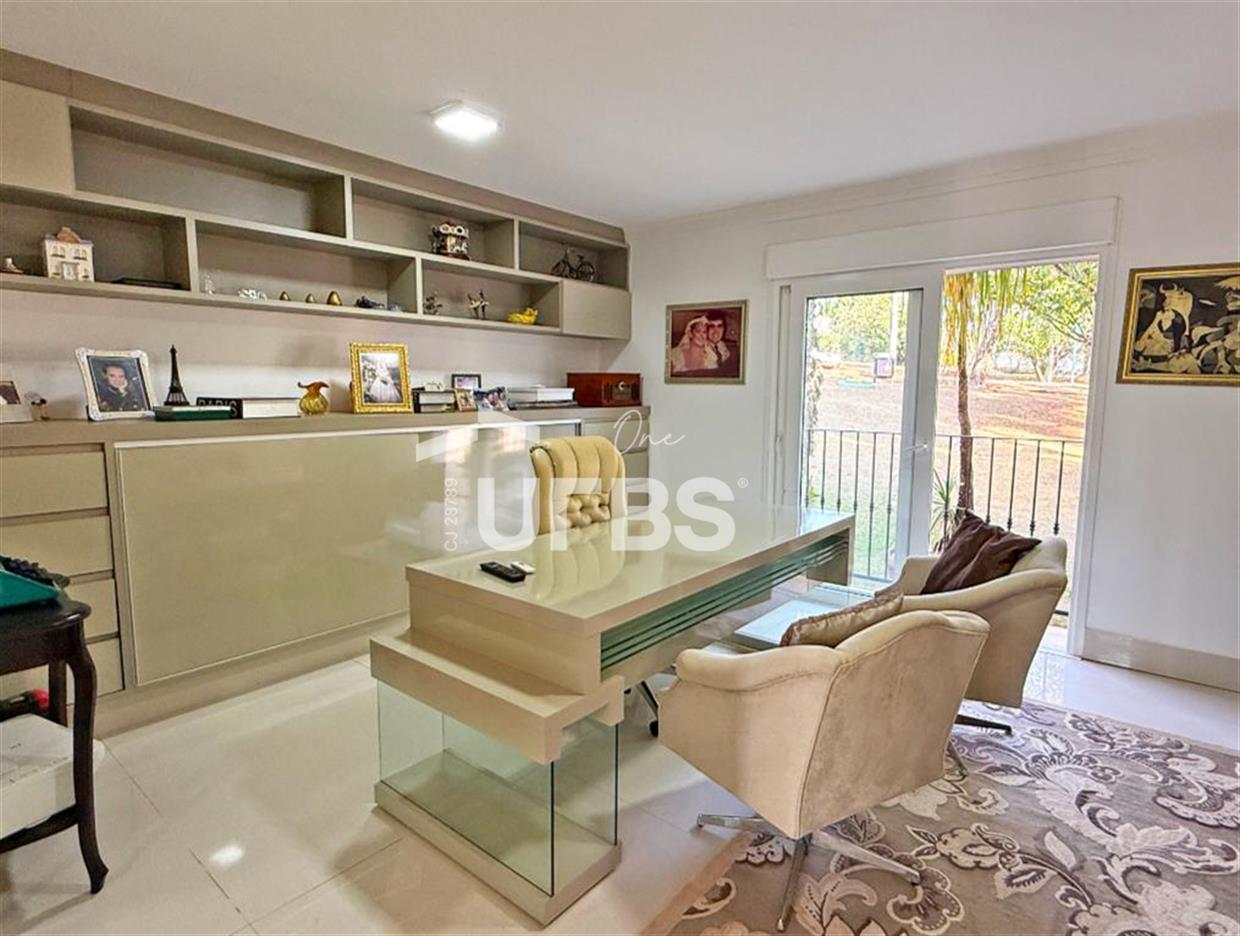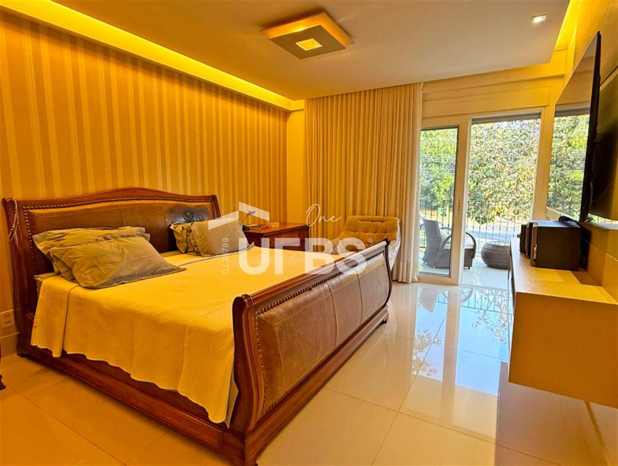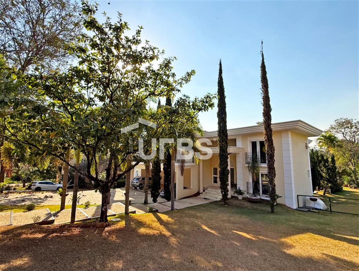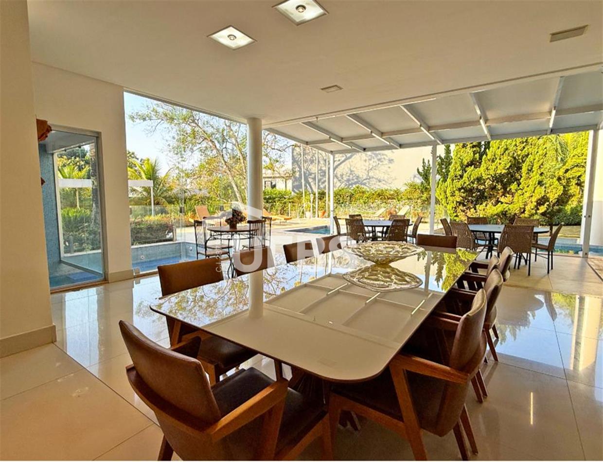 SOBRADO ESTILO NEOCLÁSSICO Sobrado no Aldeia do Vale: Fachada imponente, área privativa 679 m2, área do lote 2.979 m2, 4 vagas cobertas, lobby de entrada com pé direito duplo amplo, sala office + banheiro, 3 salas sendo uma de estar, 2° sala intima, 3° sala de jantar, Home Theaters, cozinha, área de serviço, dependência de empregada completa, cozinha com acesso interno ao espaço gourmet integrado a varanda direto a piscina e solarium, sauna, piso superior acesso pela escada, sala intima de tv, mirante com vista para o quintal, 5 suítes, 2 c/ varandas e 3 c/ balcony, salão de festa, gourmet + 2 lavabos,