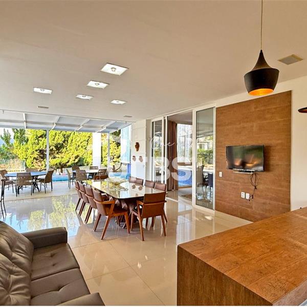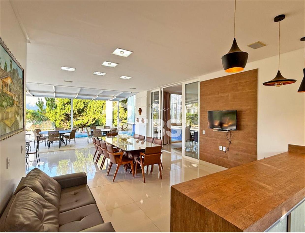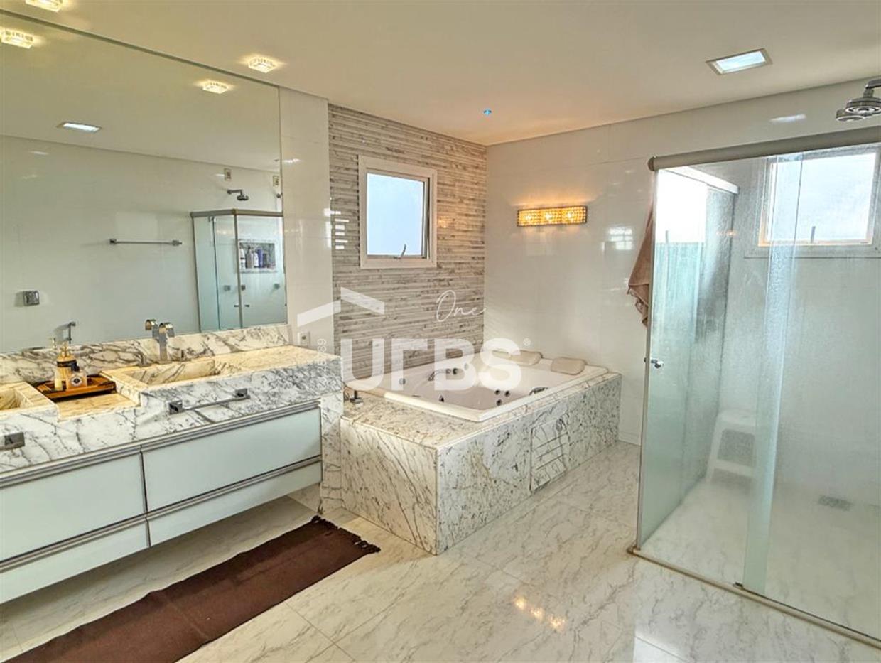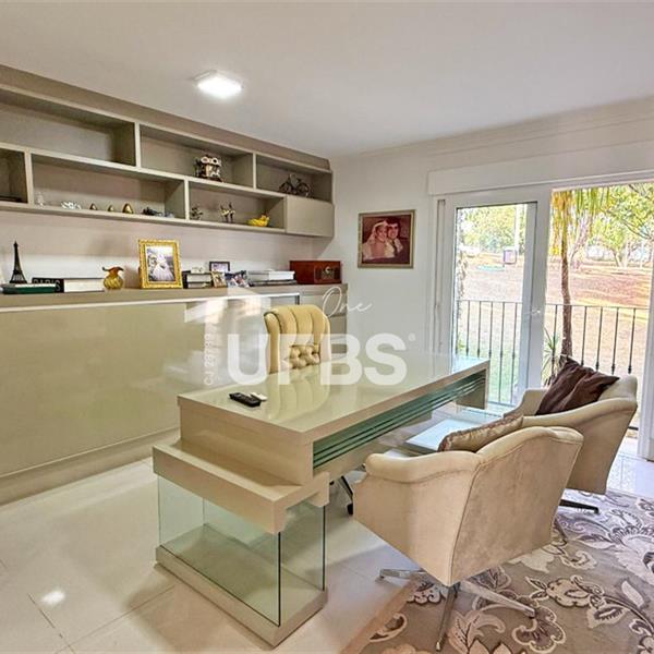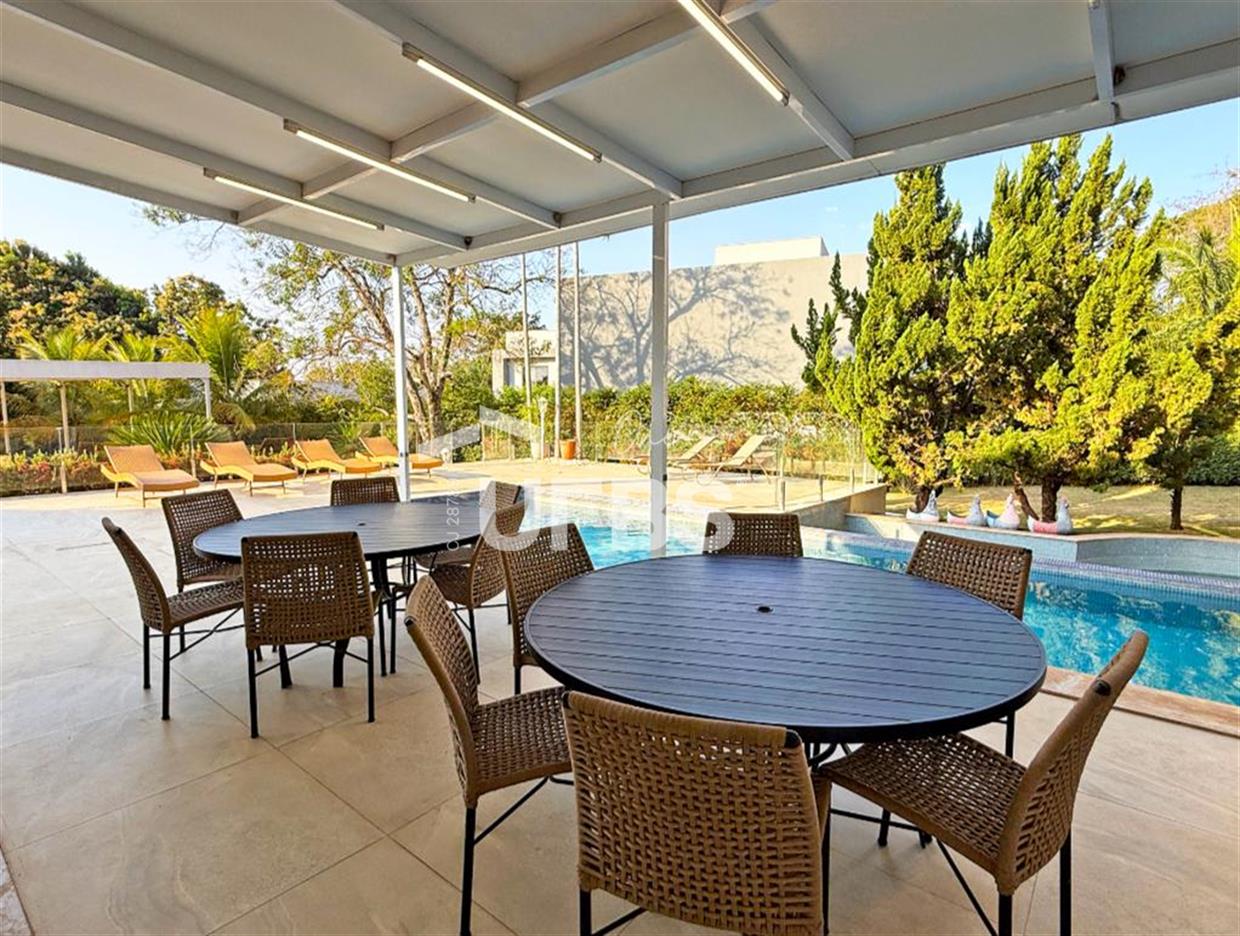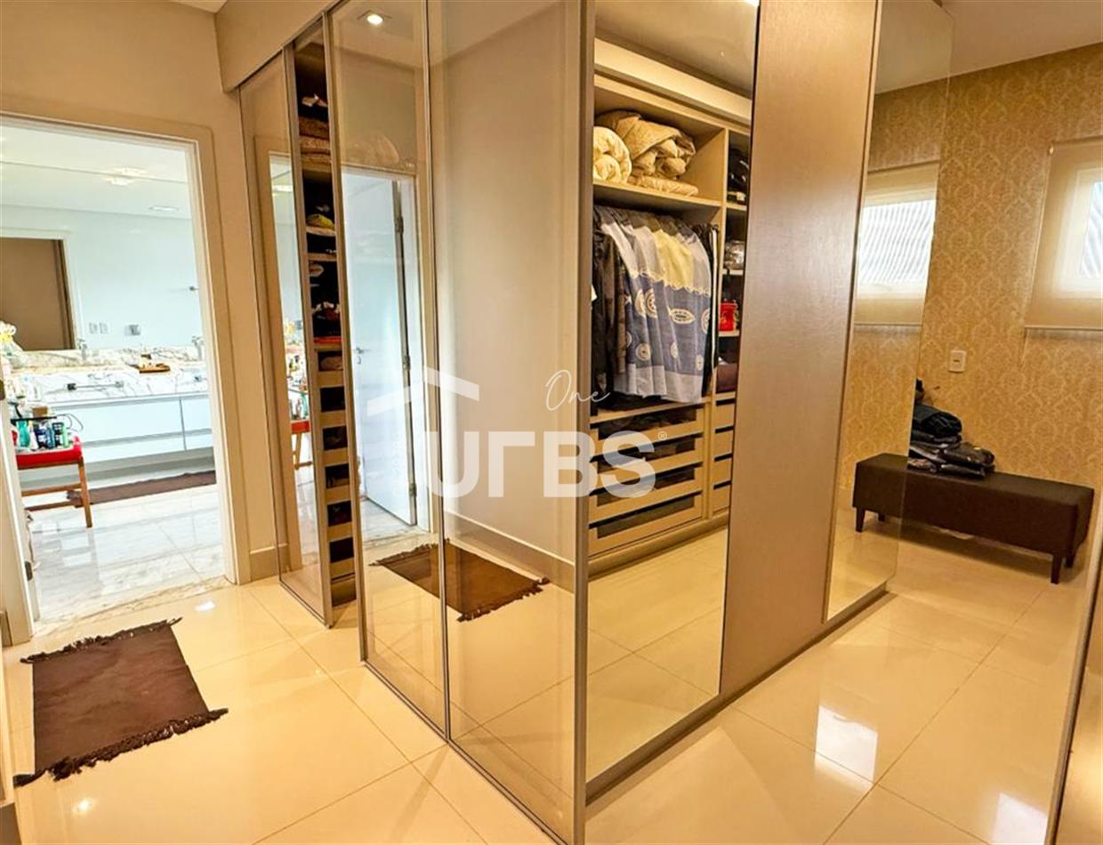 SOBRADO ESTILO NEOCLÁSSICO Sobrado no Aldeia do Vale: Fachada imponente, área privativa 679 m2, área do lote 2.979 m2, 4 vagas cobertas, lobby de entrada com pé direito duplo amplo, sala office + banheiro, 3 salas sendo uma de estar, 2° sala intima, 3° sala de jantar, Home Theaters, cozinha, área de serviço, dependência de empregada completa, cozinha com acesso interno ao espaço gourmet integrado a varanda direto a piscina e solarium, sauna, piso superior acesso pela escada, sala intima de tv, mirante com vista para o quintal, 5 suítes, 2 c/ varandas e 3 c/ balcony, salão de festa, gourmet + 2 lavabos,