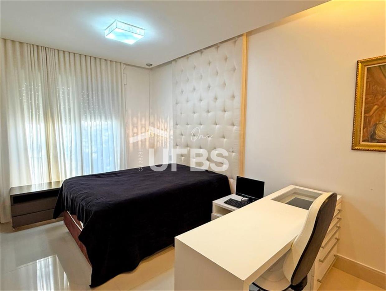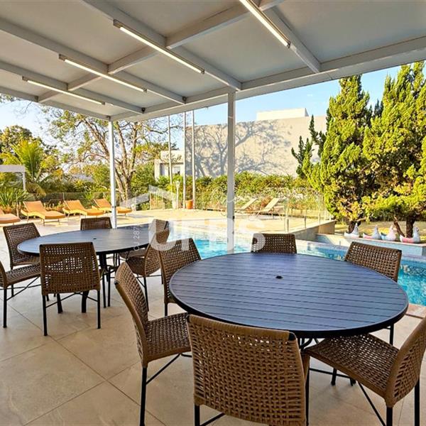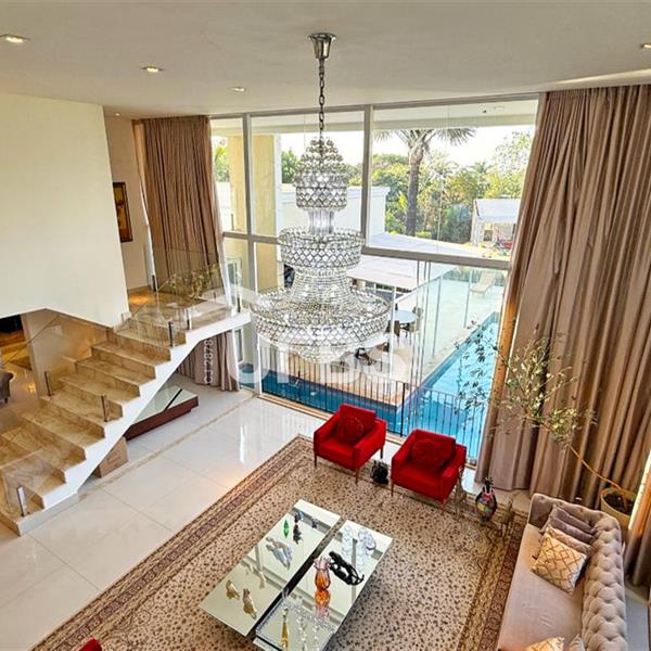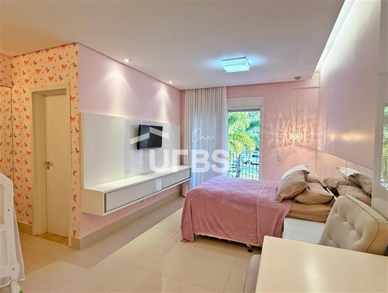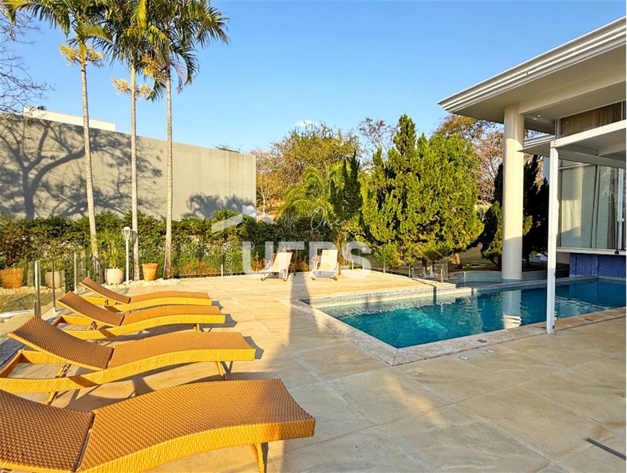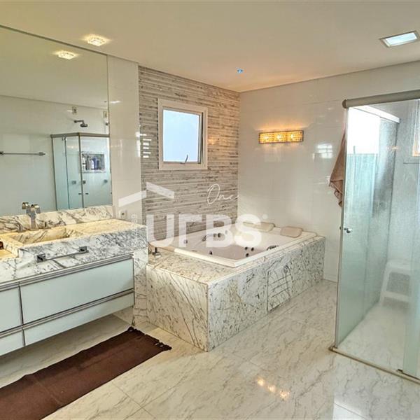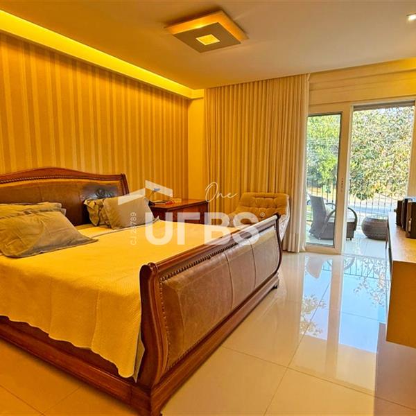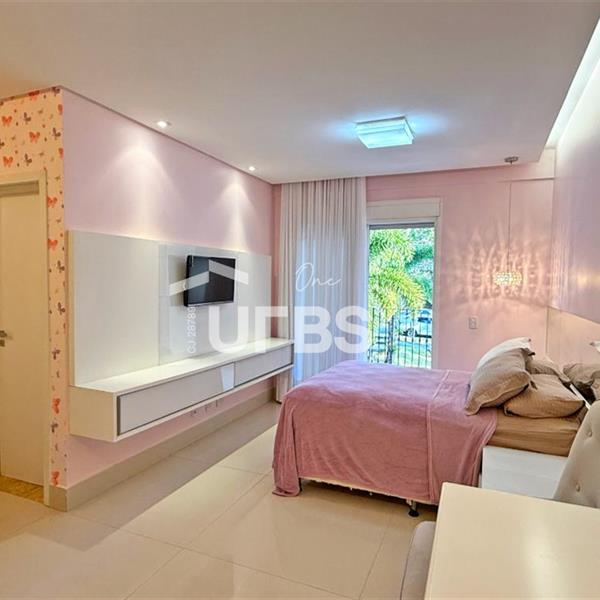 SOBRADO ESTILO NEOCLÁSSICO Sobrado no Aldeia do Vale: Fachada imponente, área privativa 679 m2, área do lote 2.979 m2, 4 vagas cobertas, lobby de entrada com pé direito duplo amplo, sala office + banheiro, 3 salas sendo uma de estar, 2° sala intima, 3° sala de jantar, Home Theaters, cozinha, área de serviço, dependência de empregada completa, cozinha com acesso interno ao espaço gourmet integrado a varanda direto a piscina e solarium, sauna, piso superior acesso pela escada, sala intima de tv, mirante com vista para o quintal, 5 suítes, 2 c/ varandas e 3 c/ balcony, salão de festa, gourmet + 2 lavabos,