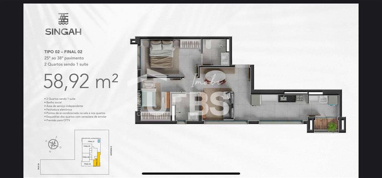 SINGAH - Jardim Goiás Ágio de apartamento no Singah, no Jardim Goiás! Apartamento com entrega prevista para Junho de 2026 conta com 58,92m², 2 quartos sendo 1 suíte e 1 vaga de garagem. O prédio conta com área de lazer completa, piscina na cobertura do prédio com vista livre para Goiânia, salão de festas, salão de jogos, coworking, mini quadra, salão gourmet, brinquedoteca, piscina adulto e infantil. O fluxo de pagamento desde imóvel está muito bom, parcelas baixas, o próximo balão apenas em 2026. Ágio: 139.000,00 Saldo devedor: R$ 536.000,00