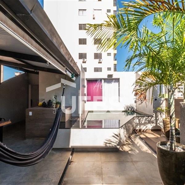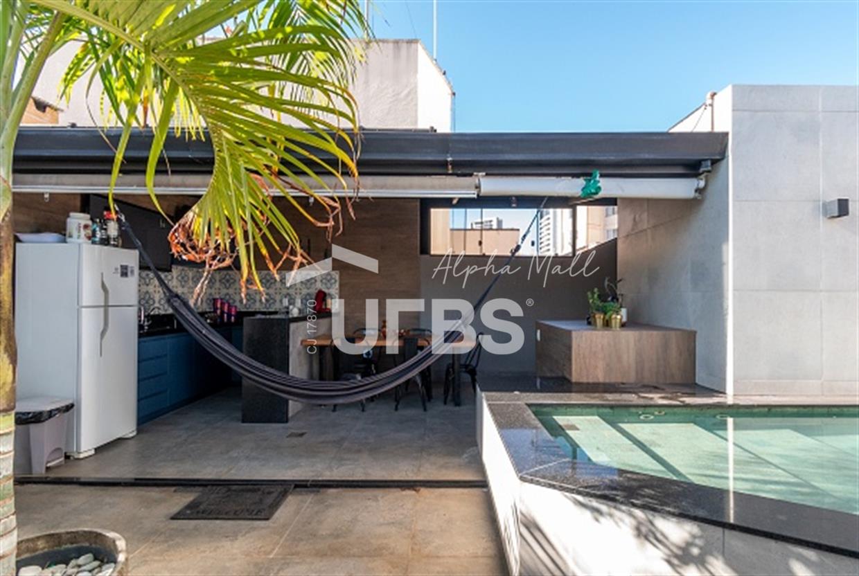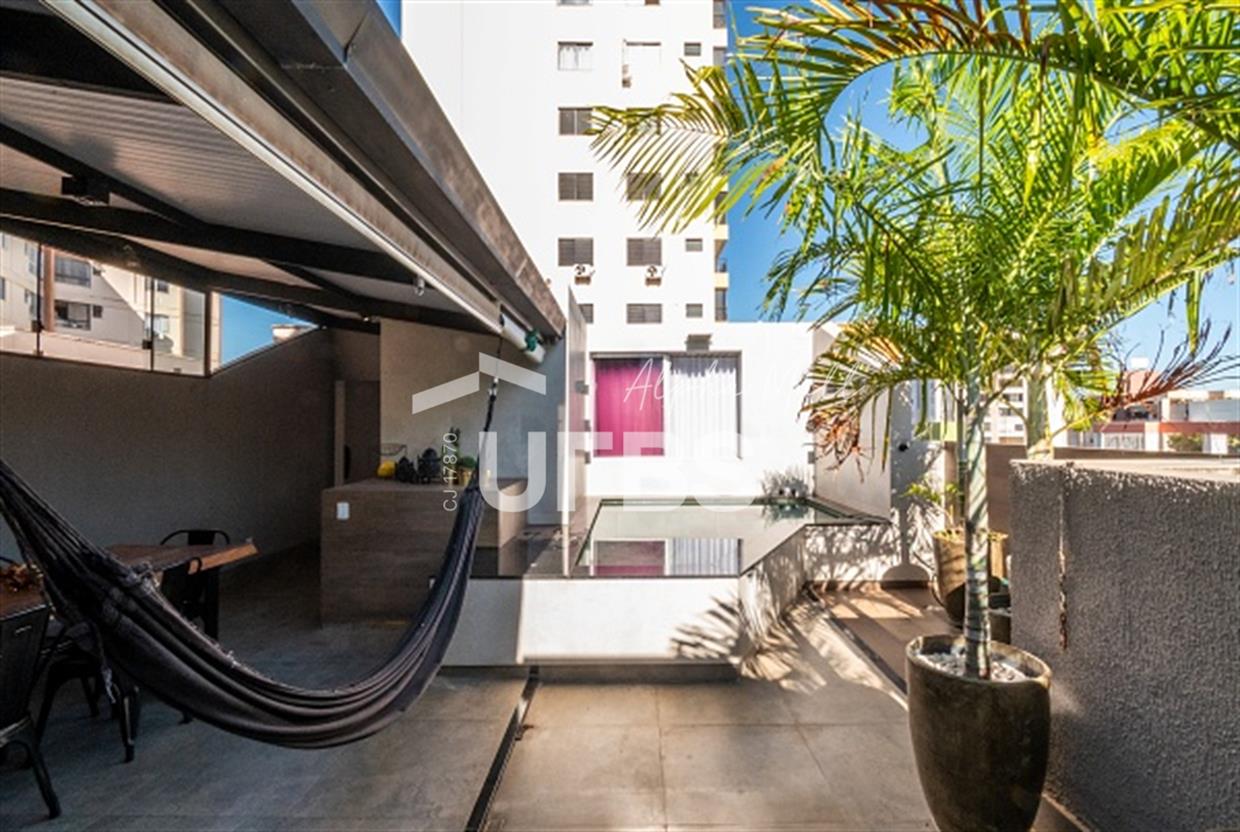 Cobertura no Edifício New York - Setor OesteVocê sonha morar em uma cobertura? Essa realmente é sonho, uma casa suspensa aconchegante ao lado do Lago das Rosas. Reformada, toda com piso em porcelanato, com área de 136 m² de muita privacidade e aconchego. Primeiro piso: sala para dois ambientes, dois quartos com armários (sendo uma suíte) todos com ar condicionado. Banheiro social, escada para a cobertura em granito. Cozinha em conceito aberto, bancadas em granito e área de serviço que inclui roupeiro. Na área superior: uma suíte com closet em armários planejados e ar-condicionado , com área gourmet coberta, toda em armários planejados, piscina com aquecimento, toda revestida em Pedra Natural Hijau, ducha ao ar livre, uma vista incrível para a mata. São duas vagas de garagem coberta, salão de festas. Tudo isso no Setor Oeste, com ruas largas, os melhores restaurantes a 50 passos (Caranhas e Pimentas), padaria SR. padeiro, pizzaria e supermercados e o Lago das Rosas para aproveitar e ver o por do sol.