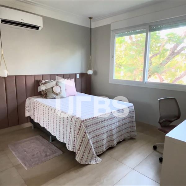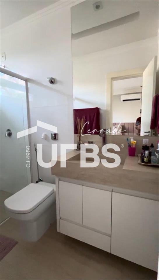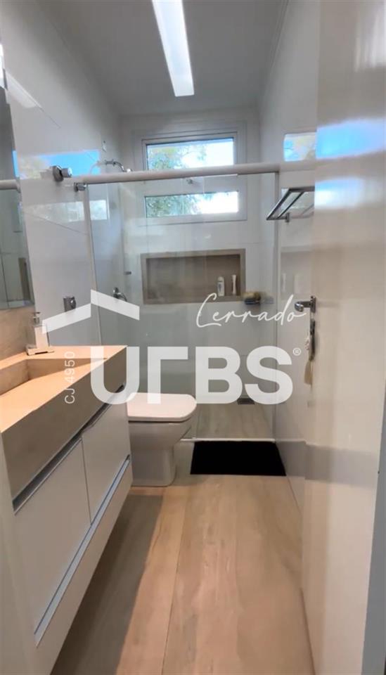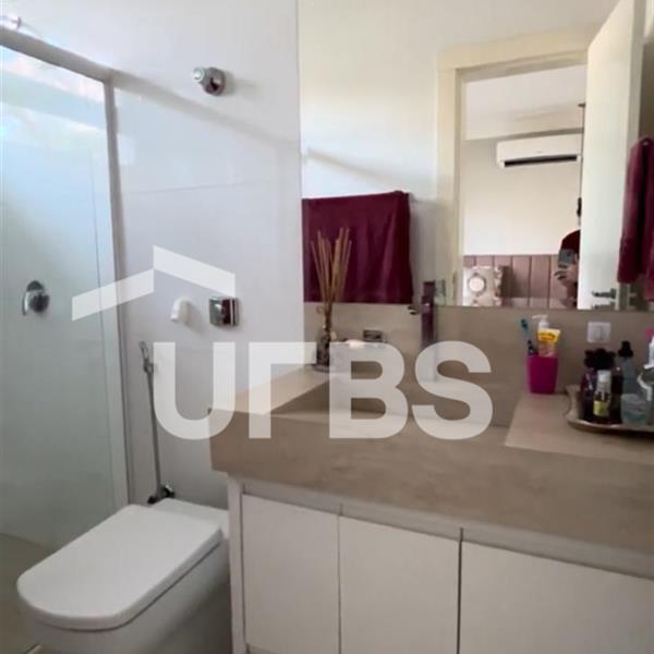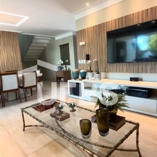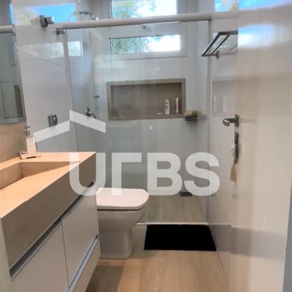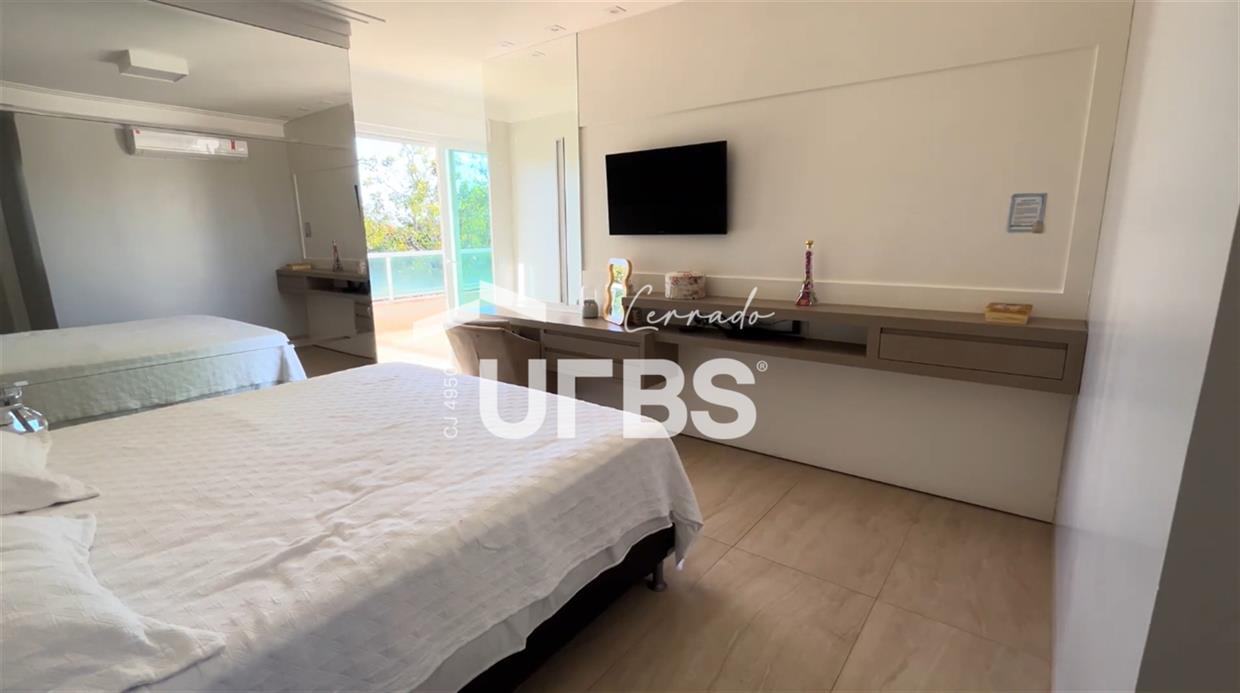 Experimente o estilo de vida de luxo nesta incrível casa de condomínio à beira do lago, esbanjando design e elegância. Este belo sobrado possui uma ampla e moderna sala de estar pronta para receber com conforto e sofisticação. A sala é climatizada, oferecendo o máximo em comodidade, integrada com uma área gourmet excepcional para entreter seus convidados. Completa com um banheiro individual, este espaço é o auge da vida requintada. Dispondo de quatro suítes completas, cada uma com seu charme único, esta residência é ideal para a família moderna. Uma das suítes está localizada no térreo, oferecendo uma alternativa acessível, enquanto as outras três suítes estão estrategicamente posicionadas no segundo pavimento. Adicionalmente, a suíte master não só tem um banheiro privativo, como também uma bela sacada - o lugar perfeito para relaxar depois de um longo dia. Apresenta a raridade de ter uma piscina com hidromassagem, ideal para os dias quentes de verão. A área gourmet é equipada com uma churrasqueira a carvão, perfeita para aquelas reuniões festivas ao ar livre. A casa também possui energia solar e poço artesiano, demonstrando o compromisso com a sustentabilidade e eficácia energética. Além disso, a área de serviço possui uma máquina de lavar de alta performance, e a cozinha é equipada com fogão roftop, geladeira, mesa, bancada e forno microondas. No geral, esta casa não só cumpre todas as suas necessidades de moradia, mas também oferece o estilo de vida dos sonhos.