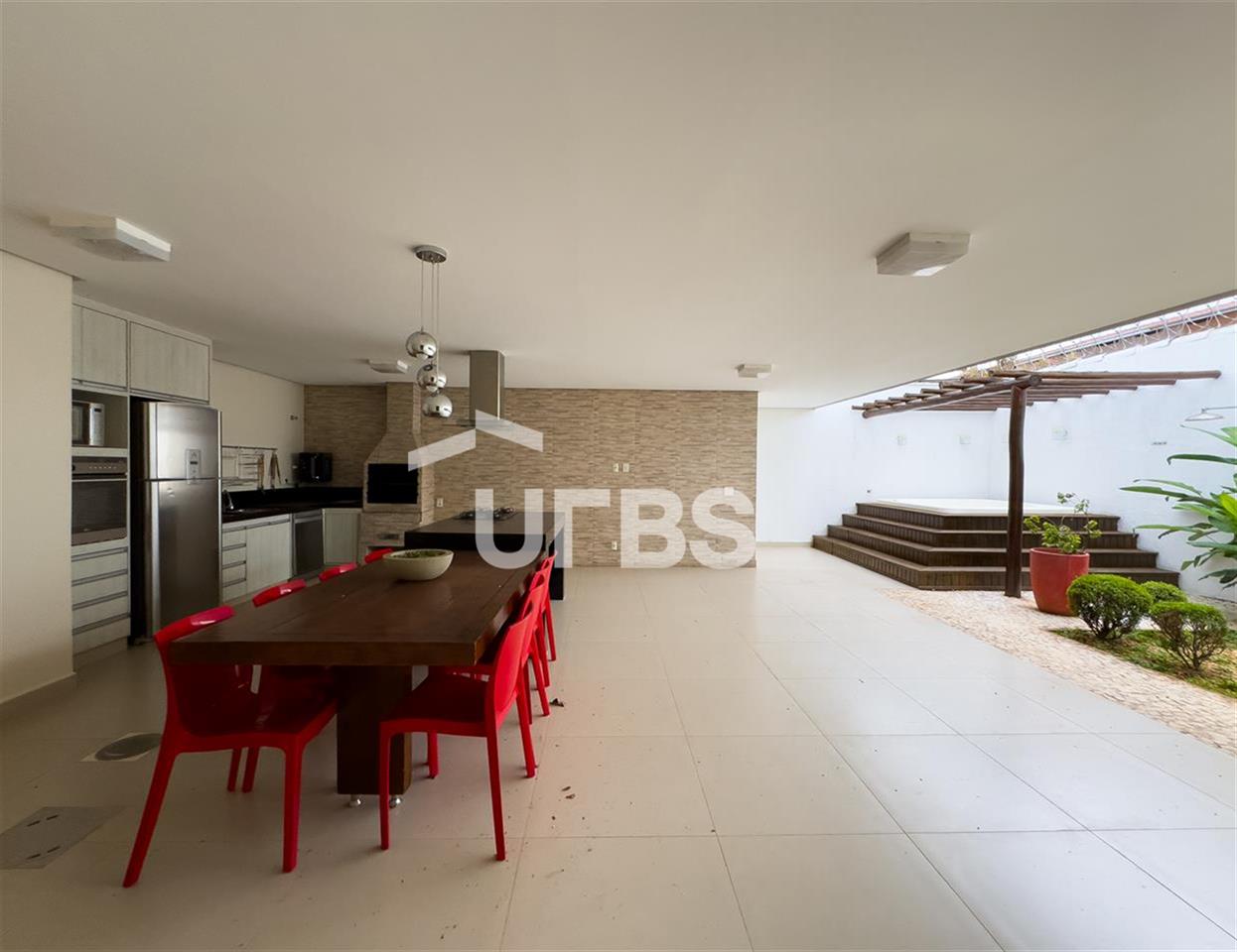 Casa Térrea com Jacuzzi Área gourmet 4 quartos sendo 2 suítes uma com banheira hidromassagem 2 cozinhas 1 quarto estúdio 4 banheiros ampla área de lavanderia 4 vagas de garagem cobertas; cerca elétrica e serpentina; jacuzzi churrasqueira cozinha completa; cozinha externa junto a área gourmet; próximo a hipermercados, Goiânia Shopping, Parque Vaca Brava e outras conveniências.