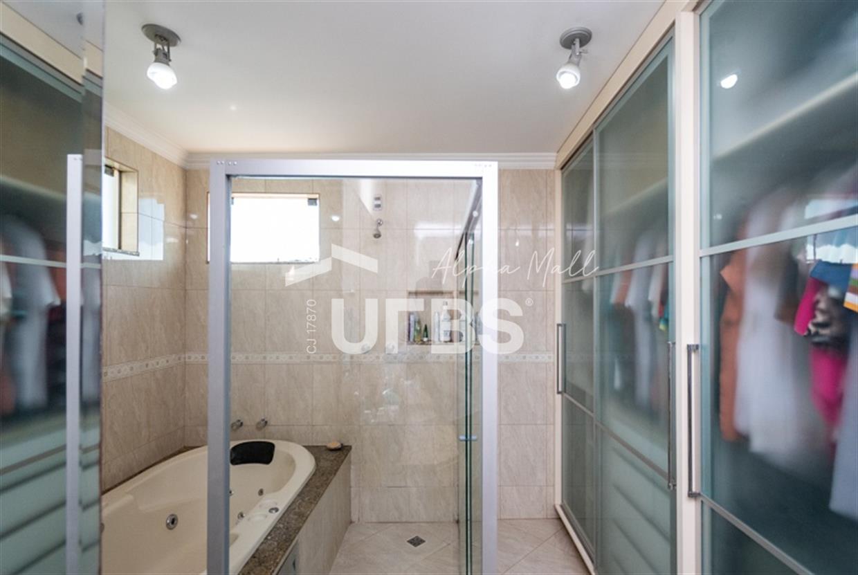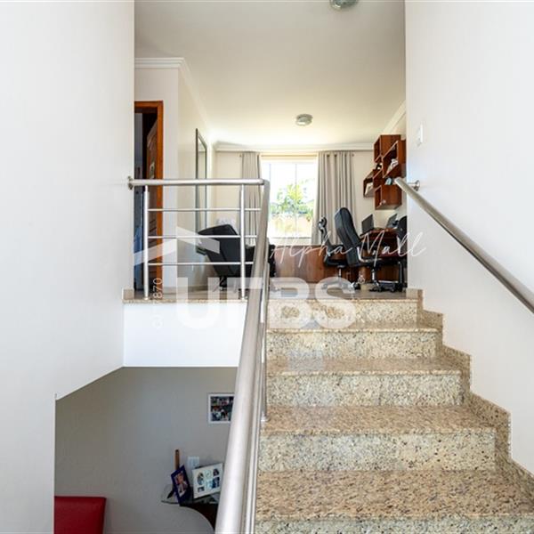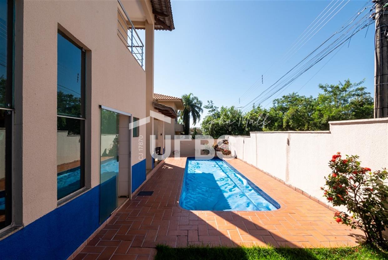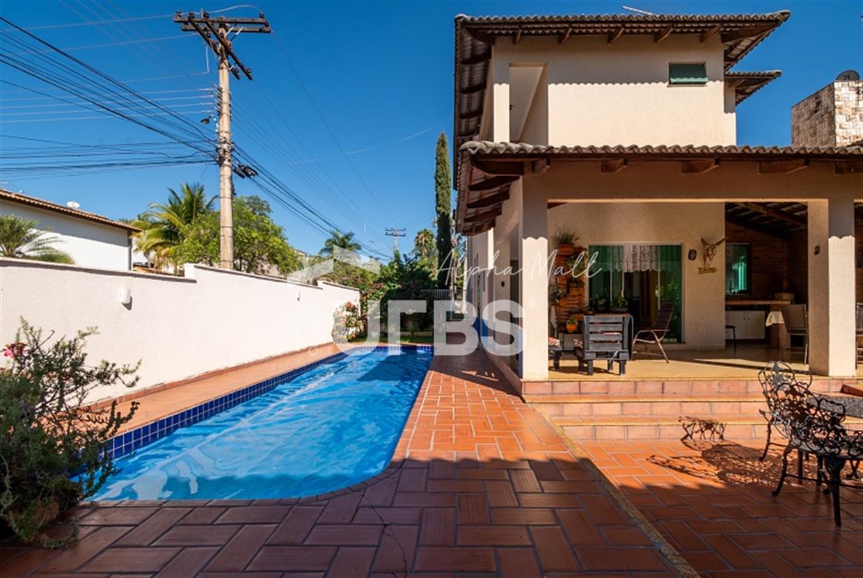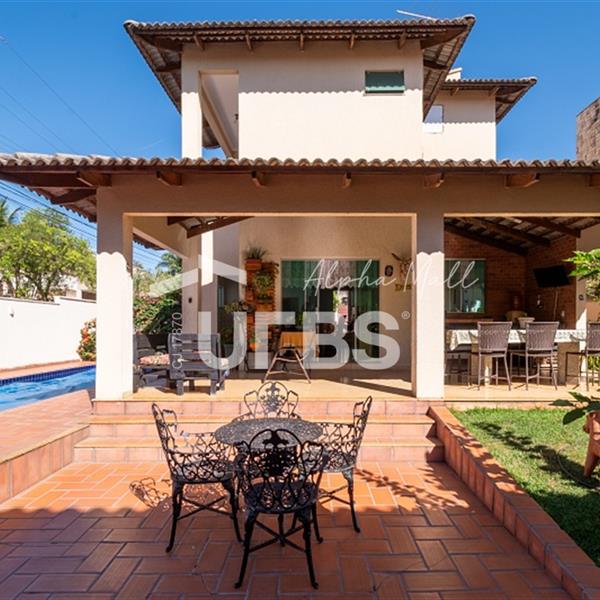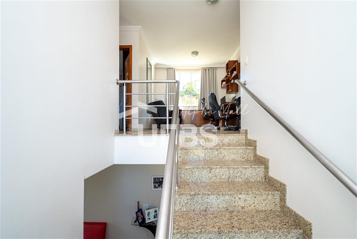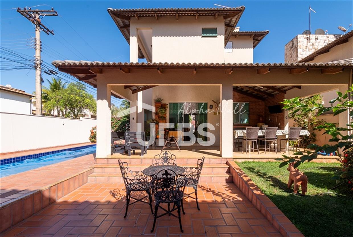 Sobrado no Portal do Sol I Belo sobrado no Portal do Sol I! 437 m² de área total e 260 m² de área privativa. 4 quartos 3 suítes 5 banheiros Lavabo e DCE completa 5 vagas de garagem Excelente padrão construtivo Piscina com aquecimento solar Quintal amplo com ótimo paisagismo Espaço gourmet com churrasqueira Rico em armários Localização privilegiada no Condomínio Condomínio com lazer completo e academia Casa quitada Aceita financiamento Aceita permuta em imóvel de até 50% do valor. Preferência para aptos no St. Aeroporto ou Oeste