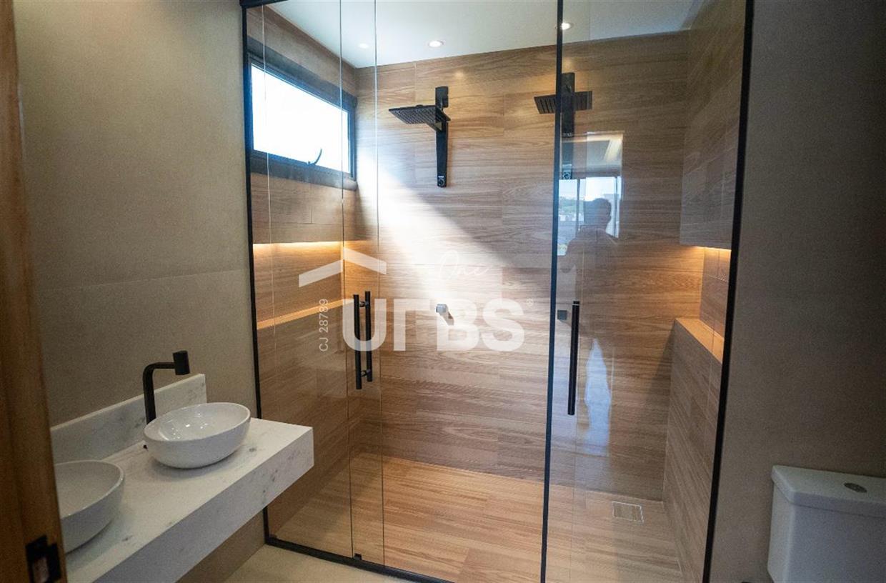 Sobrado no Jardins Bolonha Localizado no prestigiado Jardins Bolonha FGR, este sobrado de 184,80m², acrescido de um deck e piscina com hidromassagem, totalizando 238,60m², é a definição de luxo e sofisticação. Inspirado no clássico e no contemporâneo, o design deste sobrado utiliza revestimentos em pedra natural e madeira para um toque de elegância, enquanto os elementos decorativos em metal e vidro trazem uma inovação singular. Destaques do Sobrado Recanto do Bolonha: Área Total: 238,60m² Suítes: 3, incluindo uma suíte master com closet Sala de Visita: com pé direito duplo Home Office: reversível em suíte de hóspedes Garagens: 2 vagas internas e 2 externas Piscina: com hidromassagem e deck espaçoso Área Gourmet: churrasqueira e varanda gourmet integrada Fachada: imponente com vista panorâmica privilegiada Acabamentos: porcelanato 1,20m x 1,20m, mármore e revestimentos de alto padrão nos banheiros e cozinha Iluminação: luminotécnico elaborado com perfis e fitas de LED Quintal: amplo espaço para paisagismo Sustentabilidade: previsão para energia fotovoltaica Por que escolher o Sobrado Recanto do Bolonha? Conforto Absoluto: Ambientes espaçosos e bem iluminados Exclusividade: Acabamentos de alto padrão e design único Lazer Completo: Área de lazer integrada para momentos inesquecíveis com família e amigos Sustentabilidade: Preparado para energia fotovoltaica, garantindo economia e respeito ao meio ambiente Entre em contato agora mesmo e agende uma visita para conhecer todos os detalhes deste imóvel excepcional. Deixe-se encantar por cada espaço e sinta a diferença de morar em um lugar verdadeiramente especial.