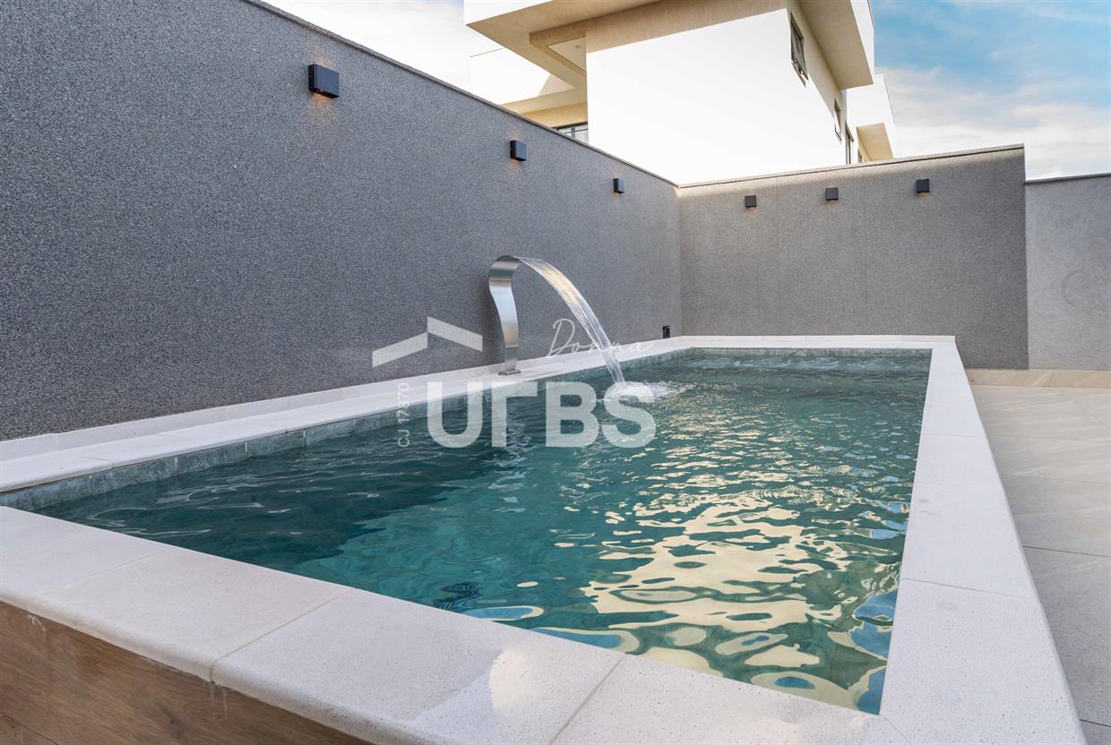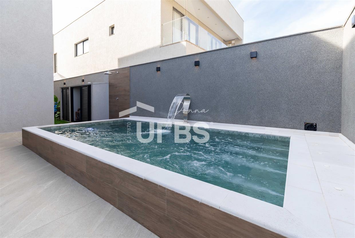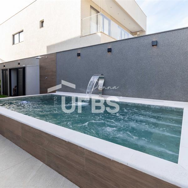 Sobrado à venda no Parqville Jacarandá, 4 suítes, 263m² construídos, 334m² de terrenoModerno e voltado para o nascente, com suíte térrea, sala integrada à cozinha e varanda gourmet, piscina, lavabo, área de serviço e 4 vagas. Suíte master com closet e sacada. Acabamento de alto padrão, com porcelanato 1,20x1,20, persianas automáticas, bancadas em granito e infraestrutura completa para ar-condicionado, água quente e energia solar. Condomínio com lazer completo e segurança 24h.Agende sua visita!