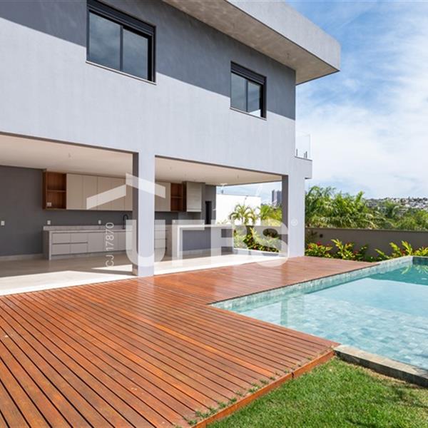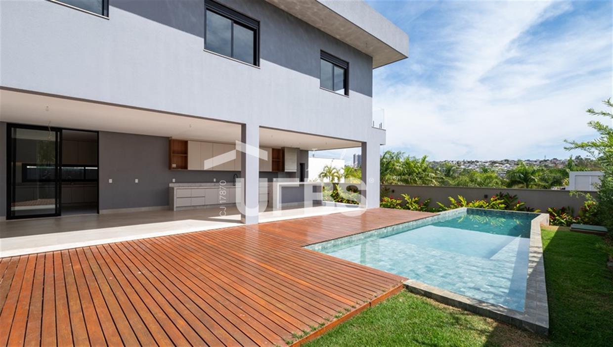 Sobrado no Alphaville GoiásSobrado Residencial Alphaville Goiás.Imóvel novo, nunca habitado.Previsão de entrega novembro 2022.Grande diferencial deste imóvel é a vista definitiva para a mata que lhe da uma privacidade única!São 631,85 m² de terreno, 470,56 m² construídos, sendo 5 suítes plenas, com uma suíte máster, previsão para elevador.Sala ampla, integrada com área gourmet, piscina com deck de madeira.Garagem até 6 carros sendo 3 cobertas.Entre em contato com um especialista em casas de luxo e descubra o motivo que faz dessa uma oportunidade única.