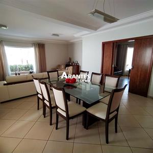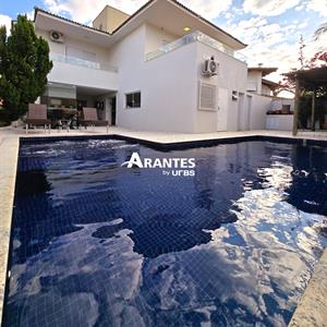 Sobrado no Setor Cidade JardimÁrea do terreno: 1.416,65 m²Área construída: 647 m²Sobrado construída em 3 lotes, com 5 suítes, sendo suíte máster com closet e sacada com blindex, sala de banho com hidromassagem, 2 cubas, 2 chuveiros com box de blindex, ar condicionado nos quartos, completo em armários, sala para 3 ambientes, 8 banheiros, cozinha ampla completa em armários, garagem para 4 carros, área de serviço coberta. A área externa é ampla e possui um jardim incrível, piscina aquecida e sauna molhada, área gourmet com churrasqueira, fogão e forno a lenha, bancada grande no mármore.Casa ótima para renda, sendo aluguel por temporada, para eventos, ou para quem deseja uma casa espaçosa para morar, com ótima localização.IPTU mensal: R$ 1.041,00