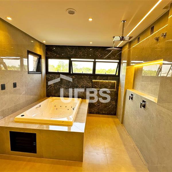 Lindo sobrado a venda no Portal do Sol Green São 536 m² de lote e 417 m² de construção com 05 suítes plenas, sendo uma térrea e 04 suítes no pavimento superior. A sala de estar é ampla com pé-direito duplo interligada com uma cozinha ampla e com despensa interna. Acabamento de alto padrão com requinte na escolha das pedras e metais. Lazer fantástico com churrasqueira a carvão, piscina aquecida, com pontos de hidromassagem e sauna. 04 vagas de garagem cobertas, sendo que 02 com energia para carro elétrico. Imóvel todo com projeto luminotécnico. Imóvel de alto padrão com acabamento impecável!