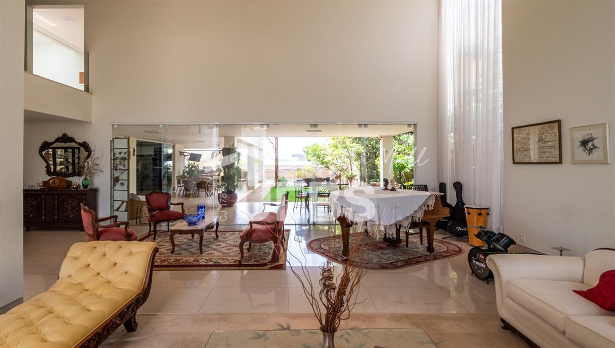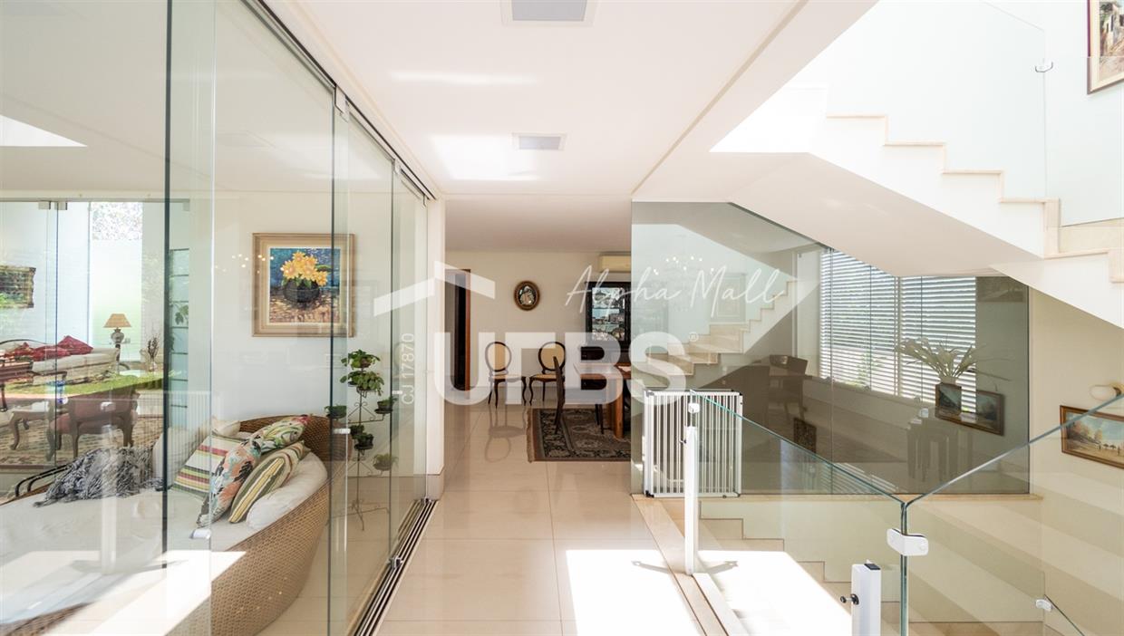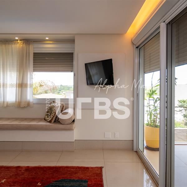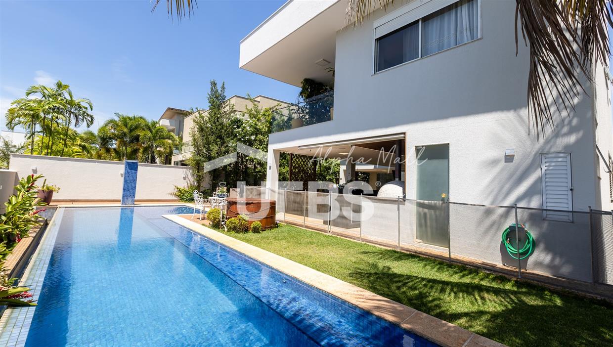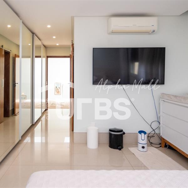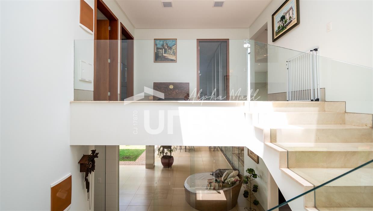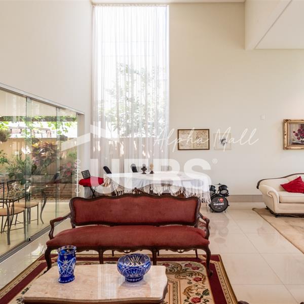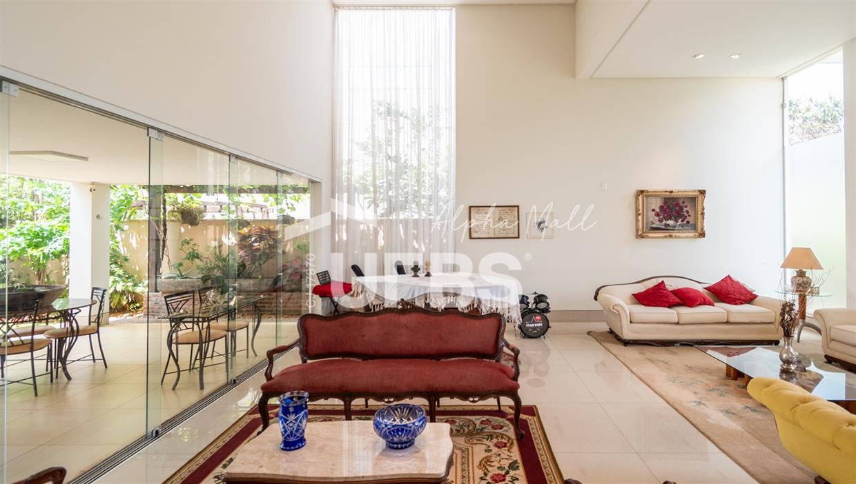 Sobrado Semimobiliado no Alphaville Ipês Excelente sobrado semimobiliado no Alphaville Ipês com 535 m² de construção em terreno de 635 m². São 5 suítes amplas sendo uma delas no pavimento térreo. Master com closet, sala de banho com banheira e varanda. O imóvel tem ambientes generosos e integrados além de ótima posição solar. Conta com uma sala íntima no segundo piso além das salas de estar e jantar no primeiro. Possui também venezianas automatizadas, previsão para elevador, usina fotovoltaica, mini poço e aquecimento solar. O piso inferior tem garagem com portão para 4 carros cobertos e amplo DCE.