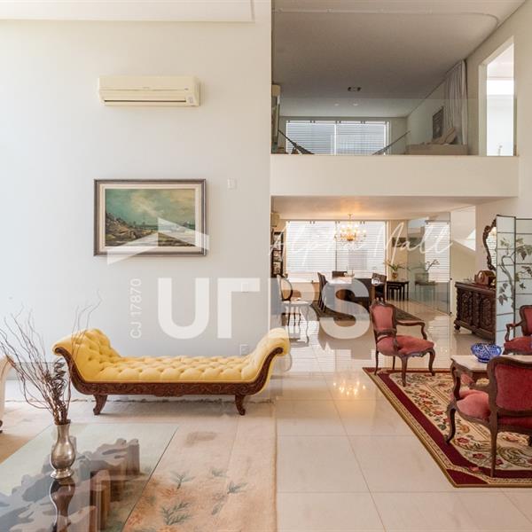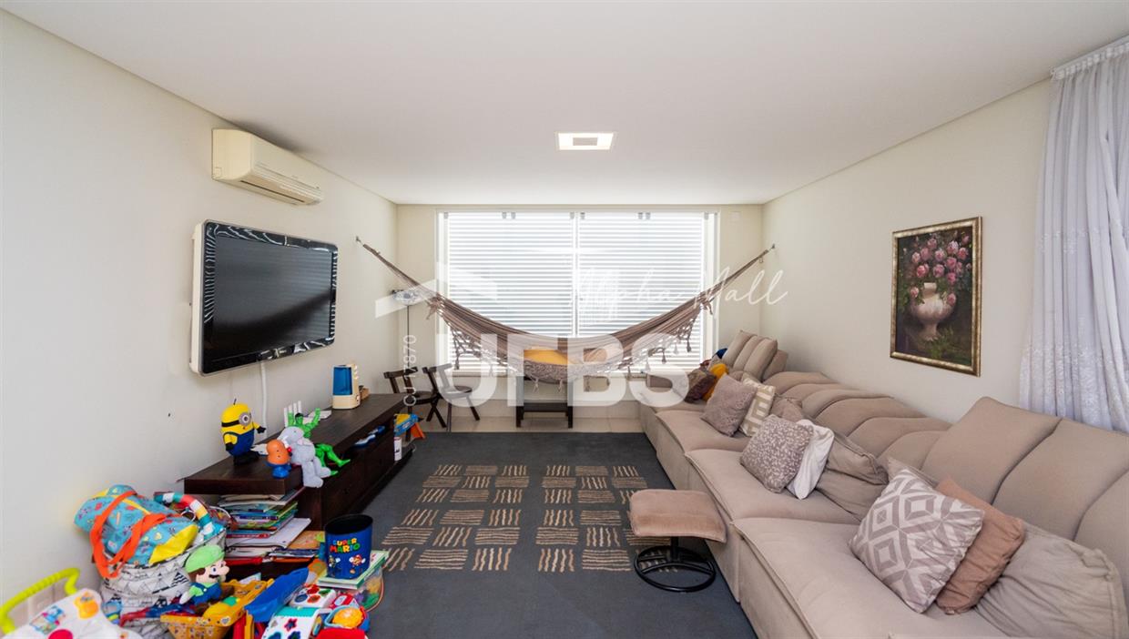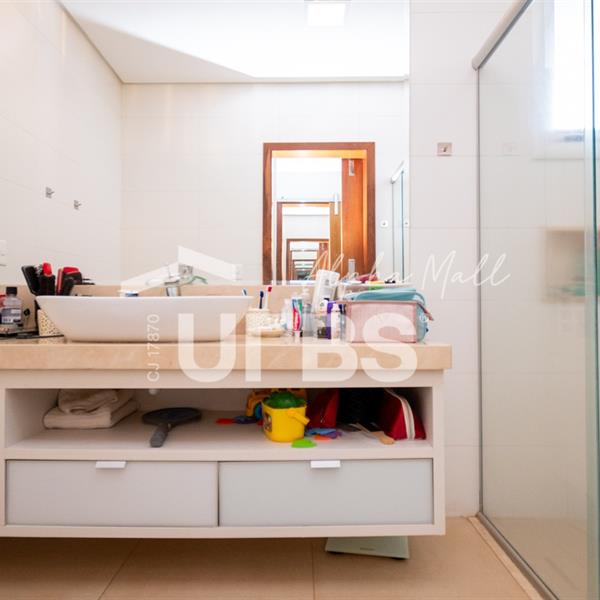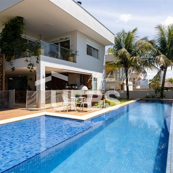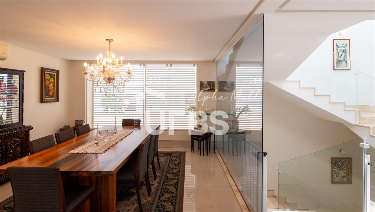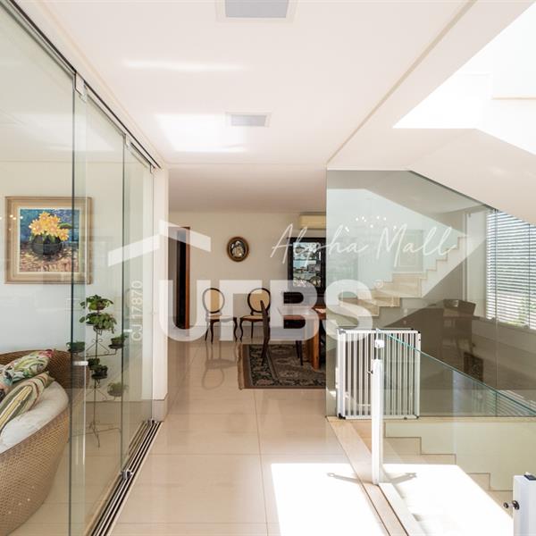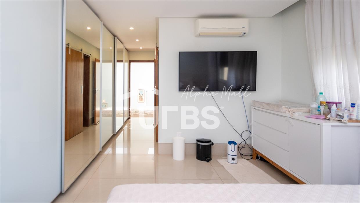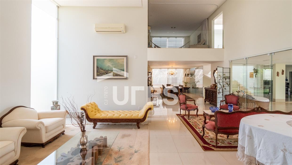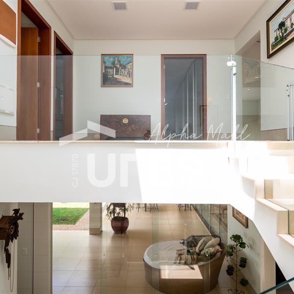 Sobrado Semimobiliado no Alphaville Ipês Excelente sobrado semimobiliado no Alphaville Ipês com 535 m² de construção em terreno de 635 m². São 5 suítes amplas sendo uma delas no pavimento térreo. Master com closet, sala de banho com banheira e varanda. O imóvel tem ambientes generosos e integrados além de ótima posição solar. Conta com uma sala íntima no segundo piso além das salas de estar e jantar no primeiro. Possui também venezianas automatizadas, previsão para elevador, usina fotovoltaica, mini poço e aquecimento solar. O piso inferior tem garagem com portão para 4 carros cobertos e amplo DCE.