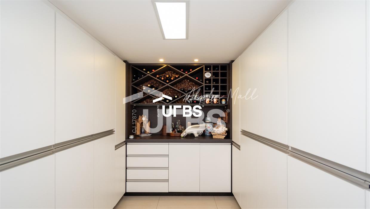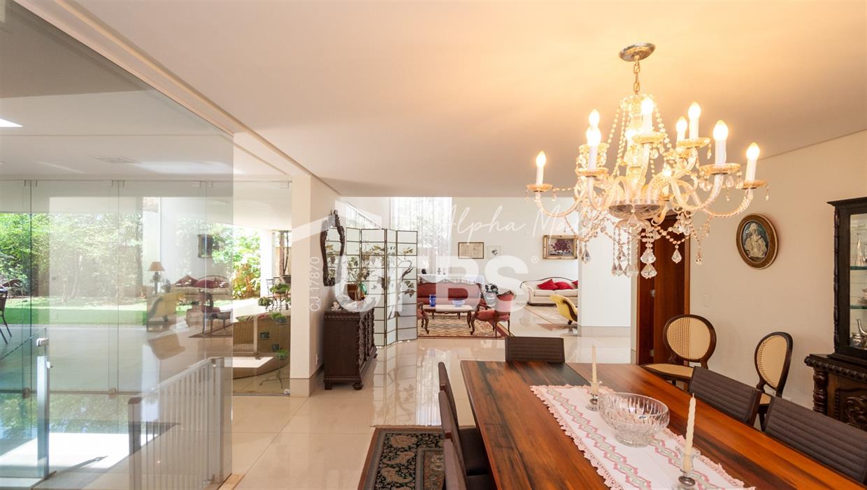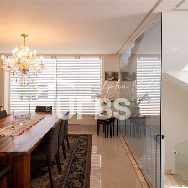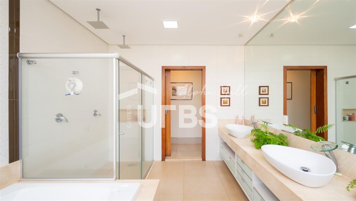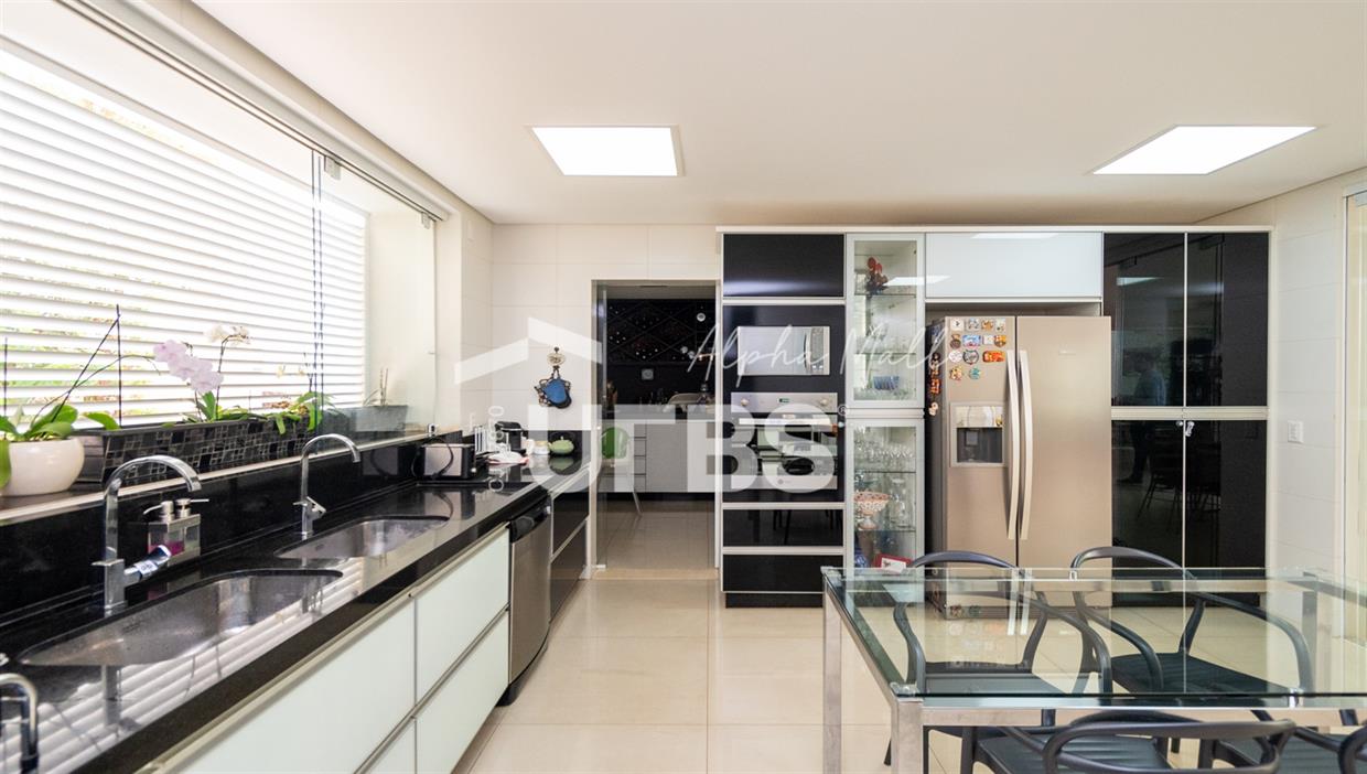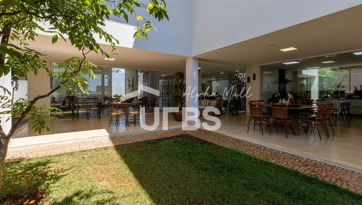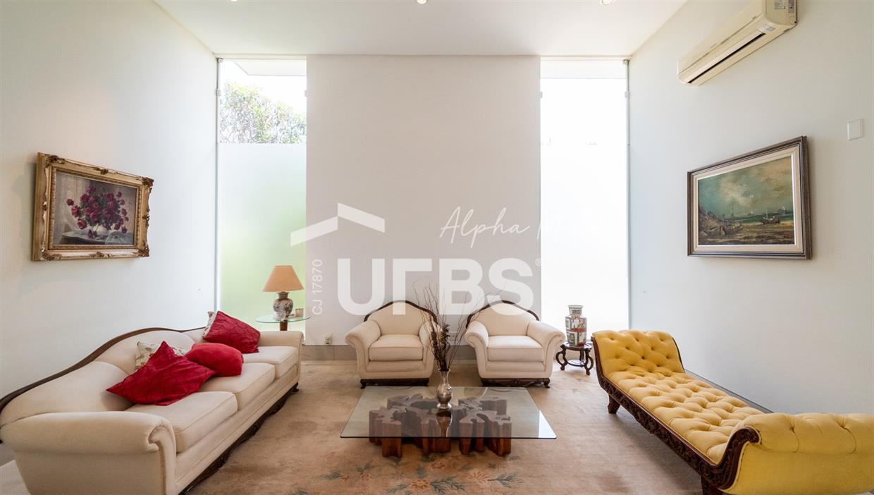 Sobrado Semimobiliado no Alphaville Ipês Excelente sobrado semimobiliado no Alphaville Ipês com 535 m² de construção em terreno de 635 m². São 5 suítes amplas sendo uma delas no pavimento térreo. Master com closet, sala de banho com banheira e varanda. O imóvel tem ambientes generosos e integrados além de ótima posição solar. Conta com uma sala íntima no segundo piso além das salas de estar e jantar no primeiro. Possui também venezianas automatizadas, previsão para elevador, usina fotovoltaica, mini poço e aquecimento solar. O piso inferior tem garagem com portão para 4 carros cobertos e amplo DCE.