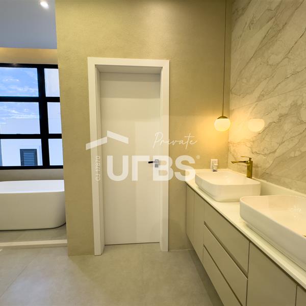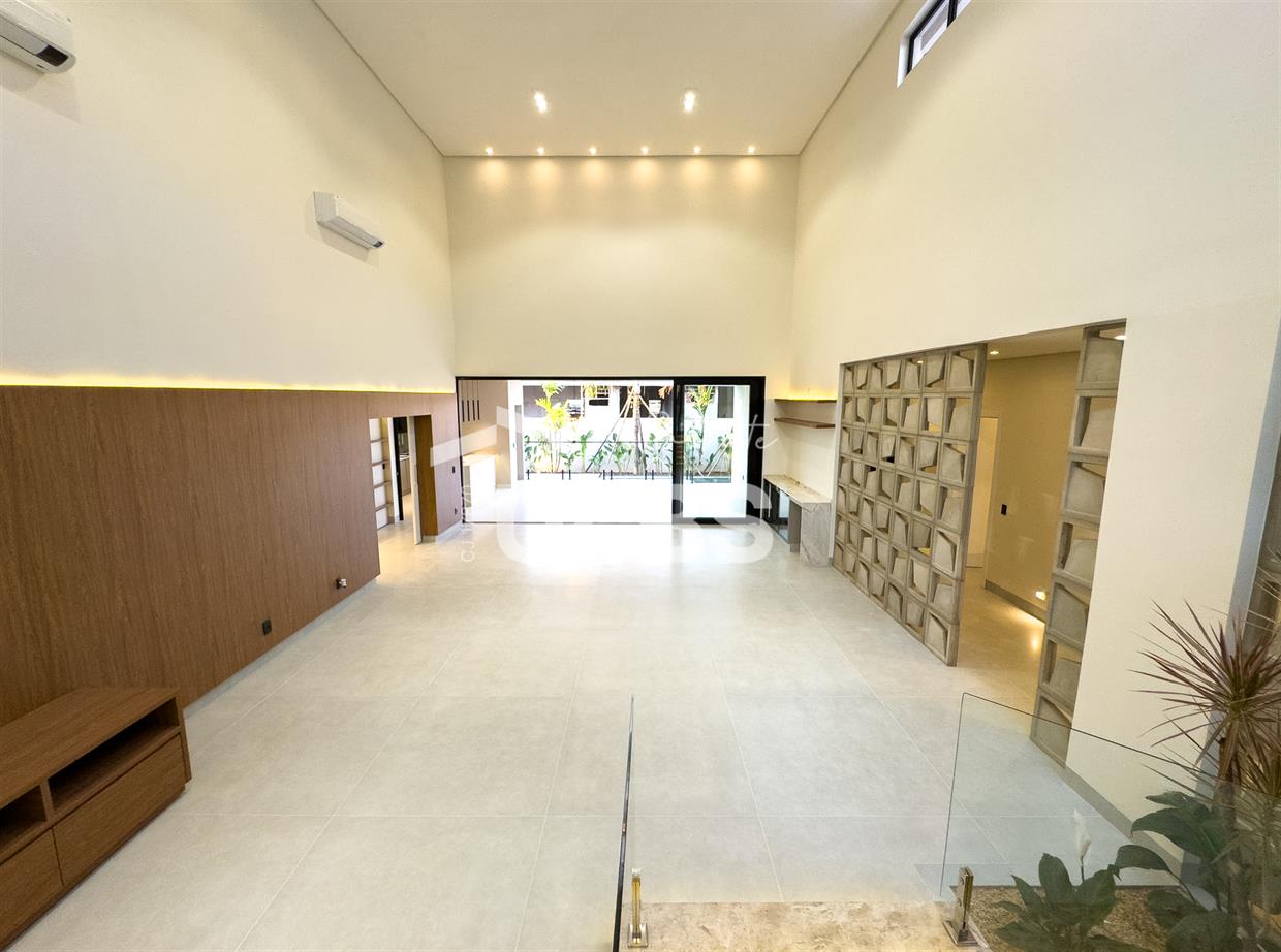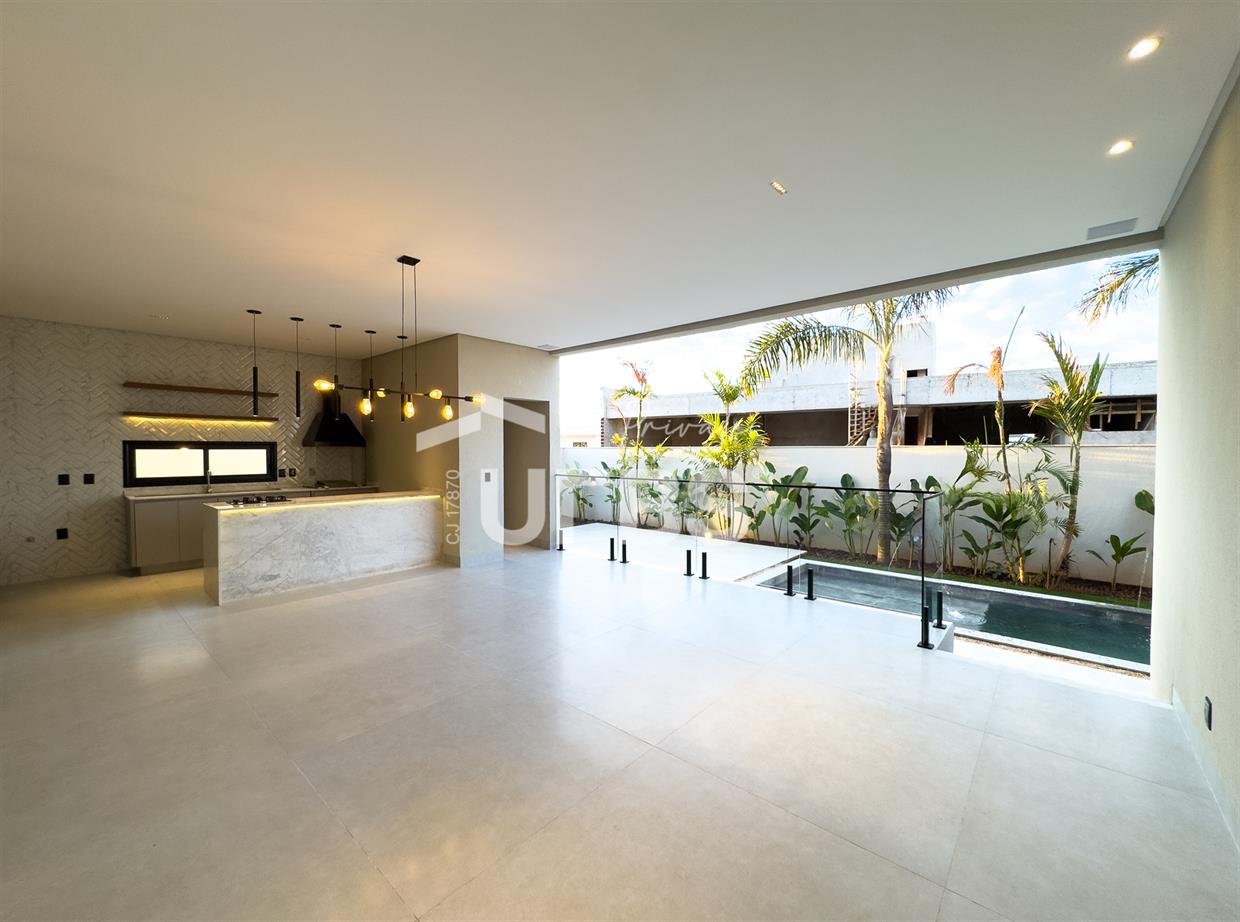 Excelente casa térrea de 330 m2 implantada em terreno de 660 m2 no Plateau D'Or Privilège, próxima à portaria, academia, praça de águas e via verde. Projeto de 4 suítes plenas sendo 1 master com banheira de imersão tipo freestand. Garagem para até 3 carros cobertos, com acesso íntimo da família sem passagem pelos acessos social/serviço. Mini copa e roupeiro no corredor íntimo, escritório, chapelaria/vestíbulo, sala para 3 ambientes com pé direito 1,5x e jardim de inverno. Cozinha com bancada de ilha, dependência de serviço completa com suíte para prestadores. Área gourmet confortável com dois ambientes grandes e churrasqueira a carvão, península com fogão 4 bocas e espaço para cervejeira grande. Piscina iluminada com hidro, pastilha premium e deck espaçoso, prainha e espaço para mesas/espreguiçadeiras.Lavabo com cuba esculpidaCasa será entregue com acabamento no porcelanato 1,20 x 1,20, marcenaria completa, bancadas em pedra, louças sanitárias monobloco, esquadrias automatizadas nos quartos, usina fotovoltaica, piscina aquecida, paisagismo, irrigação automática, automação com alexa, luminotécnico completo, sonorização, aquecimento solar com boiler, box e espelhos nos banheiros. Poderá contar com poço caso a perfuração seja bem sucedida (estudo geológico realizado apontou possibilidade).Previsão para finalizar obra fevereiro 2025.