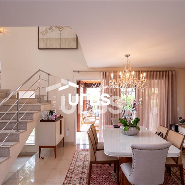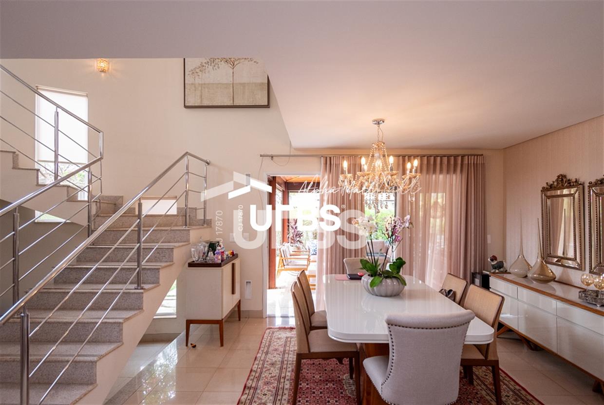 SOBRADO ALDEIA DO VALE - 4 SUITES + OFFICE - 393 M² CONSTRUÍDOS - 1.522 m² TERRENO - 7 VAGAS Se você busca um imóvel único em um dos condomínios mais desejados da cidade, essa é a sua oportunidade! Este sobrado foi cuidadosamente escolhido pelos proprietários, destacando-se pela sua localização privilegiada próxima ao centro ecumênico do Aldeia do Vale. Com uma ampla área total de mil quinhentos e vinte e dois metros quadrados e trezentos e noventa e três metros quadrados de construção, a residência oferece um projeto arquitetônico impecável e acabamentos de alta qualidade. Diferenciais: • Aquecimento solar para água quente em toda a casa, garantindo conforto e eficiência. • Esquadrias de alumínio em todas as janelas, assegurando durabilidade e isolamento térmico. • Toldos elétricos com recolhimento automático, proporcionando praticidade. • Paisagismo maduro e bem desenvolvido, criando um ambiente tranquilo e harmonioso. • Área gourmet com sofisticados detalhes em madeira, perfeita para receber amigos e familiares. Ambientes amplos e funcionais: No térreo, você encontrará: • Sala ampla com dois ambientes, integrando espaço e conforto. • Home theater isolado, ideal para garantir privacidade acústica. • Banheiro completo e um quarto multiuso, atualmente utilizado como área kids, mas facilmente reversível para uma suíte térrea. • Cozinha bem equipada, área de serviço completa, despensa, lavabo e uma área reservada para secagem de roupas. No andar superior, a área íntima conta com: • Quatro suítes, incluindo uma suíte master com varanda privativa, dois closets e um luxuoso banheiro "ele e ela" com spa completo. • Um espaço íntimo, perfeito para leitura ou descanso. Lazer e conforto ao ar livre: • Área de lazer com muito verde, pergolados decorativos e diversas plantas que criam uma atmosfera de tranquilidade. • Piscina aquecida, ideal para momentos de relaxamento em qualquer época do ano. • Área gourmet completa, com churrasqueira e fogão, além de um banheiro externo que atende perfeitamente ao espaço da piscina. Este imóvel combina o rústico e o clássico, com soluções arquitetônicas modernas, criando um espaço verdadeiramente especial para você e sua família. Não perca essa oportunidade! Entre em contato e agende uma visita para conhecer cada detalhe desse sobrado encantador no Condomínio Aldeia do Vale.