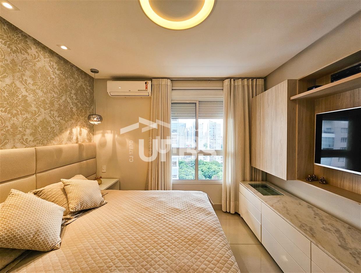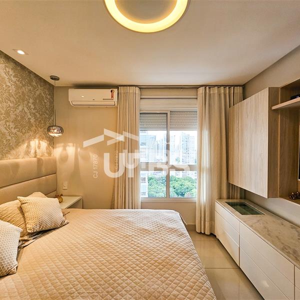 Apartamento duplex mobiliado a venda no The One Exclusive Life! Este imóvel conta com 186m² de área privativa. No andar de baixo, tem uma ampla sala para dois ambientes, integrada à uma extensa varanda com churrasqueira à carvão e uma linda vista livre para o Parque Flamboyant! Uma cozinha totalmente equipada e uma grande área de serviço com um quarto de dependência. No andar de cima encontram-se 4 quartos, sendo 2 suítes e um banheiro de apoio. O empreendimento localizado na orla do Parque Flamboyant conta com uma área de lazer extensa e muito completa.