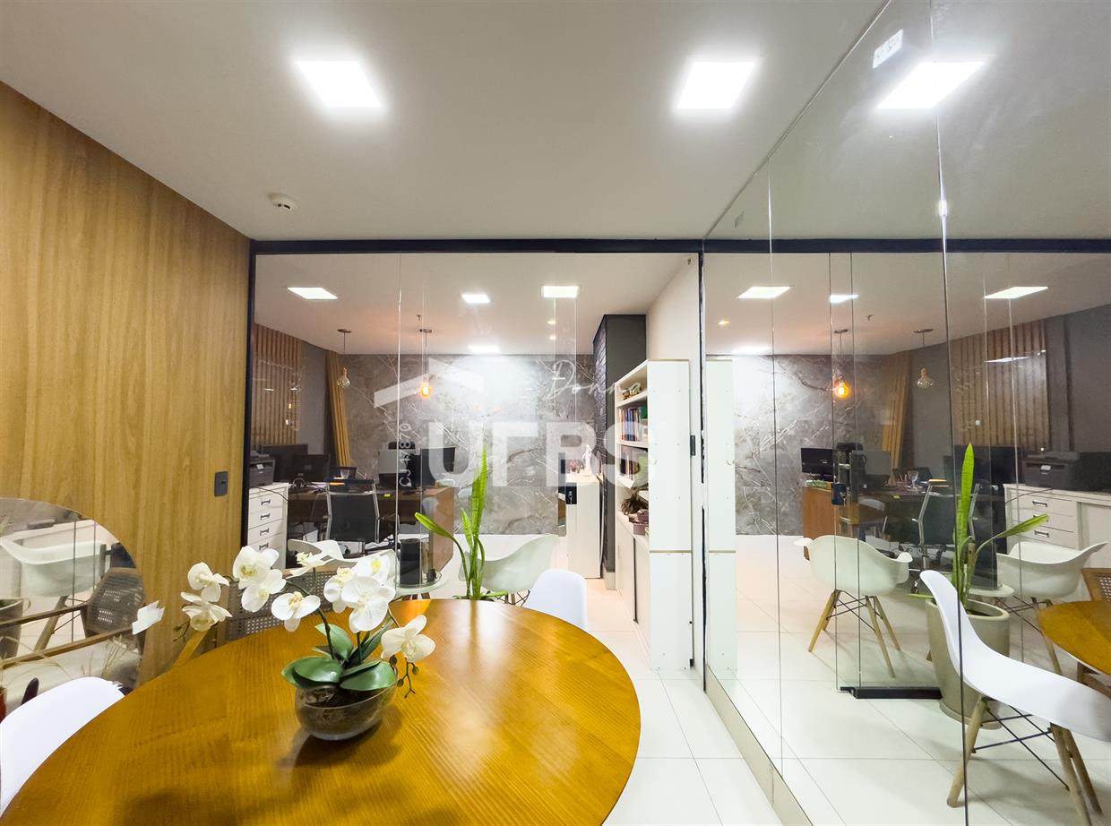Duas salas comerciais integradas, com área privativa total de 65,99m², localizadas no Edifício Buena Vistta Office, no Setor Bueno, Goiânia. O espaço está pronto para uso, com piso porcelanato, armários planejados, mobília fixa, iluminação moderna e dois aparelhos de ar-condicionado. Dispõe de hall de espera, banheiro social e banheiro de serviço. As salas recebem a insolação da manhã (checar) garantindo conforto térmico, e contam com 02 vagas de garagem rotativas, com serviço de manobrista. Situadas na Avenida T-4, uma das regiões comerciais mais valorizadas da cidade, estão próximas a bancos, restaurantes, empórios e outros importantes prédios corporativos. Agende uma visita e conheça esta oportunidade