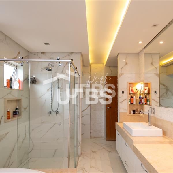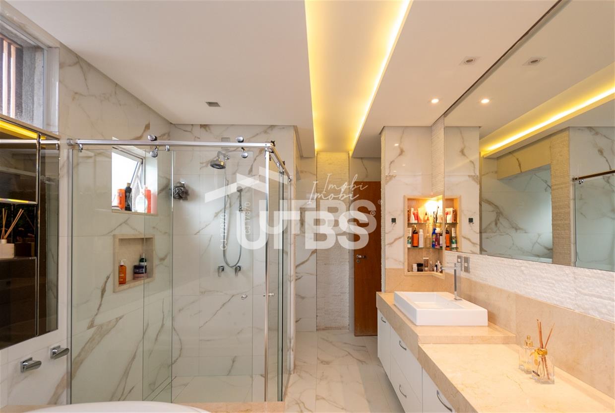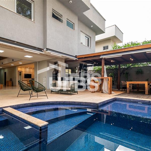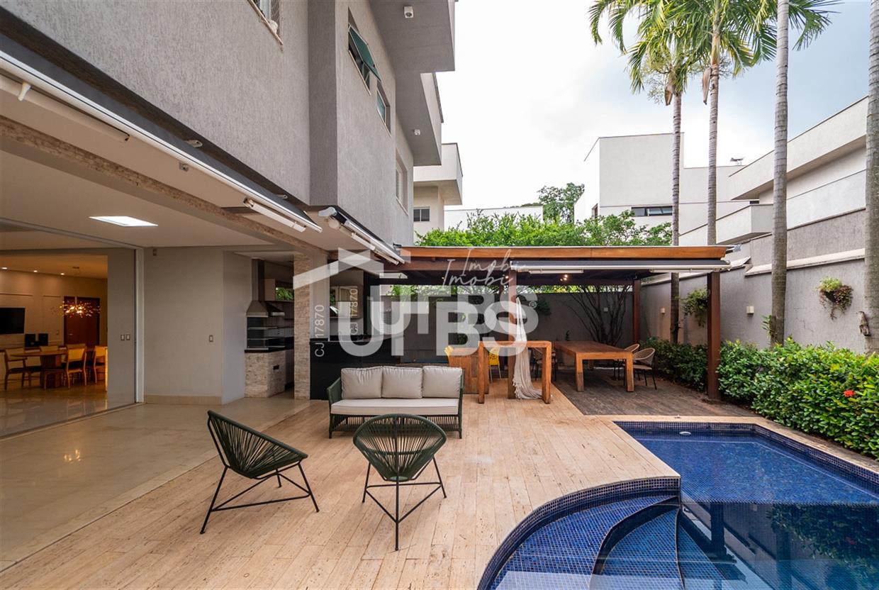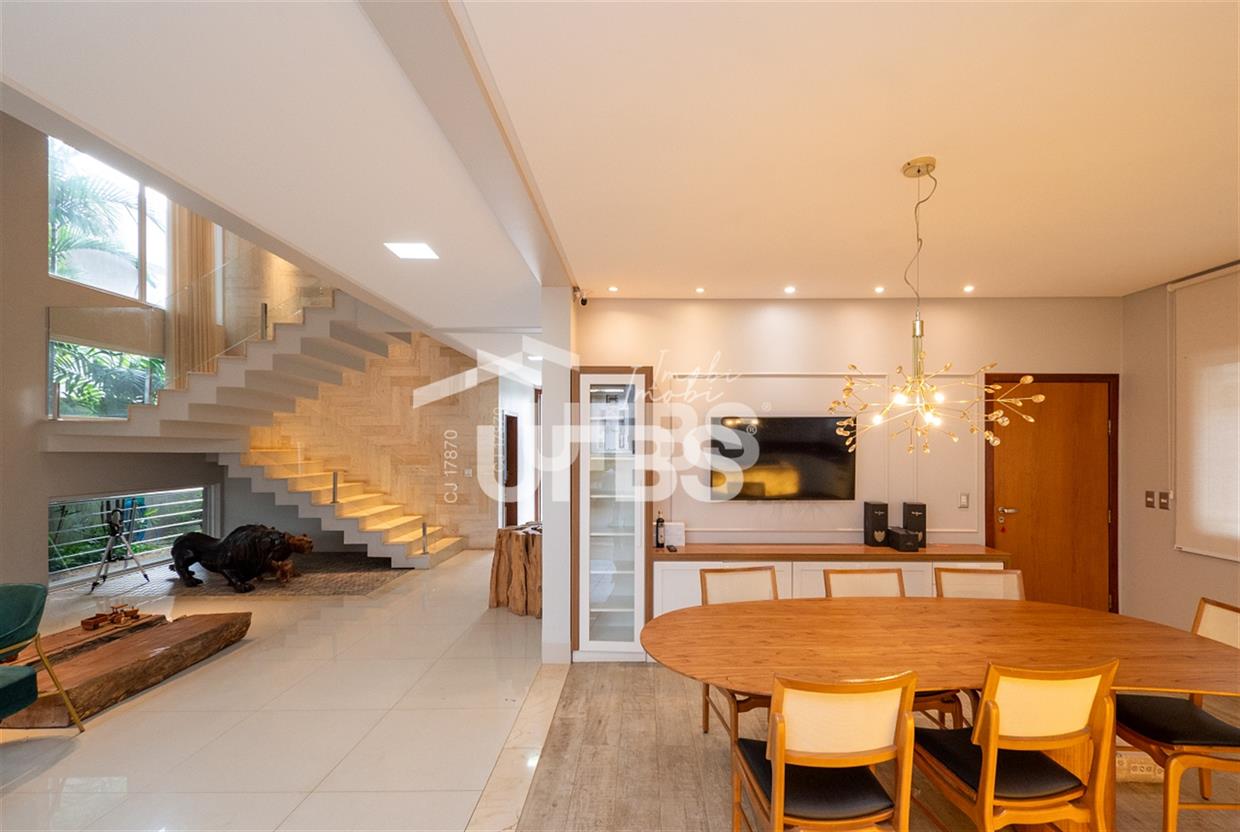 Sobrado no Jardins Verona Imponente sobrado à venda no Condomínio Jardins Verona, são 453 m² de área de terreno, 360 m² de área construída, 5 suítes plenas, sendo 1 no térreo, e a máster com closet. O imóvel conta com ampla sala para 2 ambientes com pé direito alto, integrada a cozinha e lazer, lavabo, além de área de serviço. Lazer fantástico, varanda gourmet espaçosa e arejada, com churrasqueira à carvão, espaço de estar e piscina aquecida. 04 vagas de garagem. Possui ainda armários planejados em todos os ambientes, aquecimento solar para água e projeto luminotécnico. Imóvel localizado em um dos condomínios mais buscados de Goiânia. R$ 4.100.000,00