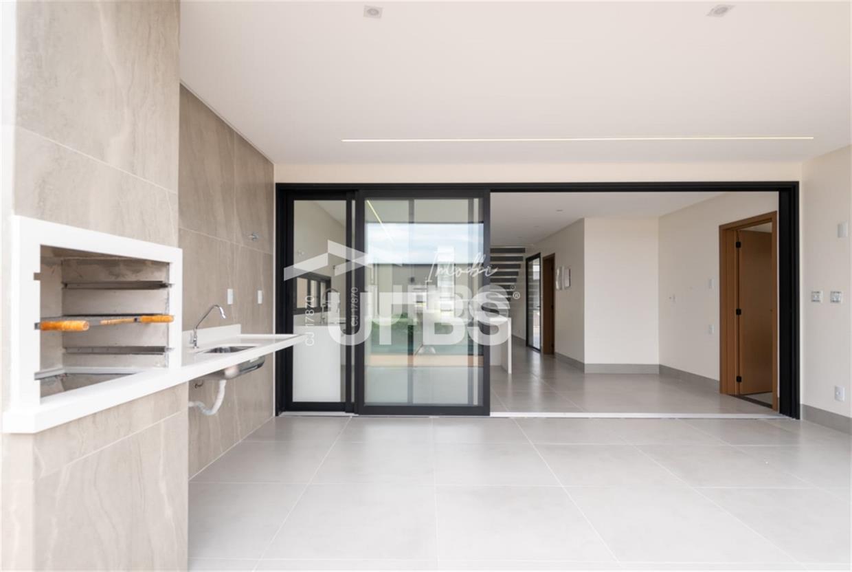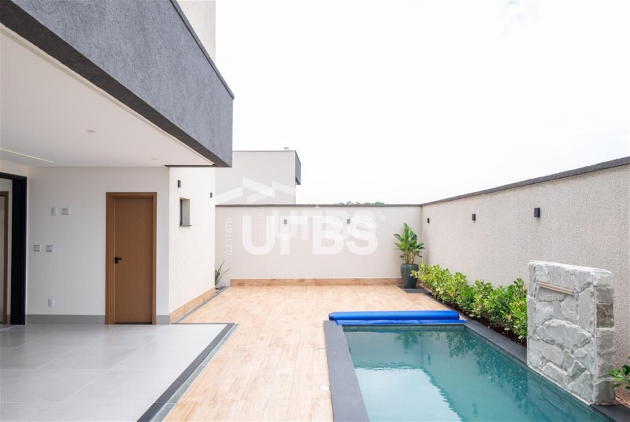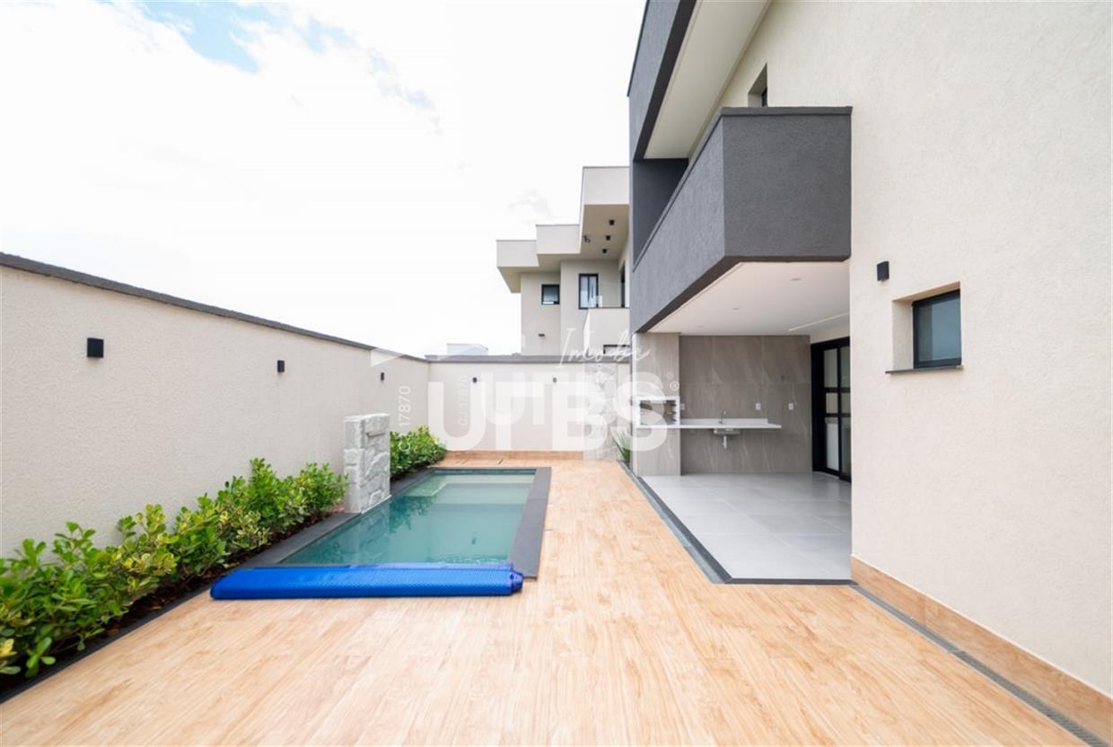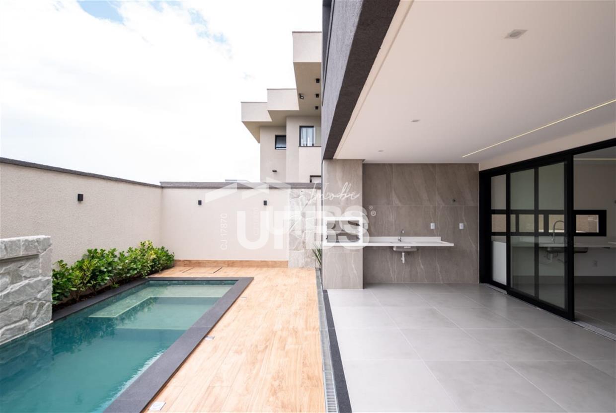 Sobrado no condomínio Jardins Barcelona - Área do terreno 300m² - Área construída de 233 m² - 4 suítes plenas, sendo 3 suítes superiores e 1 suíte térrea - Suíte master com espaço para closet, banheiro amplo com 2 duchas, 2 cubas e banheira para duas pessoas; - Total integração entre sala de estar, jantar, cozinha, deck e piscina - Piscina com aquecimento e cascata e ofurô com hidromassagem - Lavabo, despensa e área de serviço Preparação para aquecimento nos banheiros por boiler.