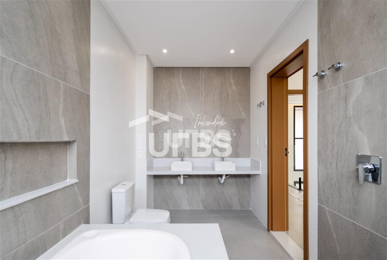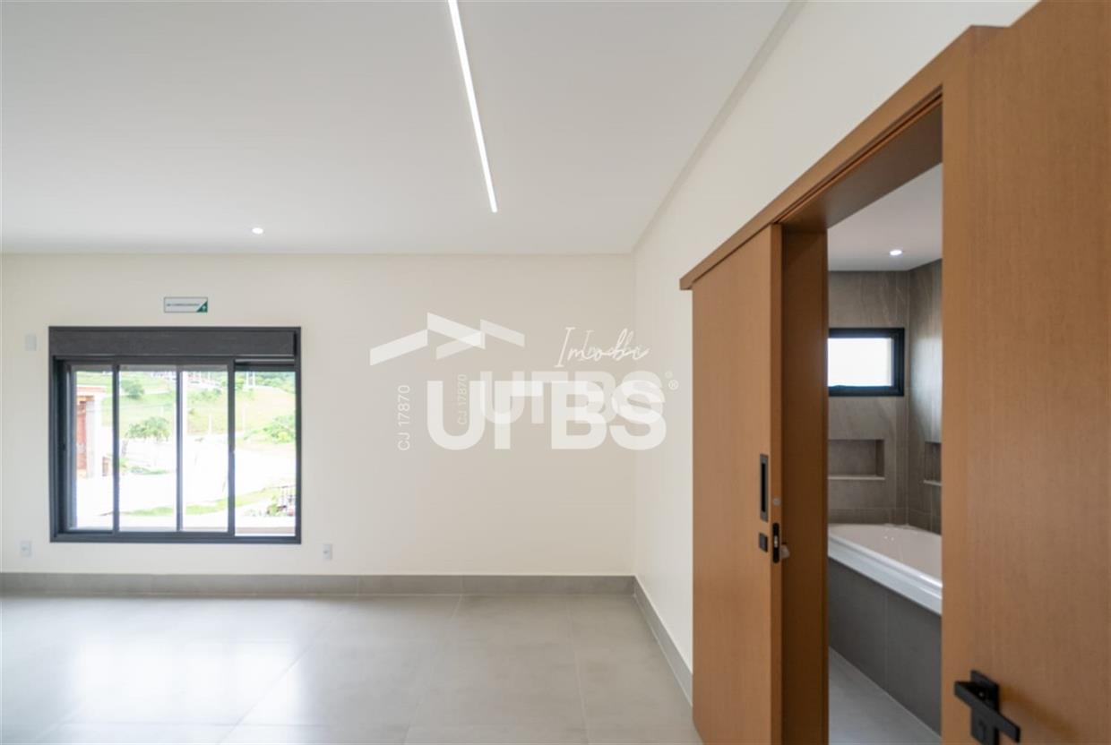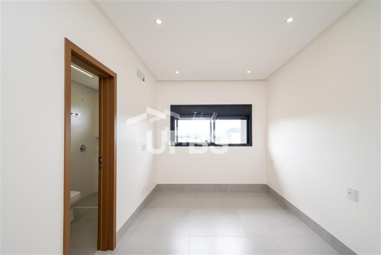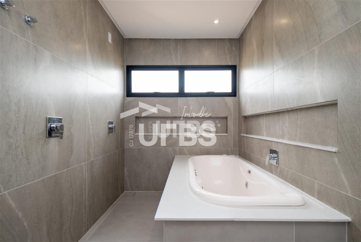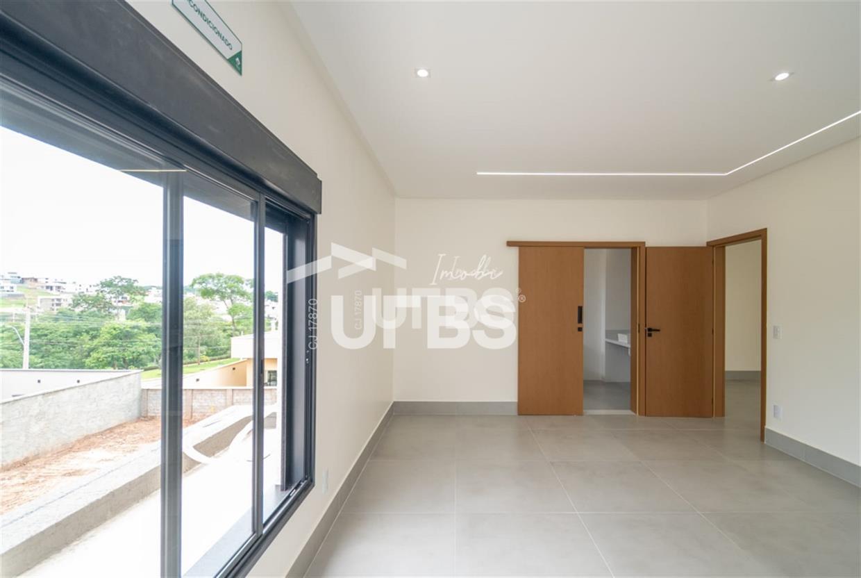 Sobrado no condomínio Jardins Barcelona - Área do terreno 300m² - Área construída de 233 m² - 4 suítes plenas, sendo 3 suítes superiores e 1 suíte térrea - Suíte master com espaço para closet, banheiro amplo com 2 duchas, 2 cubas e banheira para duas pessoas; - Total integração entre sala de estar, jantar, cozinha, deck e piscina - Piscina com aquecimento e cascata e ofurô com hidromassagem - Lavabo, despensa e área de serviço Preparação para aquecimento nos banheiros por boiler.