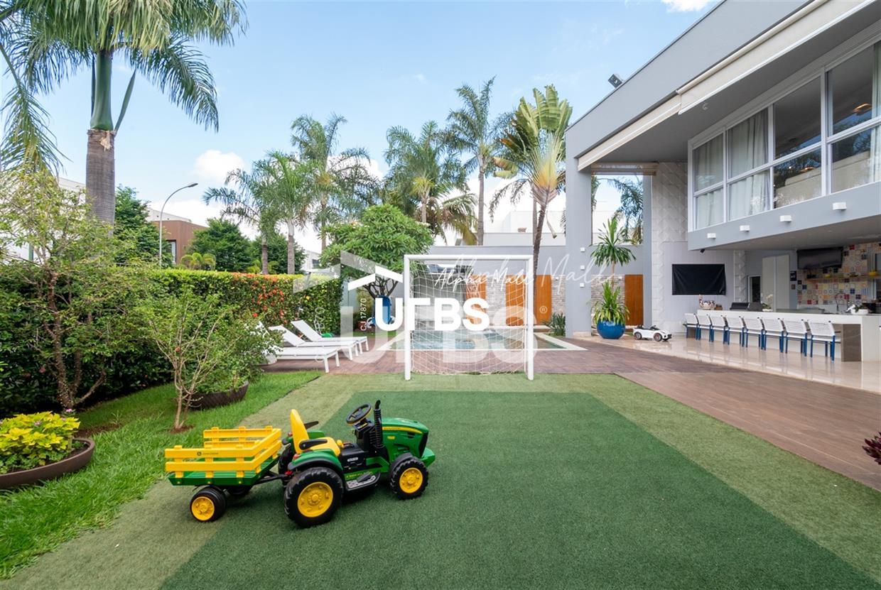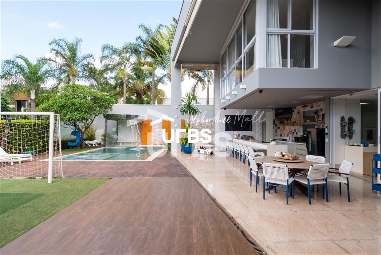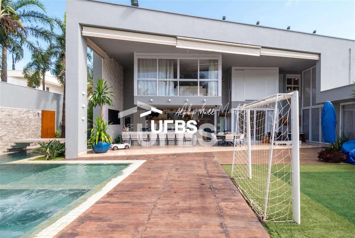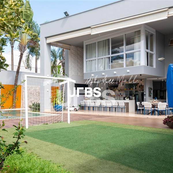 Sobrado de Esquina no Alphaville GoiásSobrado de Esquina alto padrão em Alphaville Goiás mobiliado e decorado, fachada imponente e com paisagismo.Localizado em um terreno de 864,16 m² com área construída de 479,27 m², este imóvel oferece o máximo em conforto e sofisticação. O imóvel conta com 4 suítes, sendo 1 suíte máster, closet e hidromassagem.Espaço gourmet integrado com a varanda, piscina aquecida e sauna e mini campo de futebol. Acabamentos de alta qualidade, piso em granito e armários planejados, janelas e cortinas automatizadas, sistema de audiovisual automatizado e controlado pelo celular, circuito fechado de TV com 16 câmeras e tecnologias sustentáveis como aquecimento solar, irrigação automatizada e energia fotovoltaica, garantem um estilo de vida exclusivo.Vaga de garagem para 04 carros.