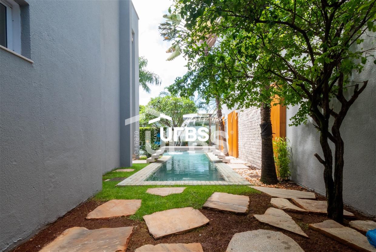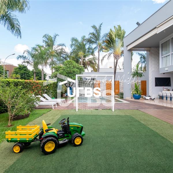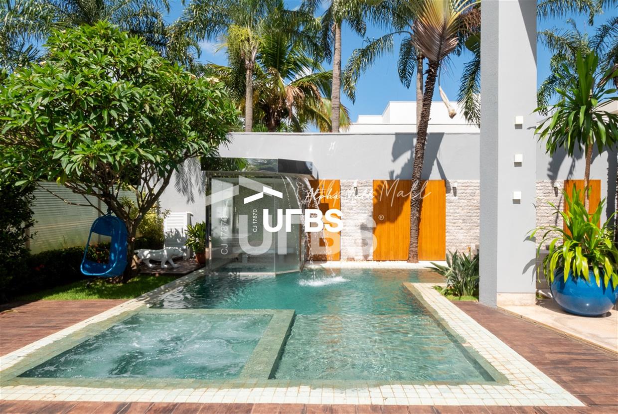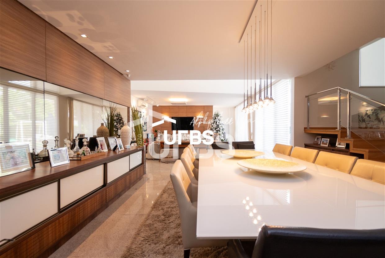 Sobrado de Esquina no Alphaville GoiásSobrado de Esquina alto padrão em Alphaville Goiás mobiliado e decorado, fachada imponente e com paisagismo.Localizado em um terreno de 864,16 m² com área construída de 479,27 m², este imóvel oferece o máximo em conforto e sofisticação. O imóvel conta com 4 suítes, sendo 1 suíte máster, closet e hidromassagem.Espaço gourmet integrado com a varanda, piscina aquecida e sauna e mini campo de futebol. Acabamentos de alta qualidade, piso em granito e armários planejados, janelas e cortinas automatizadas, sistema de audiovisual automatizado e controlado pelo celular, circuito fechado de TV com 16 câmeras e tecnologias sustentáveis como aquecimento solar, irrigação automatizada e energia fotovoltaica, garantem um estilo de vida exclusivo.Vaga de garagem para 04 carros.