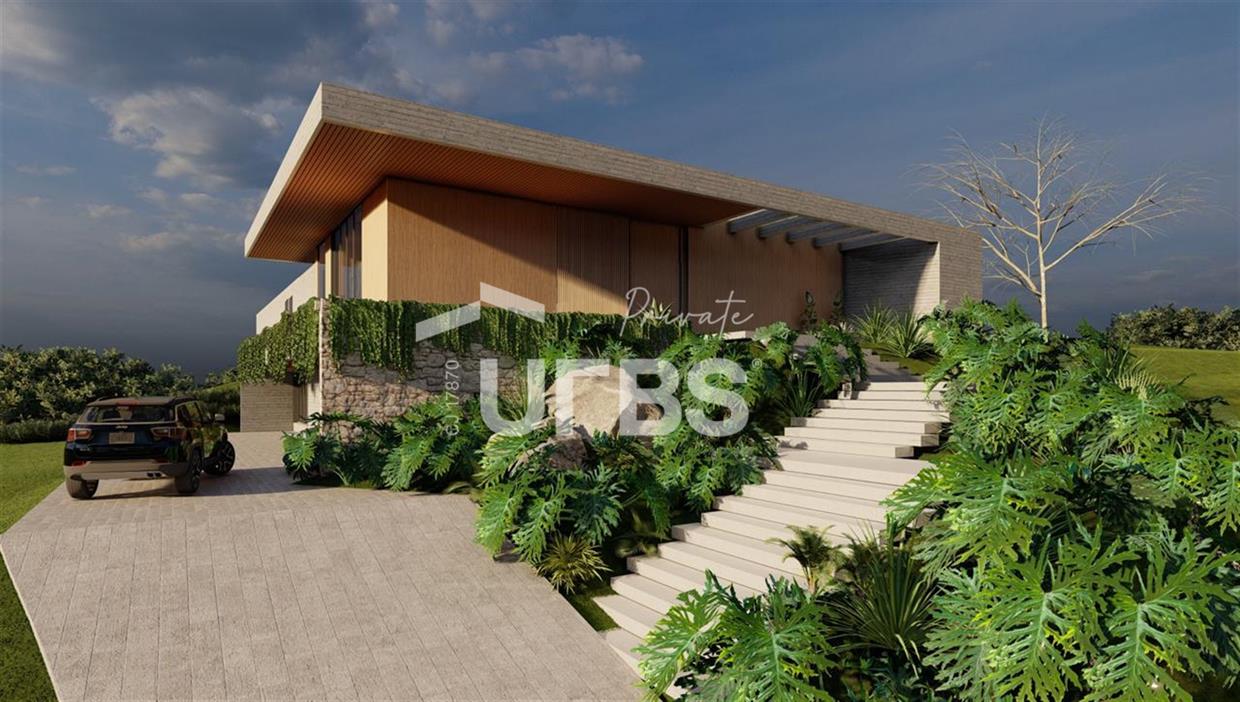 Residência moderna, com acabamentos selecionados de alto padrão, porcelanatos, mármores e granitos, formato U com todos os quartos contemplando a piscina com borda knife edge, que possui hidromassagem, aquecimento e iluminação, cozinha integrada com sala de jantar, adega e sala de TV privativas. Automação completa (iluminação + ar condicionado + esquadrias + som + TV) e será entregue com climatização instalada! Churrasqueira a carvão na área de lazer, casa completa em armários e a garagem (localizada no subsolo) tem vaga para 6 carros coberta. Próxima à área de lazer do condomínio, os 4 quartos têm vista pra mata e são nascentes. O subsolo possui depósito de gás, escritório, área técnica e elevador para 6 pessoas com vista panorâmica do condomínio! A casa contará com usina fotovoltaica, poço artesiano funcionando e reaproveitamento de água de chuva! entrega garantida: 31/12/2025 ▪️armários: OG Ambientes ▪️automação : Smartek ▪️esquadrias de alumínio : CRJ Esquadrias ▪️elevador : Alka Elevadores ▪️mármores e granitos : Marmoraria Lisboa ▪️ar condicionado (VRF) : SuperAr ▪️usina fotovoltáica : AseEnergy ▪️som + internet + câmeras : SpeedElectrick