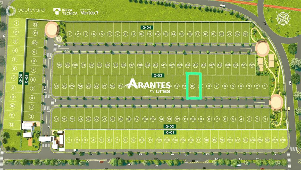 Terreno com ótima localização em condomínio fechado, o Boulevard Umuarama, no bairro Grand Ville, região Leste de Uberlândia. Com área total de 275m², plano.
