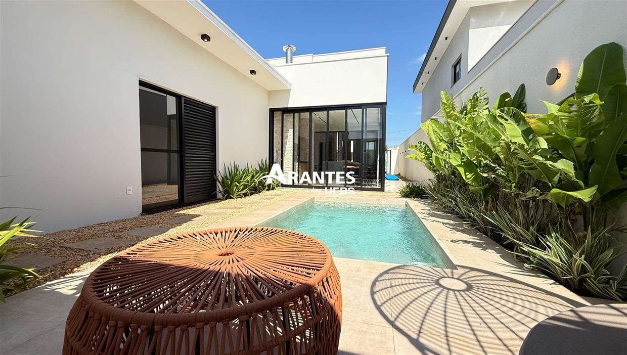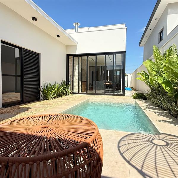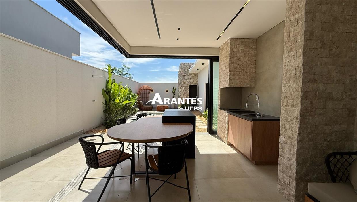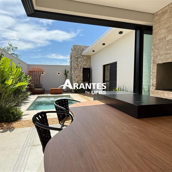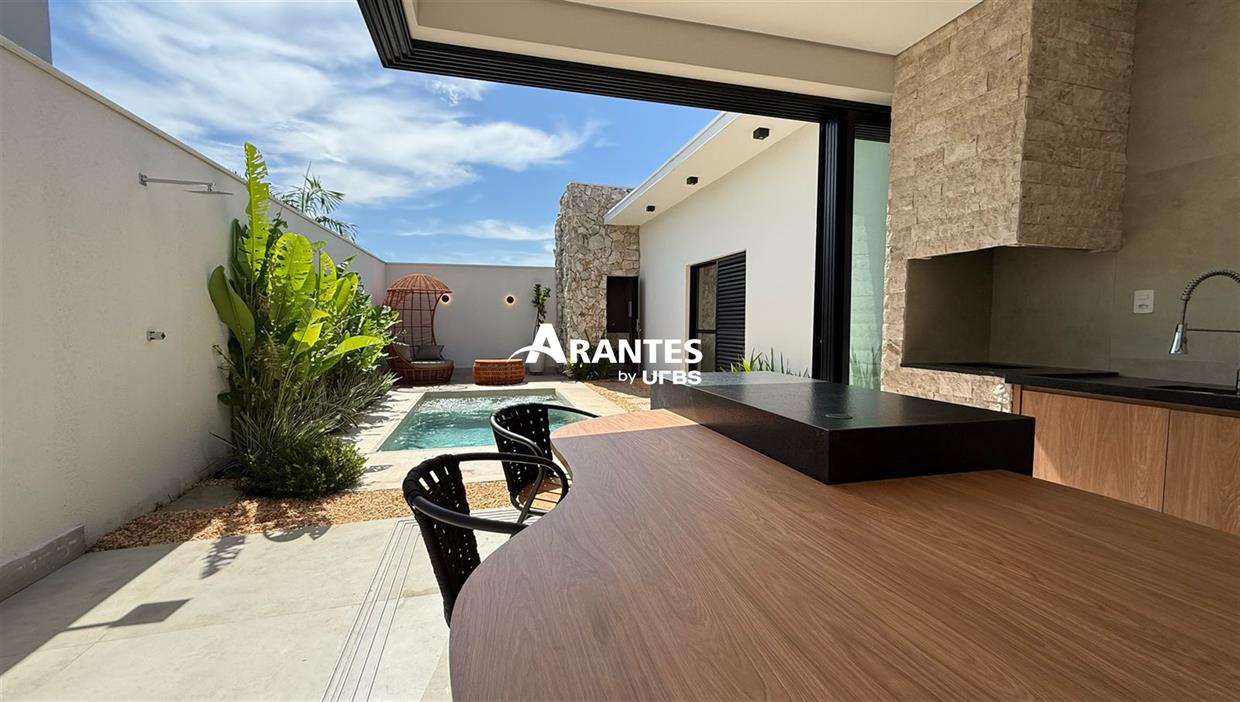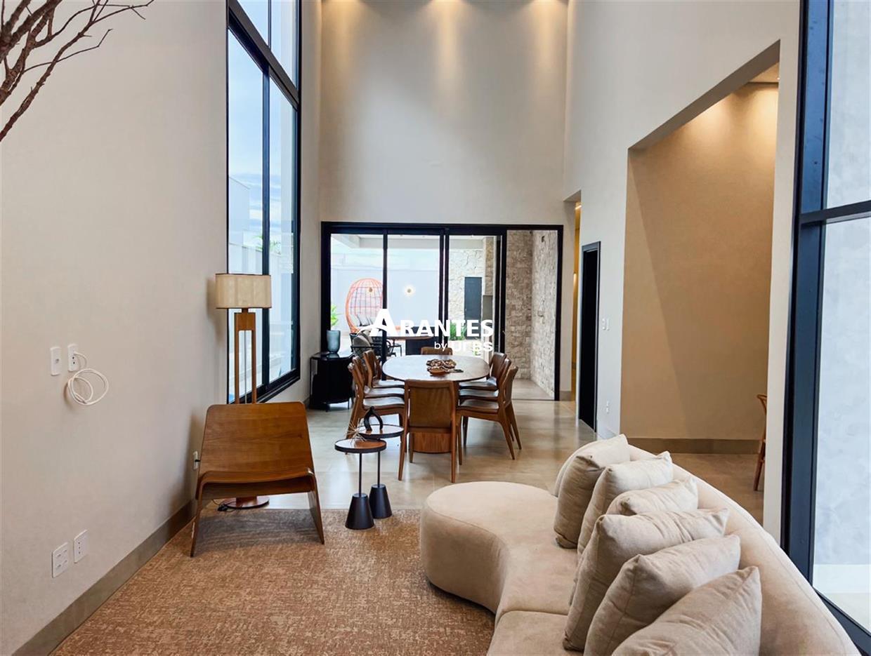 Casa Térrea no Condomínio SplêndidoEsta elegante casa de 203 m², em um terreno de 360 m², oferece um design moderno e sofisticado, com acabamentos de altíssimo padrão. Localizada em um dos condomínios mais exclusivos da região, combina conforto e funcionalidade para uma vida de qualidade.Com espaços amplos e bem distribuídos, a casa conta com 3 suítes, área gourmet e piscina aquecida, além de um belo paisagismo tropical e iluminação aconchegante, tornando cada ambiente um convite ao bem-estar.Destaques do imóvel:- Fachada imponente com pé direito duplo e revestimentos em pedras naturais- Sala de estar e jantar com mobiliário completo e design orgânico- Cozinha equipada com armários planejados e acabamento de primeira- Área gourmet com revestimentos em travertino rock face- Piscina aquecida e iluminada, ideal para momentos de lazer- Paisagismo tropical integrado à arquitetura- Iluminação moderna e aconchegante em todos os ambientesAgende sua visita.