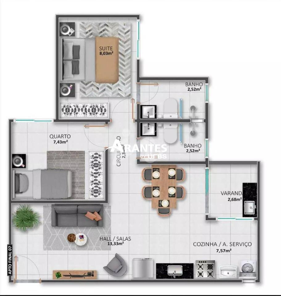 Charmoso Apartamento no Novo MundoEste apartamento de 51m², localizado no crescente bairro Novo Mundo, oferece um espaço acolhedor com 2 quartos, sendo 1 suíte. Sala ampla em dois ambientes e uma varanda que completa o ambiente, ideal para quem busca conforto em uma região em pleno desenvolvimento.A cozinha bem distribuída e a lavanderia proporcionam um ambiente funcional. O imóvel ainda conta com 1 vaga de garagem.Destaques:- 2 quartos (1 suíte)- Sala ampla em 2 ambientes com varanda- Cozinha e lavanderia integradas- Bairro em crescimento, com ótima valorizaçãoEntre em contato e agende sua visita.