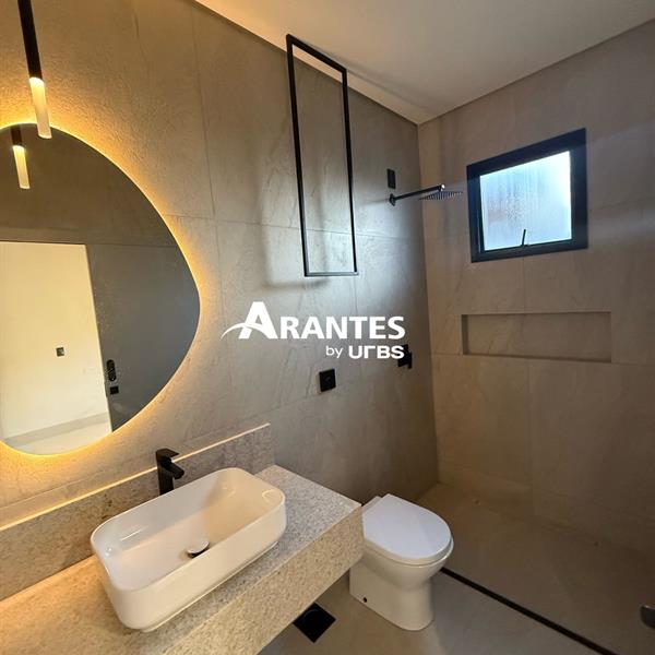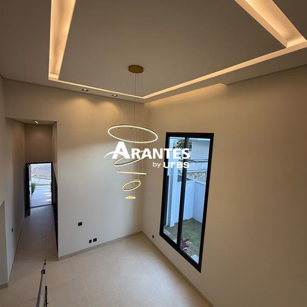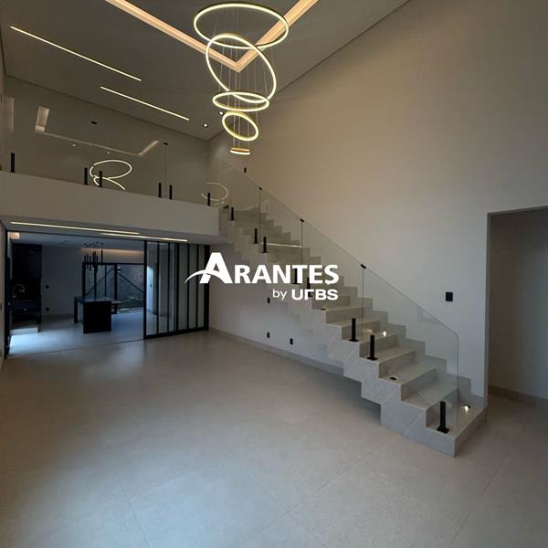 Casa de Alto Padrão com Piscina e Área Gourmet – Conforto e Elegância Esta casa no condomínio é o lugar ideal para quem busca qualidade de vida e muito espaço. Com uma ampla piscina na área externa integrada à área gourmet, você terá o cenário perfeito para momentos de lazer e confraternização. O imóvel conta com acabamentos de primeira linha e um projeto pensado para o máximo de conforto e funcionalidade. Com mezanino de 14 metros, cozinha equipada com bancadas em pedra e uma suíte master com closet e jardim privativo, a casa oferece todo o luxo e comodidade. A área de lazer do condomínio inclui piscina, salão de festas, churrasqueira, brinquedoteca e mais. Destaques do imóvel: - 3 suítes, sendo uma master com closet e jardim privativo - Mezanino de 14 metros e pé direito de 7 metros - Cozinha com área gourmet integrada e piscina ampla na área externa - 4 vagas de garagem e porta automatizada - Fire pit, preparação para adega e roupeiro na área íntima - Condomínio com piscina, salão de festas, salão de jogos, brinquedoteca e churrasqueira - Piso em porcelanato e lustre na sala com iluminação planejada Não perca a chance de conhecer seu novo lar com piscina e área gourmet! Agende sua visita agora.