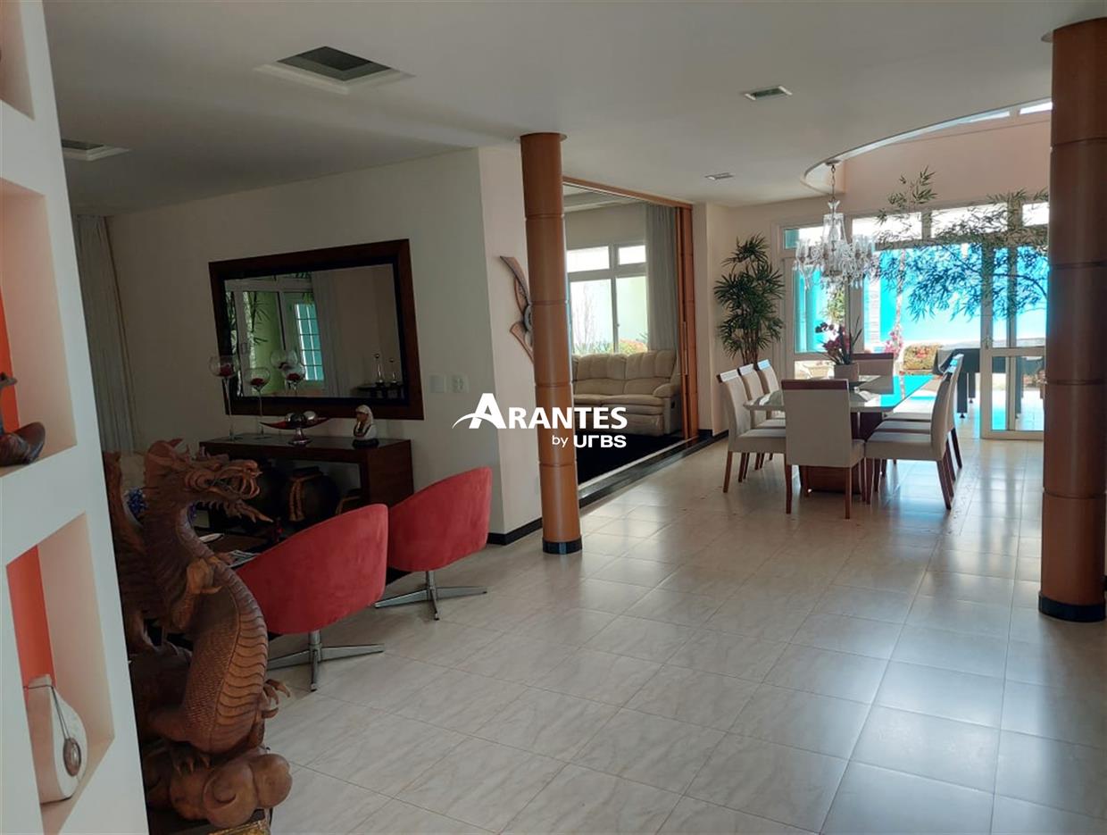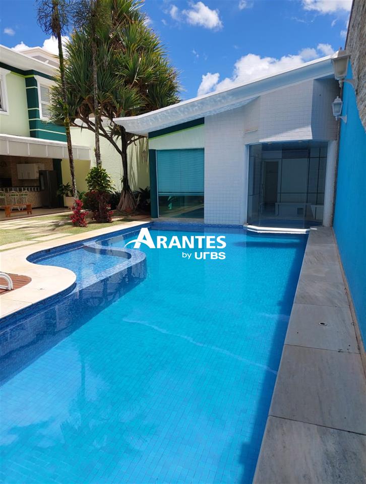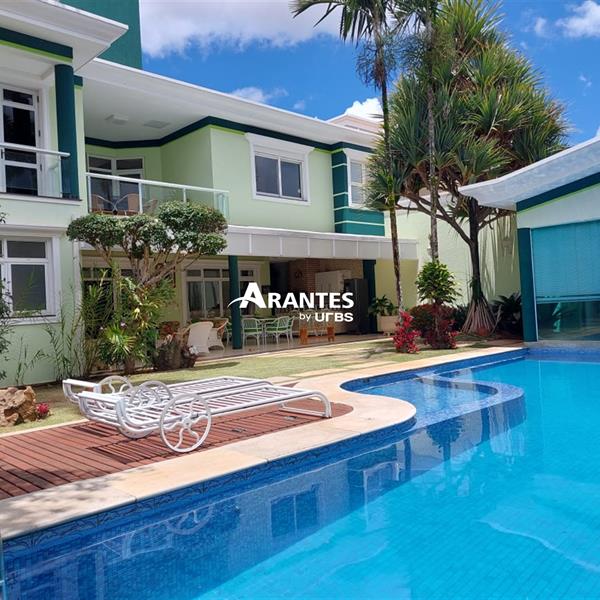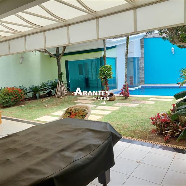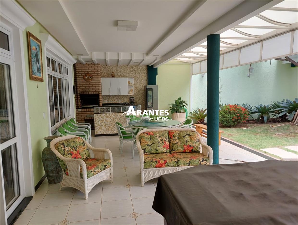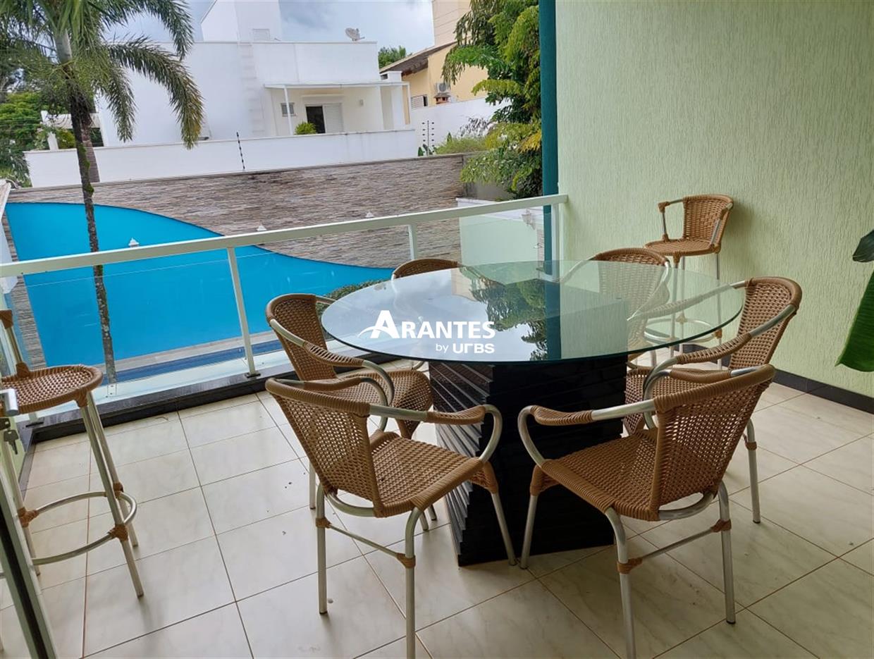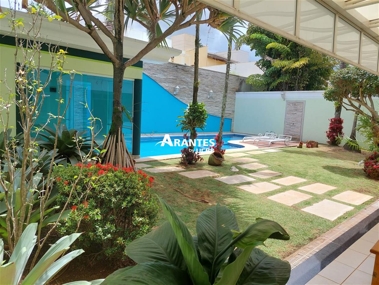 Belíssima casa estilo sobrado localizada na zona sul, no condomínio fechado Villa do Sol, de aproximadamente 470m² de área construída. 2º Pavimento: 04 suítes, sendo 01 master com 50 m², hidro, sacada, closet, mais 3 suítes sendo 2 com hidro; sala íntima, sacada ampla. 1º piso: sala em 03 ambientes, escritório com banheiro, opção para mais uma suíte, cozinha ampla, varanda gourmet, churrasqueira, banheiro externo, área verde ampla, piscina com raia e hidro, sauna, e espaço para academia, área de serviço completa e 06 vagas de garagem, sendo 3 cobertas. Área do terreno: 590m².