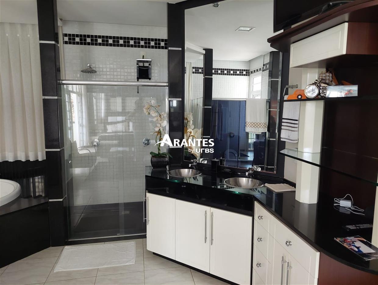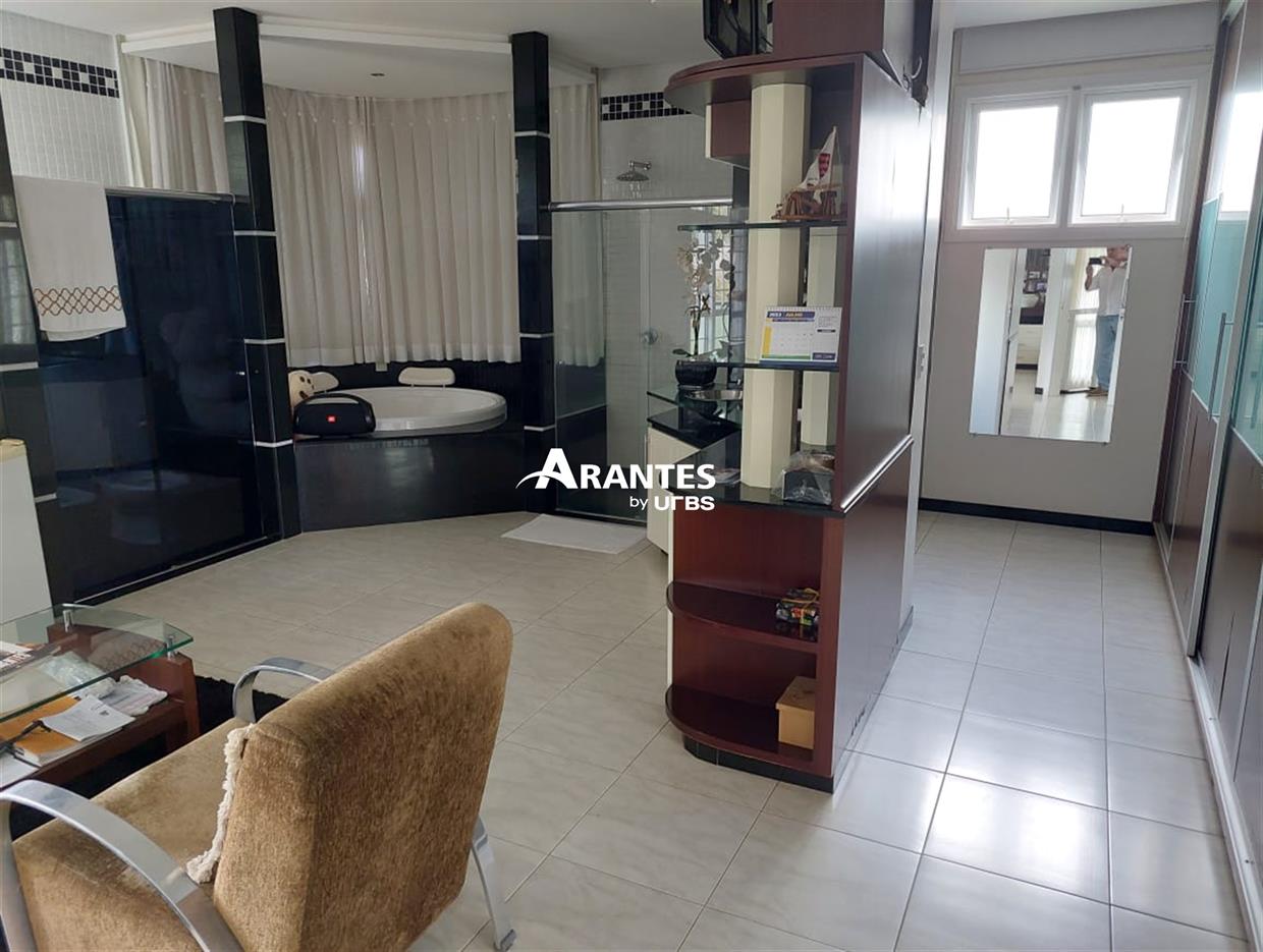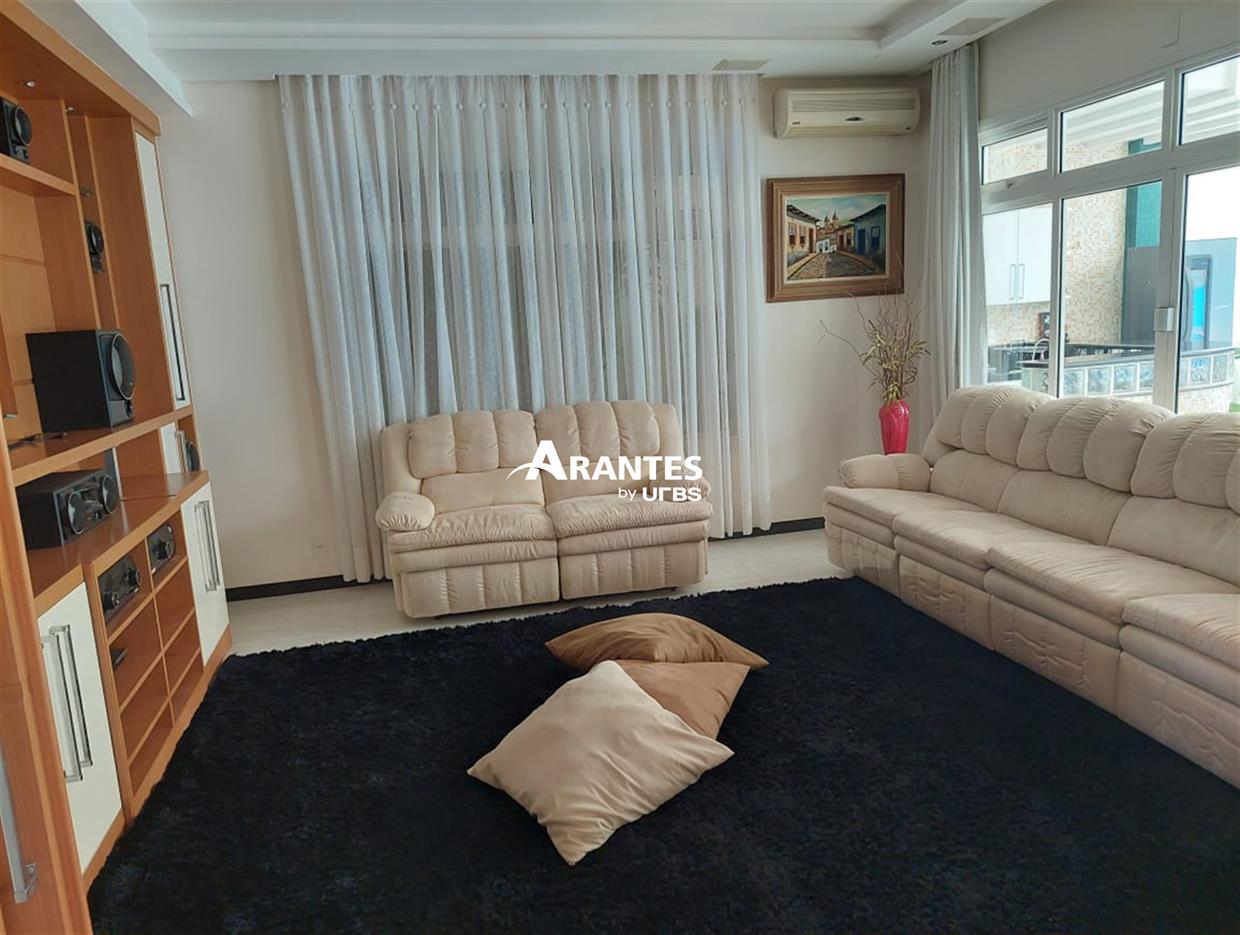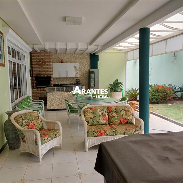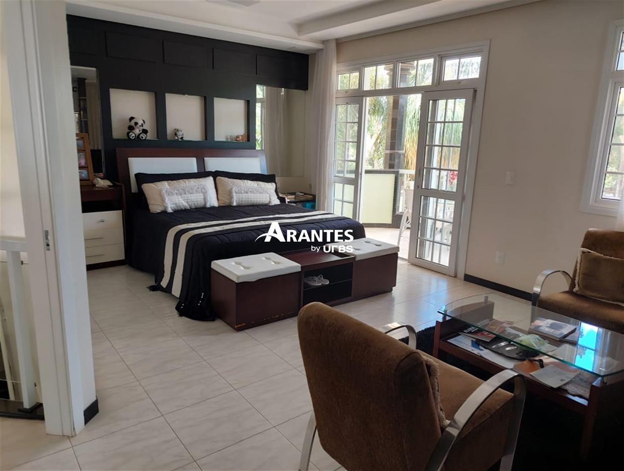 Belíssima casa estilo sobrado localizada na zona sul, no condomínio fechado Villa do Sol, de aproximadamente 470m² de área construída. 2º Pavimento: 04 suítes, sendo 01 master com 50 m², hidro, sacada, closet, mais 3 suítes sendo 2 com hidro; sala íntima, sacada ampla. 1º piso: sala em 03 ambientes, escritório com banheiro, opção para mais uma suíte, cozinha ampla, varanda gourmet, churrasqueira, banheiro externo, área verde ampla, piscina com raia e hidro, sauna, e espaço para academia, área de serviço completa e 06 vagas de garagem, sendo 3 cobertas. Área do terreno: 590m².