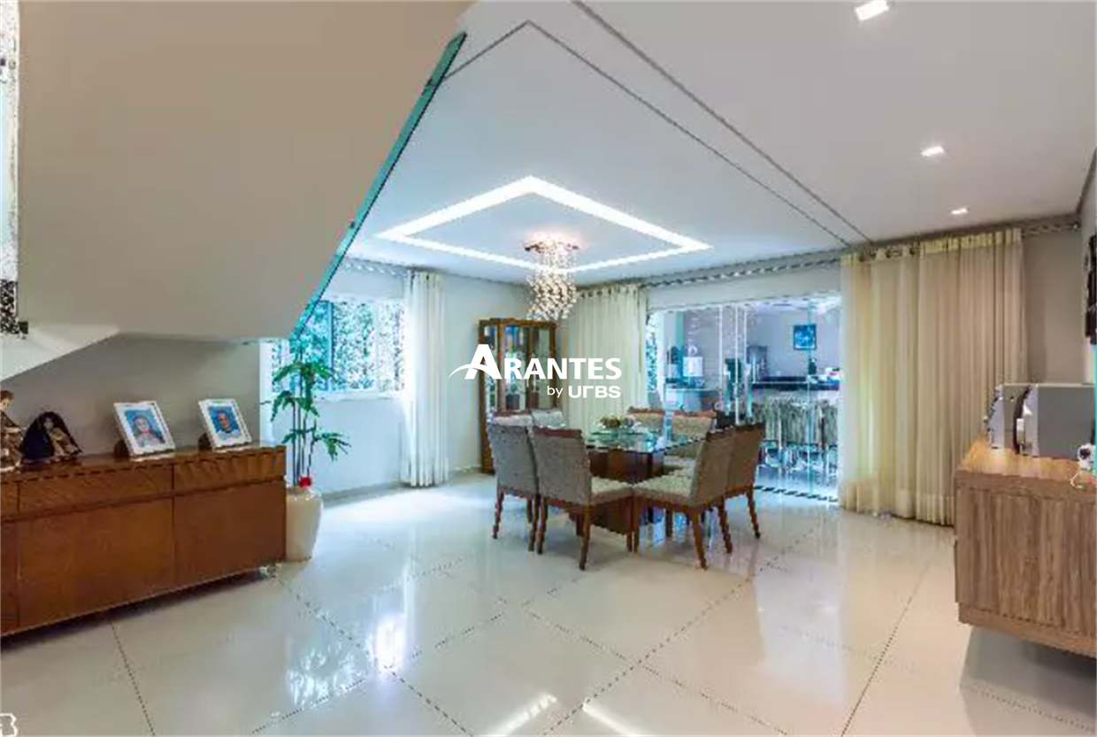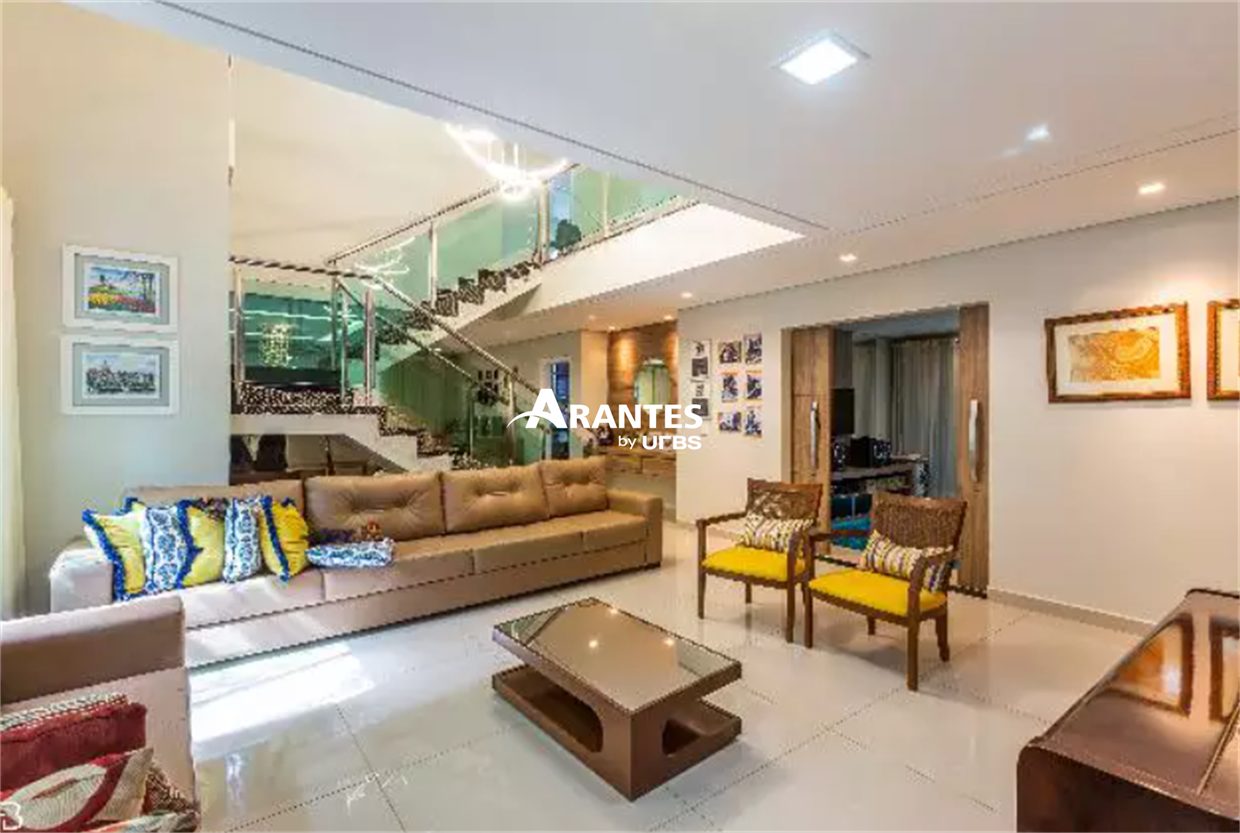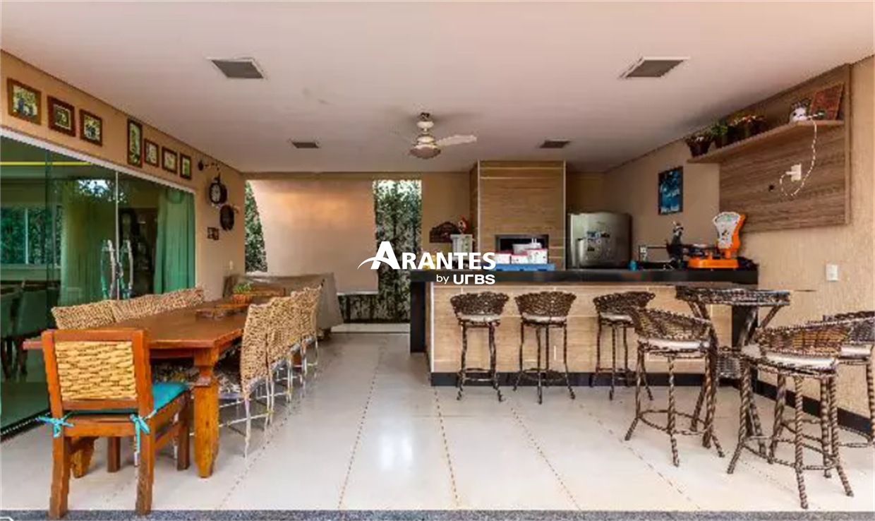 Belíssima casa localizada em condomínio fechado da cidade de Uberlândia, o Bosque Karaíba, de aproximadamente 325,53m² de área construída, toda montada. Piso térreo com 01 suíte, sala em dois ambientes com sala de TV separada, lavabo, cozinha ampla com despensa, varanda gourmet, ofurô, área verde, área de serviços completa. Piso superior com 03 suítes sendo 01 master com closet, escritório, sacada, 04 vagas de garagem sendo 02 cobertas. Área do terreno 460,30m².