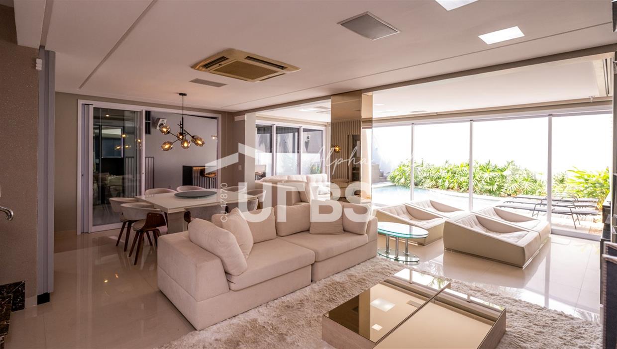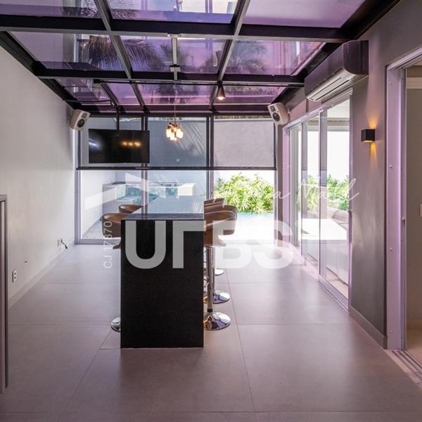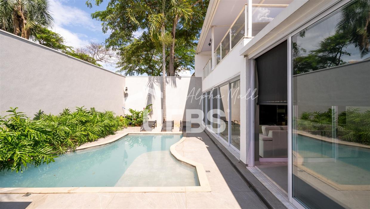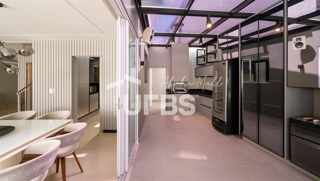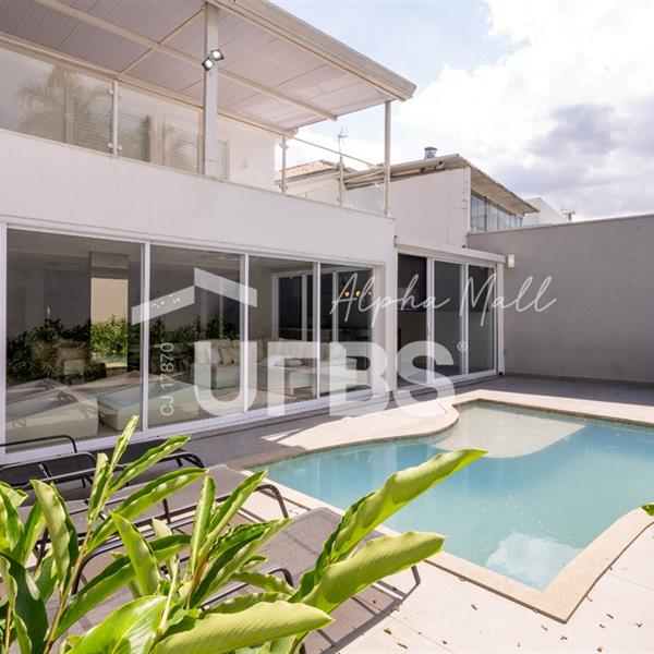 Sobrado Housing Alphaville Flamboyant Aconchegante Sobrado na terceira etapa (Individual) no Housing está à venda, tem 217 m² de área construída, 3 suítes plenas no piso superior, sendo a master com closet e sacada privativa com uma bela vista. Projeto de iluminação belíssimo. O imóvel conta no piso inferior com sala para 03 ambientes, estar, jantar e home tv e mais escritório, integração total com área de lazer através de portas de vidro, cozinha completa em armários de ótima qualidade, área de serviço, estacionamento frontal para 2 carros cobertos e todo piso em porcelanato. Área de lazer com piscina e hydro aquecida, varanda gourmet com churrasqueira a carvão. O sobrado tem uma excelente localização dentro do condomínio que possui piscina adulto e infantil, quadra de tênis, quadra de beach tênis, quadra poliesportiva, academia, salão de festas, playground e brinquedoteca. Será vendido mobiliado R$2.800.000,00