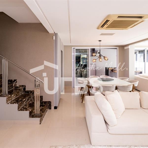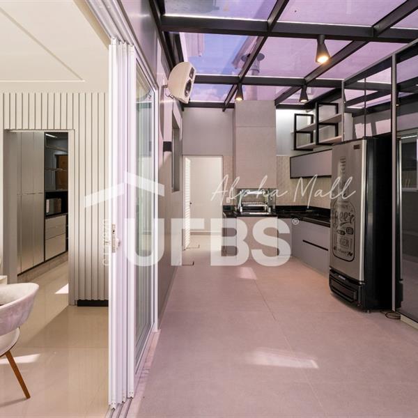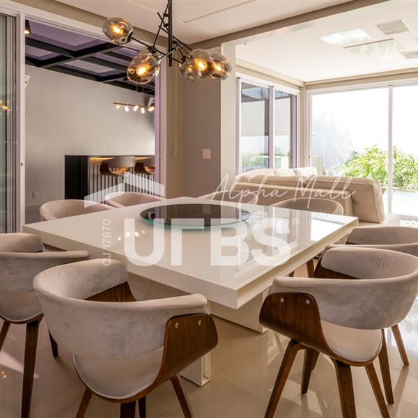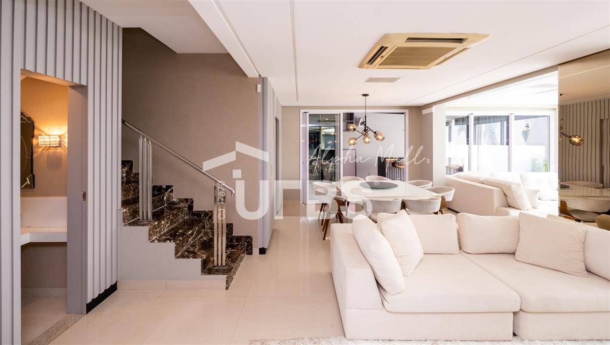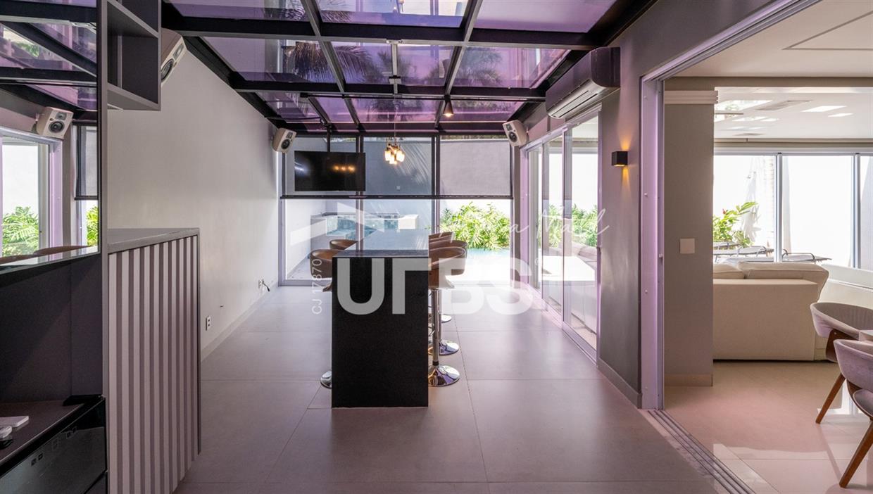 Sobrado Housing Alphaville Flamboyant Aconchegante Sobrado na terceira etapa (Individual) no Housing está à venda, tem 217 m² de área construída, 3 suítes plenas no piso superior, sendo a master com closet e sacada privativa com uma bela vista. Projeto de iluminação belíssimo. O imóvel conta no piso inferior com sala para 03 ambientes, estar, jantar e home tv e mais escritório, integração total com área de lazer através de portas de vidro, cozinha completa em armários de ótima qualidade, área de serviço, estacionamento frontal para 2 carros cobertos e todo piso em porcelanato. Área de lazer com piscina e hydro aquecida, varanda gourmet com churrasqueira a carvão. O sobrado tem uma excelente localização dentro do condomínio que possui piscina adulto e infantil, quadra de tênis, quadra de beach tênis, quadra poliesportiva, academia, salão de festas, playground e brinquedoteca. Será vendido mobiliado R$2.800.000,00