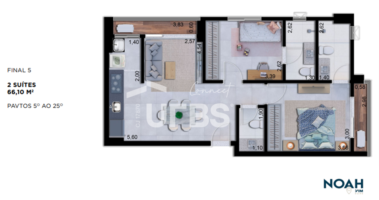 More no coração do Setor Bueno em um apartamento moderno e completo!Desfrute de uma vida prática e sofisticada neste lindo apartamento de 2 suítes no Condomínio Noah Sim Home, localizado no Setor Bueno, em Goiânia. Com 66,10m² de área útil, o imóvel oferece o espaço perfeito para você e sua família. Aproveite a praticidade de ter 2 suítes, proporcionando conforto e privacidade para todos. Relaxe e desfrute de momentos únicos em sua varanda, perfeita para apreciar a vista da cidade. O condomínio oferece diversas opções de lazer para você se divertir sem sair de casa.Não perca essa oportunidade! Entre em contato conosco hoje mesmo para agendar sua visita e realizar o sonho de morar em um dos bairros mais desejados de Goiânia!