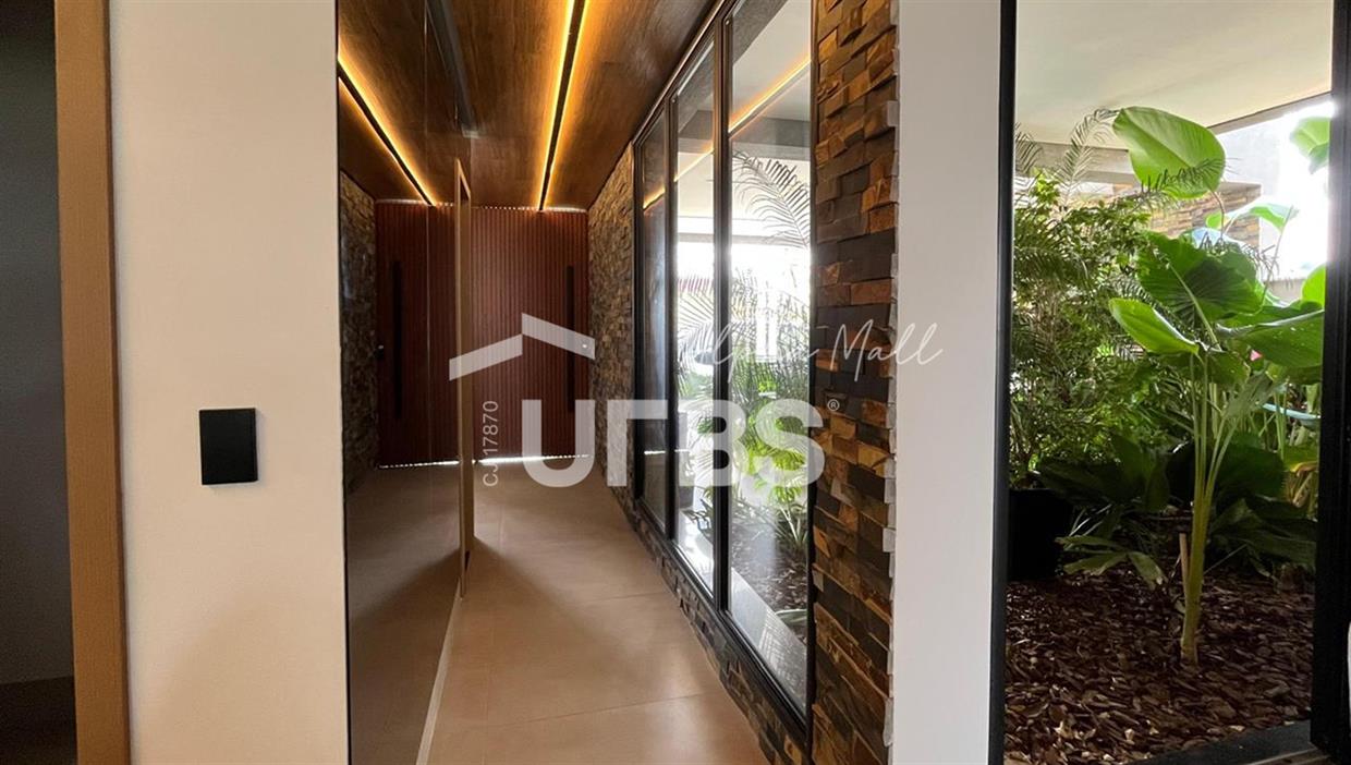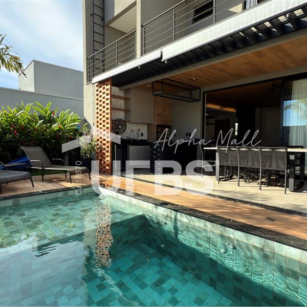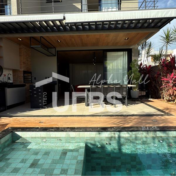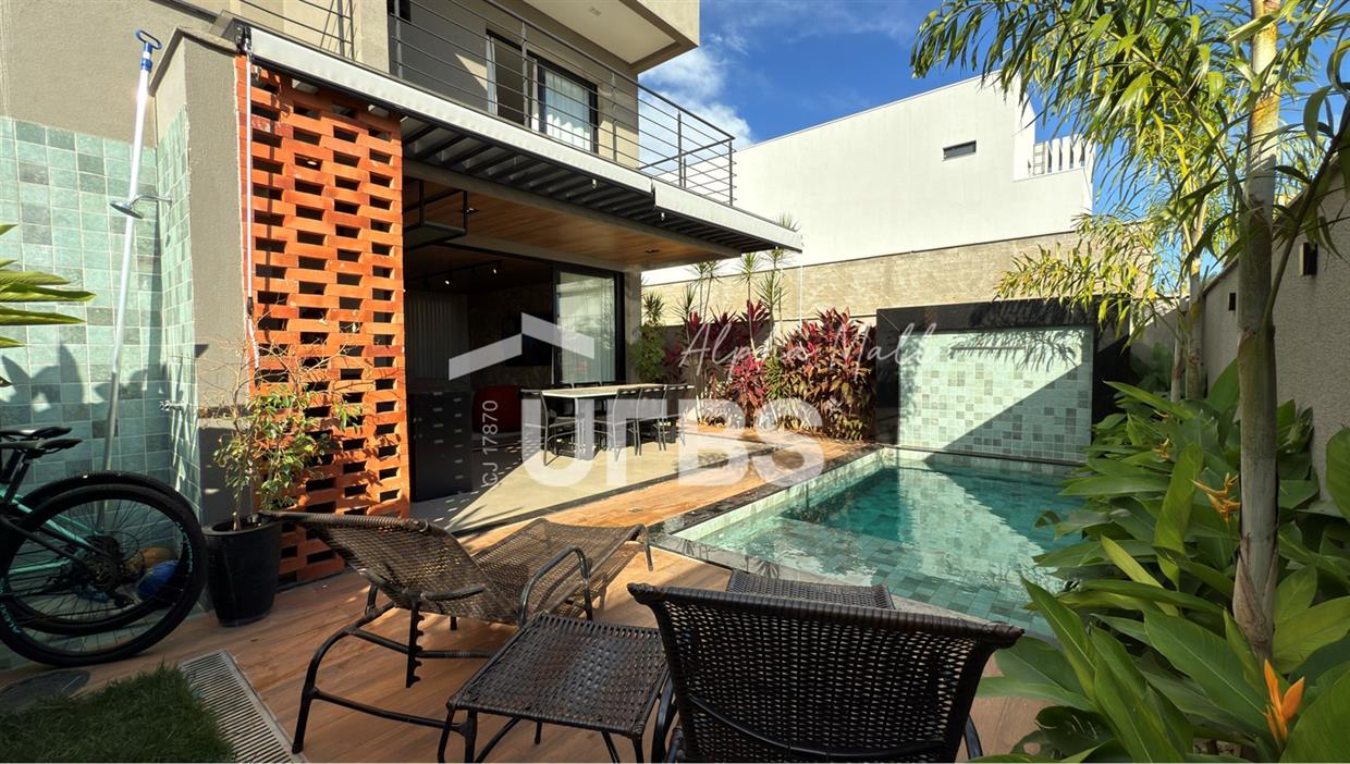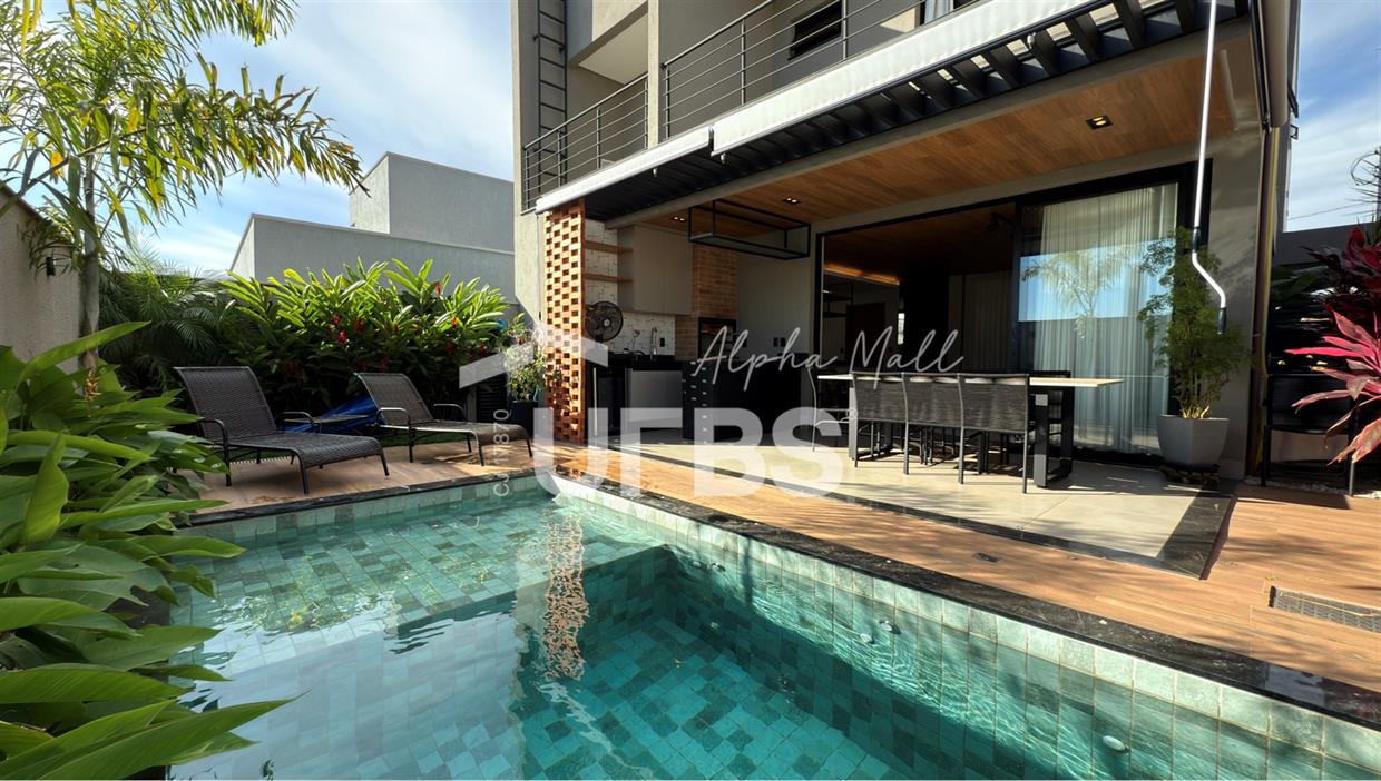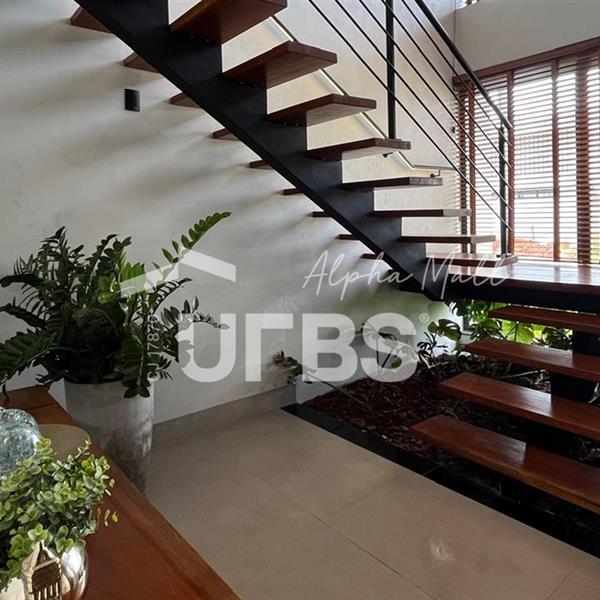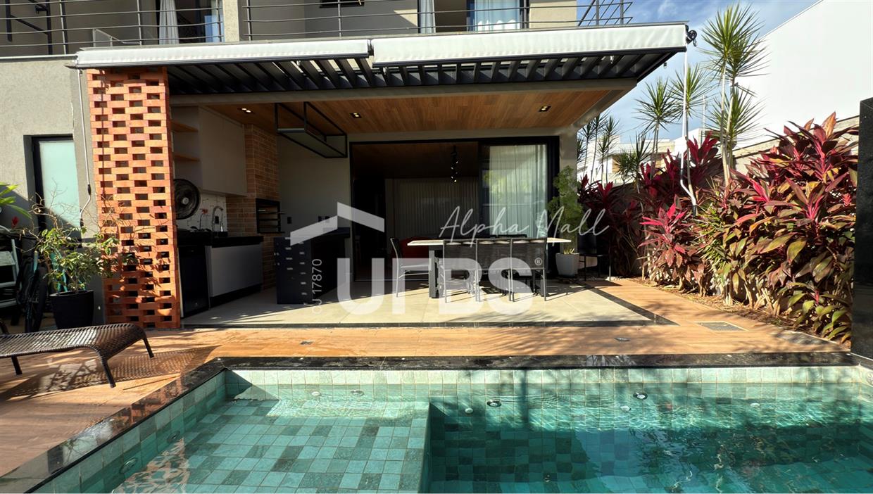 Sobrado no Jardins Capri- Sobrado alto padrão com 4 suítes + escritório; - Todo repleto em armários; - Sala ampla com integração da cozinha; - Jardim de inverno; - Lavabo; - Despensa com armários; - Área de serviço com armários; - Ar condicionado e cortinas em todos os ambientes; - Projeto de iluminação com inteligência; - Boxes elegance e espelhos nos banheiros; - Jardinagem com paisagismo; - Revestimentos área externa e interna; - Aquecimento solar nos chuveiros e torneiras (boiler); - Ponto para carregamento de carro elétrico; - Área Gourmet com churrasqueira à carvão; - Piscina em pastilha com aquecimento solar, hidromassagem, iluminação e cascata; - Ducha quente/fria.