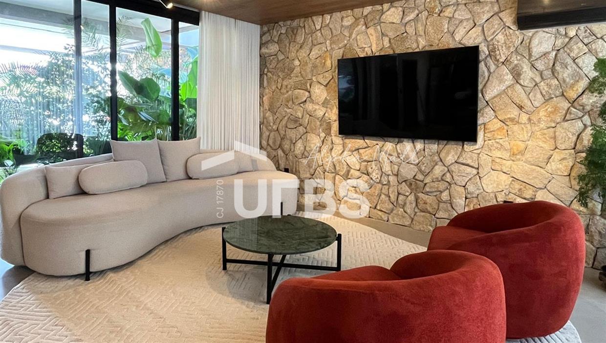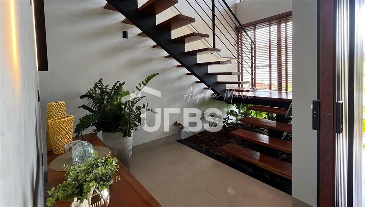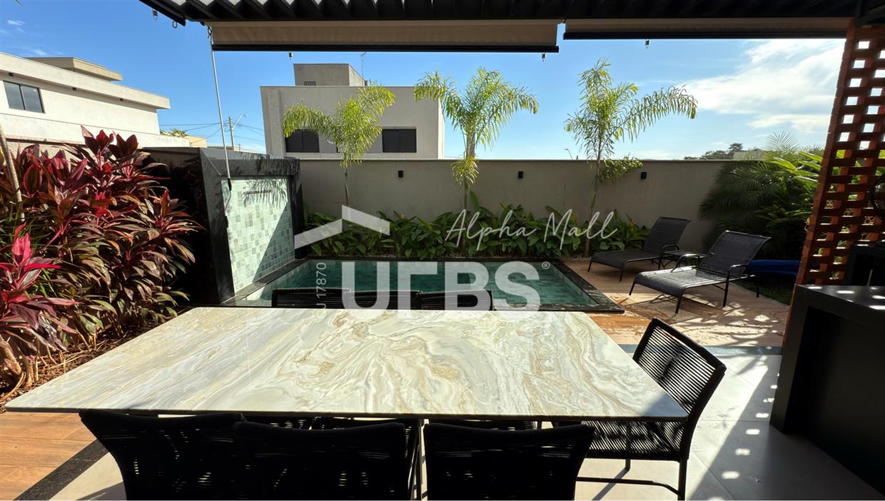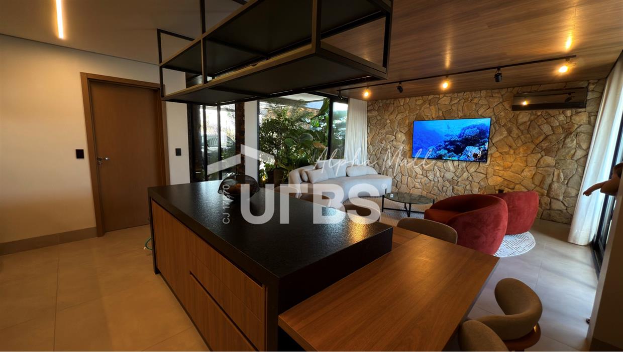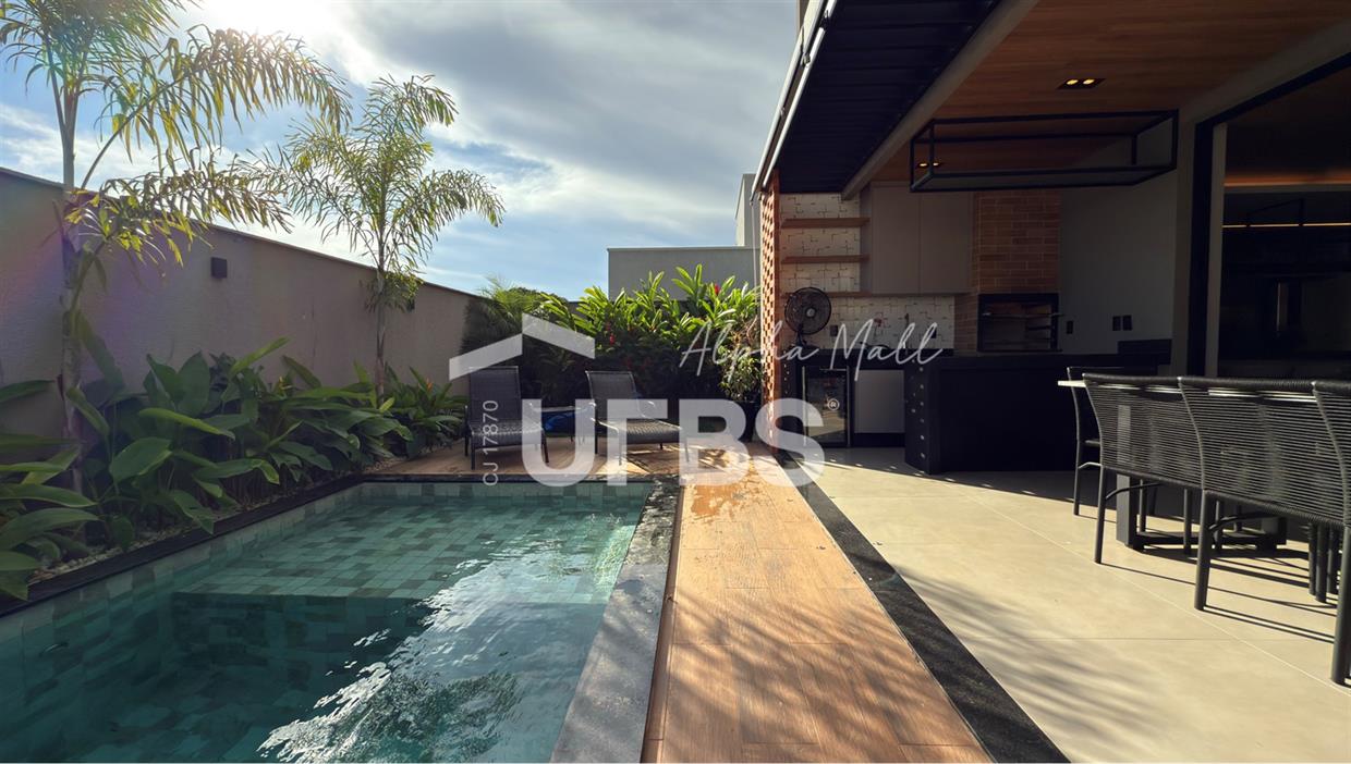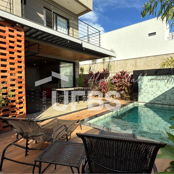 Sobrado no Jardins Capri- Sobrado alto padrão com 4 suítes + escritório; - Todo repleto em armários; - Sala ampla com integração da cozinha; - Jardim de inverno; - Lavabo; - Despensa com armários; - Área de serviço com armários; - Ar condicionado e cortinas em todos os ambientes; - Projeto de iluminação com inteligência; - Boxes elegance e espelhos nos banheiros; - Jardinagem com paisagismo; - Revestimentos área externa e interna; - Aquecimento solar nos chuveiros e torneiras (boiler); - Ponto para carregamento de carro elétrico; - Área Gourmet com churrasqueira à carvão; - Piscina em pastilha com aquecimento solar, hidromassagem, iluminação e cascata; - Ducha quente/fria.