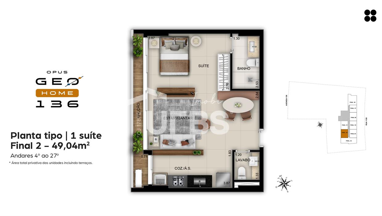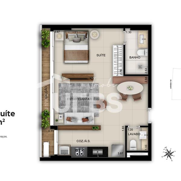 Opus Geo Home - Setor Marista Apartamento em andar intermediário à venda no Opus Geo com 49 m² com 1 suíte, sala integrada com a cozinha, lavabo e varanda balcão. O Opus Geo Home é um projeto inovador da Opus, localizado em uma área estratégica, em plena Avenida 136. Com duas torres de acesso independente, sendo uma residencial e uma comercial, o empreendimento oferece a combinação perfeita de conforto, praticidade e modernidade. 1 vaga de garagem. Ágio: R$281.000,00 Saldo devedor: R$369.000,00