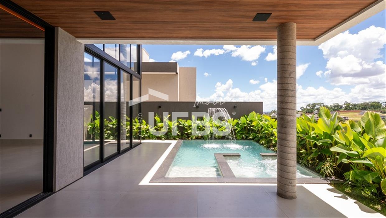 Linda casa com 372 m² de área privativa e 360m² de terreno, projetada para oferecer conforto e exclusividade. São 4 suítes plenas, sendo 2 com varanda privativa, além de muito espaço para poder montar academia, escritório, estúdio privativos além de um cinema para momentos especiais.A sala principal conta com pé direito duplo e integração total com varanda gourmet e cozinha, criando um ambiente amplo e convidativo. A área externa possui piscina com hidromassagem e churrasqueira à carvão, perfeita para relaxar e receber amigos.Em localização privilegiada com fundo para mata no Jardins Bolonha, um dos condomínios mais desejados e consolidados de Senador Canedo, garantindo segurança, lazer e qualidade de vida para toda a família.