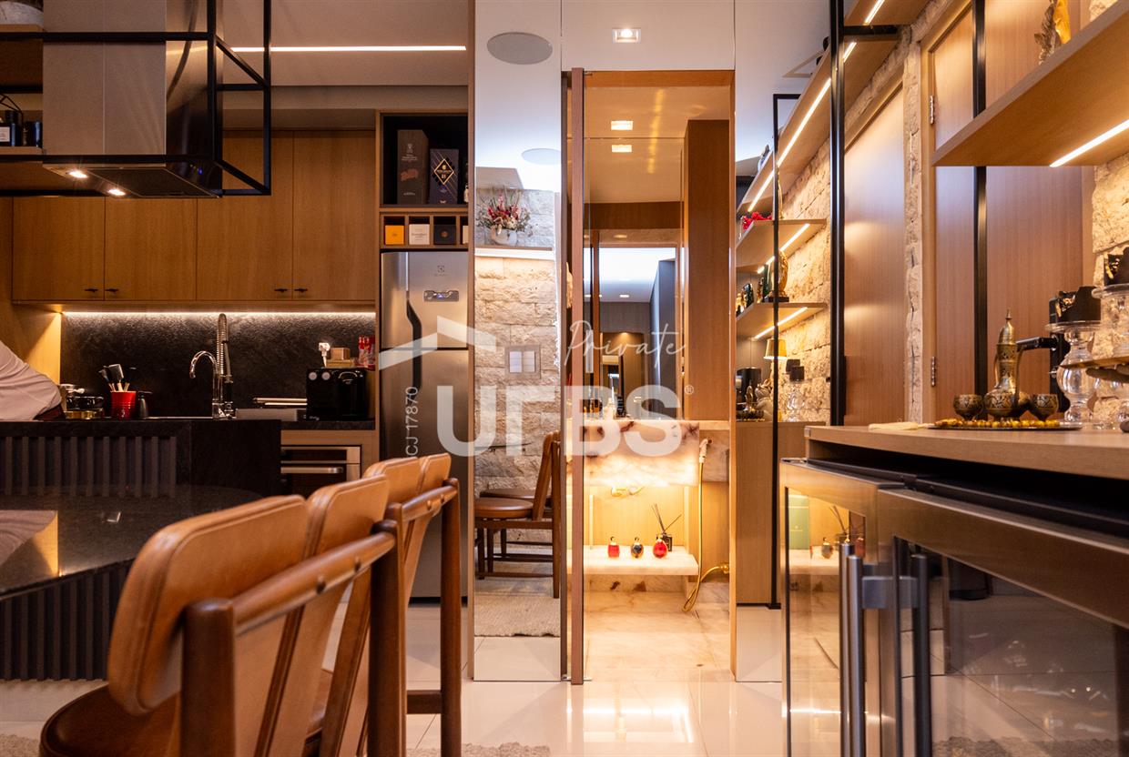 Apartamento de altissimo padrão, 2 suítes, 68m², mobiliado e decorado. Um apartamento que foge completamente do padrão. Com 68,32 m² muito bem aproveitados, esta unidade no Dot Bueno foi totalmente reformada, seguindo projeto arquitetônico exclusivo, com acabamento e mobília e decoração assinados, de altíssimo padrão. Cada detalhe foi pensado para entregar sofisticação, funcionalidade e personalidade. Suítes, lavabo e cozinha com armários Todeschinni. Andar alto, 1 vaga de garagem e escaninho. Imóvel será vendido mobiliado, decorado e equipado, conforme as fotos. Localizado no residencial Dot Bueno, próximo a praça da T-25, padaria, shopping, farmácias, etc. Possui área de lazer completa com academia, piscina, brinquedoteca.
