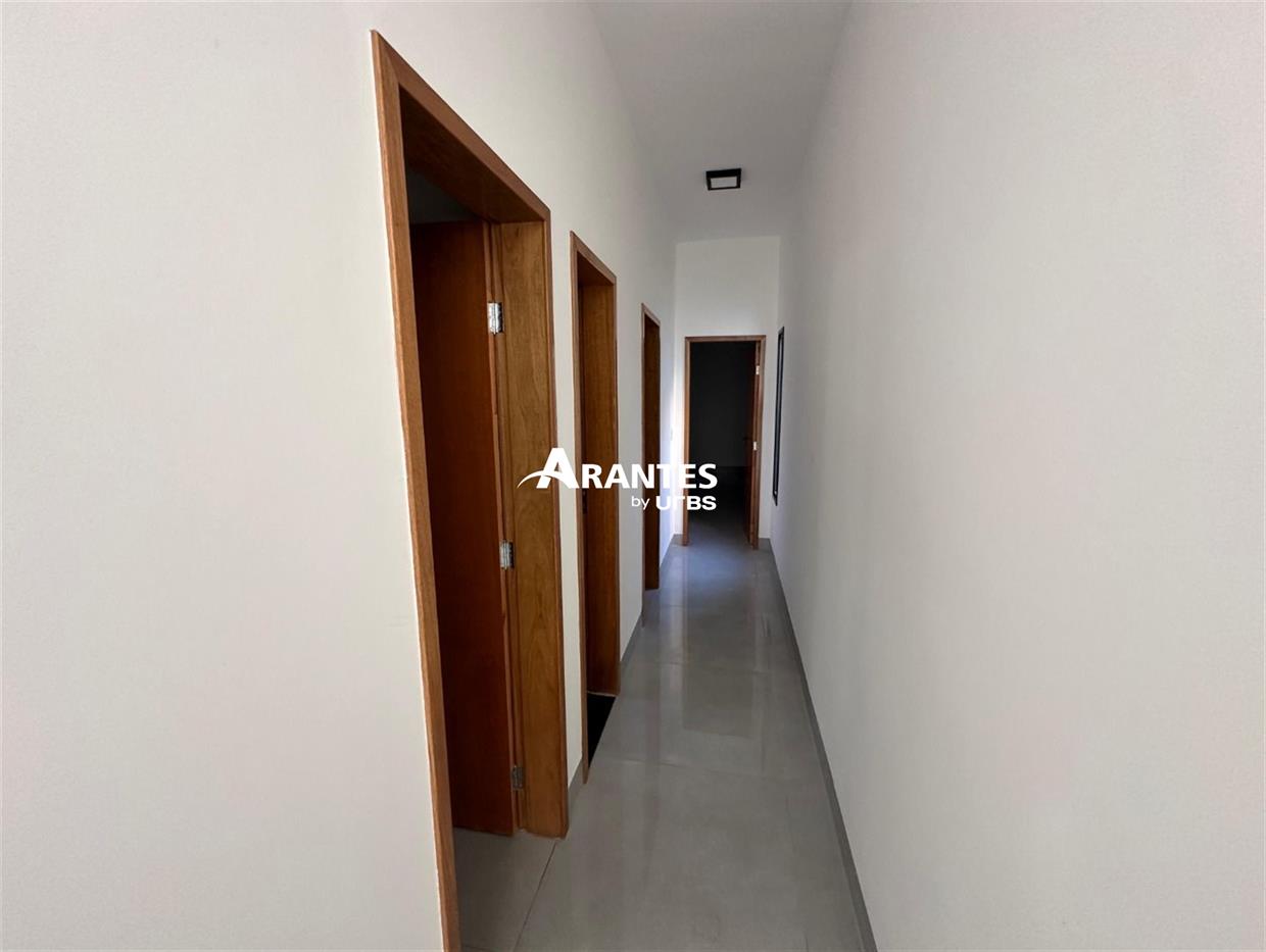Sua Nova Casa Pronta Para Viver Bons MomentosCom 133,04 m² de área construída em um terreno de 250 m², esta casa foi pensada para proporcionar funcionalidade, segurança e um visual moderno. São três quartos bem distribuídos, sendo uma suíte, além de lavabo e banheiro social. A sala em dois ambientes se destaca pelo espaço e acabamento em gesso rebaixado, criando um ambiente acolhedor e versátil.A cozinha, com bancada em granito, se integra de forma prática à área social da casa, favorecendo o uso diário e o convívio. A lavanderia é separada, garantindo organização, e o quintal já conta com paisagismo e iluminação com arandelas, além de uma área pronta para implantação de um espaço gourmet. Destaques do imóvel:• Três quartos, incluindo uma suíte com boa distribuição• Sala ampla em dois ambientes com gesso rebaixado• Cozinha funcional com bancada em granito• Lavabo, banheiro social e acabamento em porcelanato• Quintal com paisagismo e iluminação decorativa com arandelas• Área preparada para espaço gourmet• Lavanderia separada da cozinha• Garagem para até três carros• Portão eletrônico e cerca eletrificada para segurança• Localização em bairro calmo com acesso rápido a vias principaisConheça seu novo lar com estilo e praticidade.