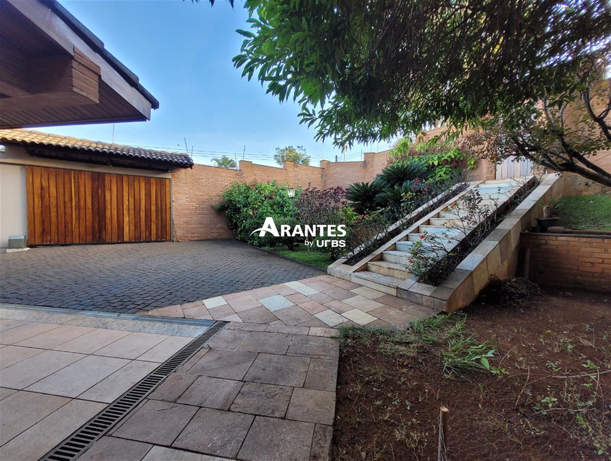 Espaço de Sobra, Charme Europeu e Lazer Para Toda a Família Sobrado amplo com 472 m² de área construída em terreno de 1.000 m², cercada por jardins e árvores nativas. Com estilo europeu e acabamento em tijolinho aparente, oferece ambientes aconchegantes, tornando a escolha certa para quem busca conforto, funcionalidade e momentos de lazer sem sair de casa. O piso superior reúne 4 suítes com armários (sendo 2 com varanda), escritório mobiliado e sala íntima. No térreo, salas amplas, lavabo, copa/cozinha planejada, varanda, garagem coberta e estrutura de apoio completa. A área externa é um diferencial à parte, com piscina, chuveiro, jardins, árvores frutíferas, quiosque com churrasqueira e espaço adicional para depósito e banheiros de apoio. Destaques do imóvel: * 4 suítes no piso superior, sendo 1 com móveis planejados e 2 com varanda * Escritório mobiliado e sala de TV no andar superior * Salas de estar, jantar e TV no piso inferior, com lavabo * Cozinha e copa com armários embutidos * Quiosque com churrasqueira, piscina e chuveiro externo * Jardins com árvores frutíferas e espécies do cerrado * Sistema de aquecimento solar para banheiros e cozinha * Garagem coberta para 3 carros + espaço adicional * Casa com estilo europeu e acabamento em madeira/alumínio * Terreno de 1.000 m² com área construída de 472 m² Agende sua visita e conheça todos os detalhes!