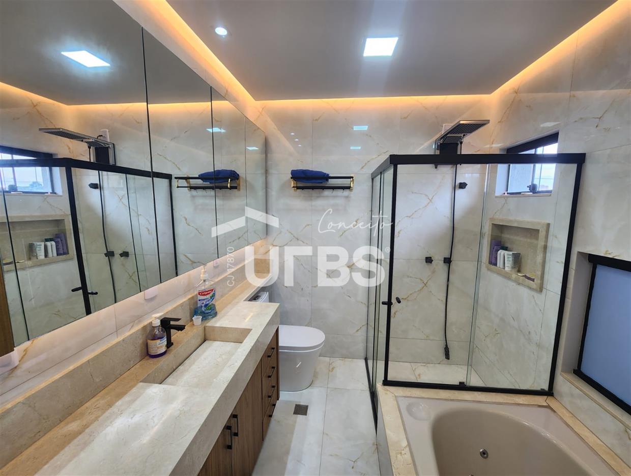 SOBRADO DE RUA no Setor Jardim Atlântico, em Goiânia, com área total do terreno de 210m² e área construída 236m², andar superior com 3 suítes, sendo a máster com banheira de hidromassagem, todas com armários planejados de auto padrão, ar condicionados, aquecimento de água em todas, no andar inferior 01 sala para 02 ambientes, lavabo, cozinha americana toda em armários integrada com área gourmet, varanda, área de serviço, churrasqueira, piscina aquecida com hidromassagem e cascata, lavabo, 2 vagas de garagem. Bem localizado, próximo a restaurantes, postos de gasolina, comercio em geral, toda a propriedade tem sistema de segurança com sensores e câmeras. Ótima oportunidade em estilo e localização não perca esta oportunidade! Agende sua visita! R$ 1.350.000.00 (aceita proposta).