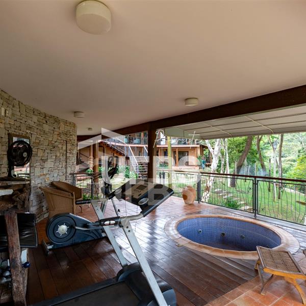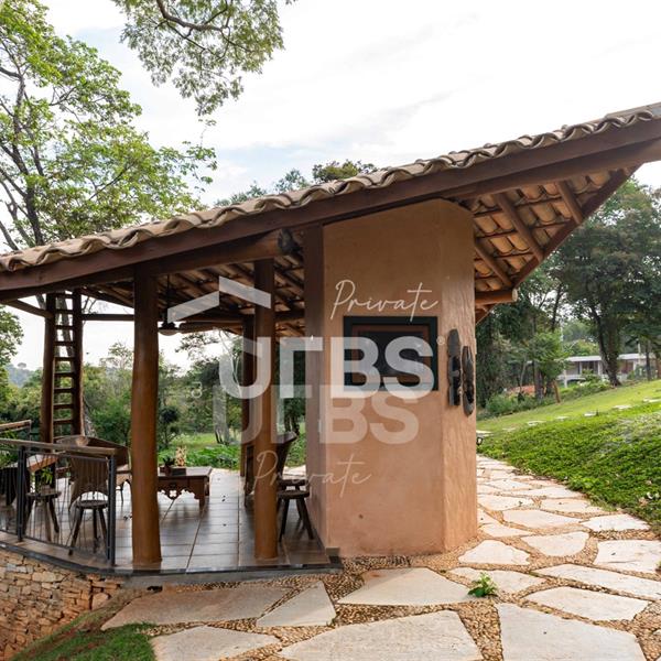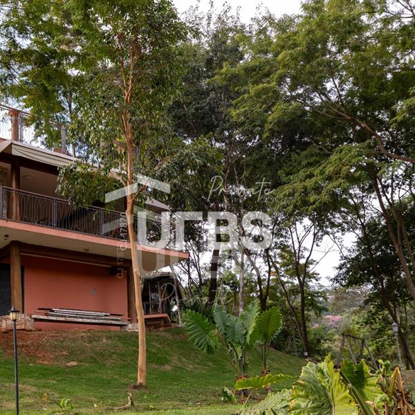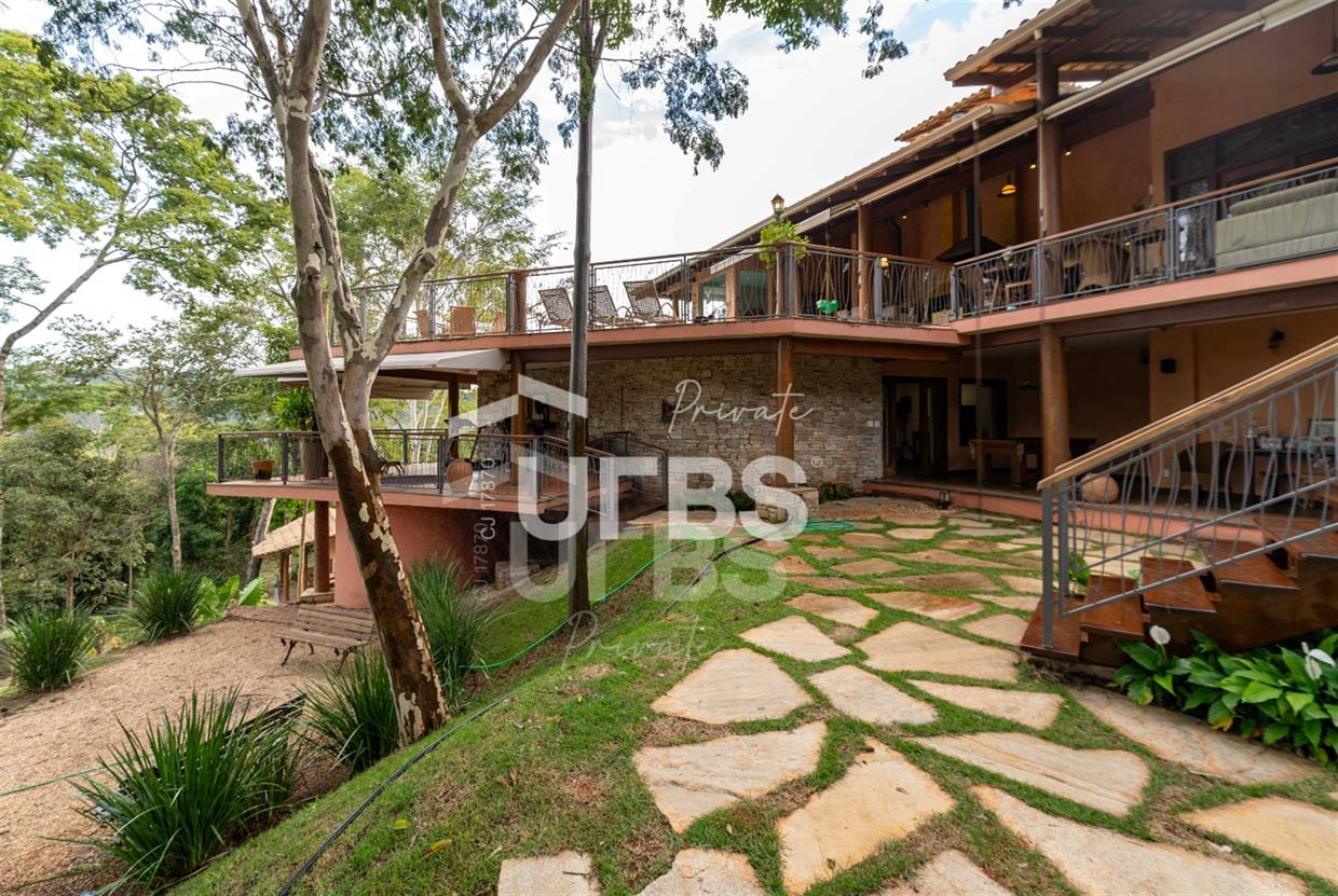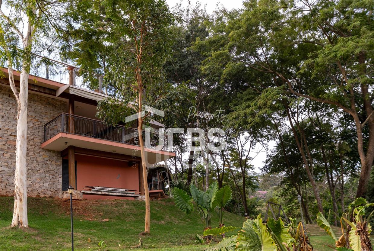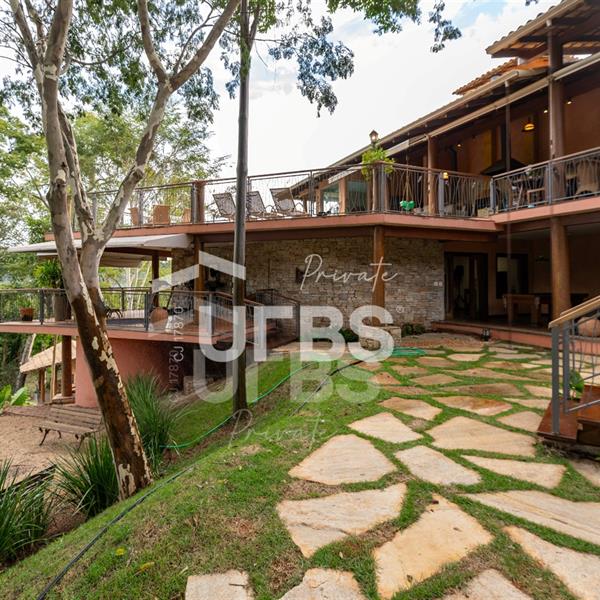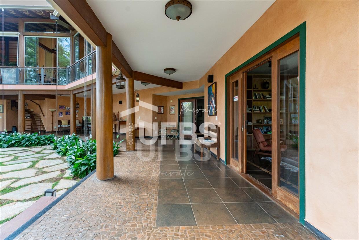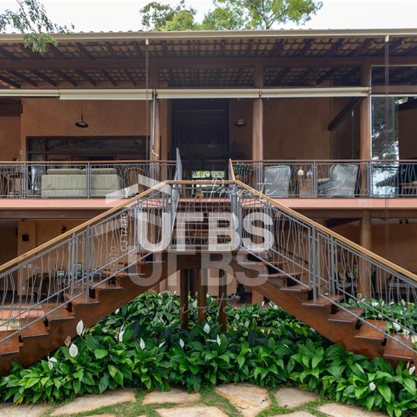 Sobrado à venda no Aldeia do Vale. Com 979 m2 de área construída, este magnífico sobrado está localizado em terreno único no Aldeia. São mais de 5.000 m2 todo em paisagismo com extensa vegetação e lindas árvores, tendo vista privilegiada para fundo de vale e lago. A casa conta com 5 suítes, garagem para 6 carros, aquecimento solar para piscina, chuveiros e torneiras, academia com spa, ampla área gourmet com churrasqueira e fogão à lenha, sauna, gazebo coberto com banheiro, área para fogueira, balanço para crianças e redário.