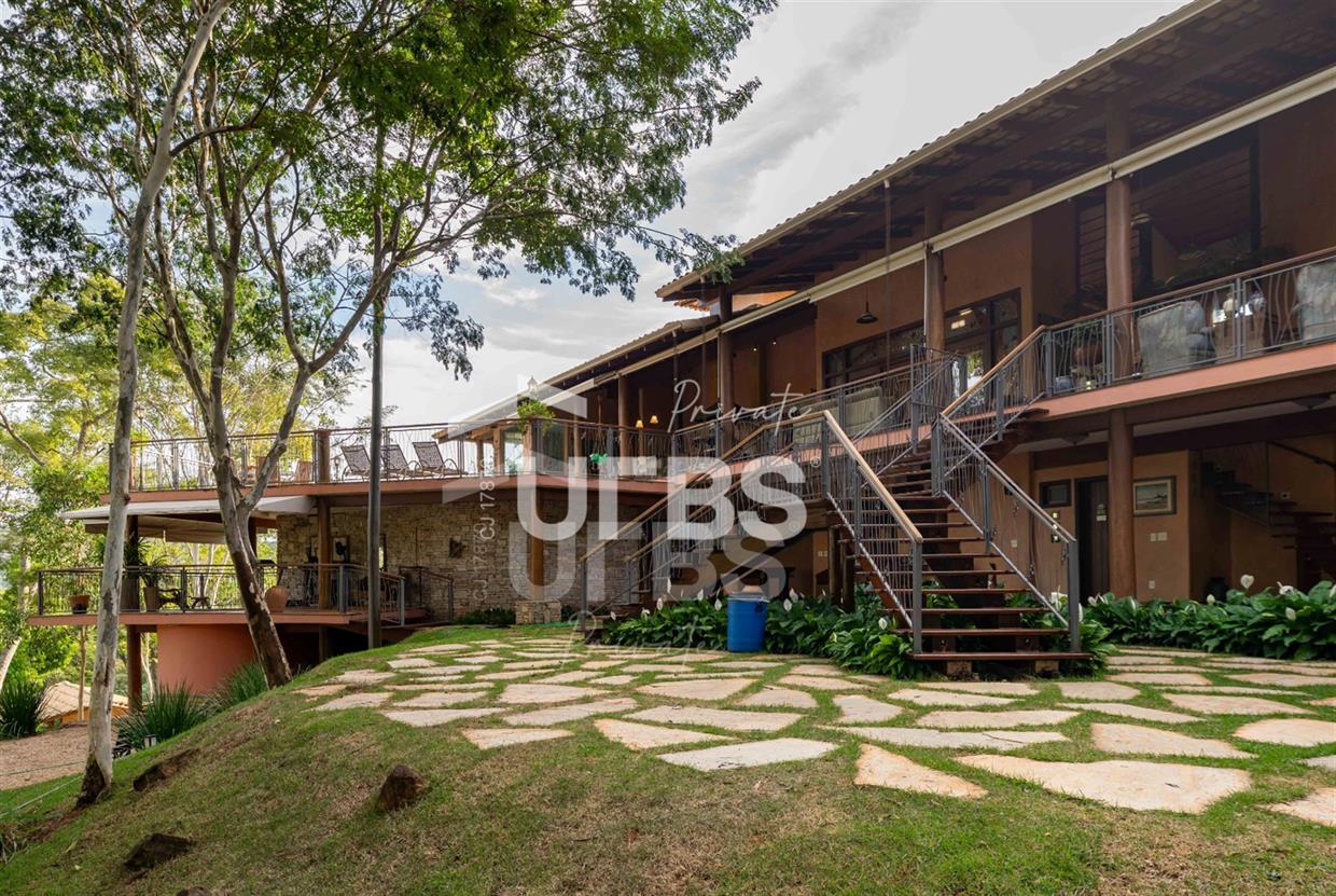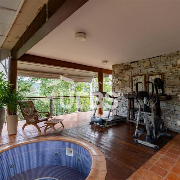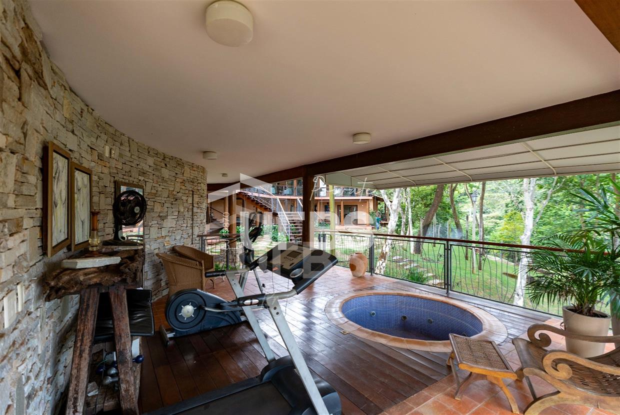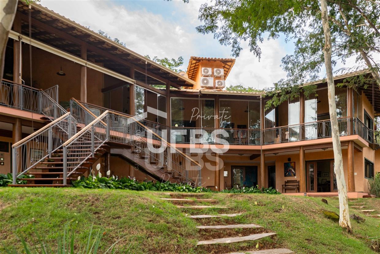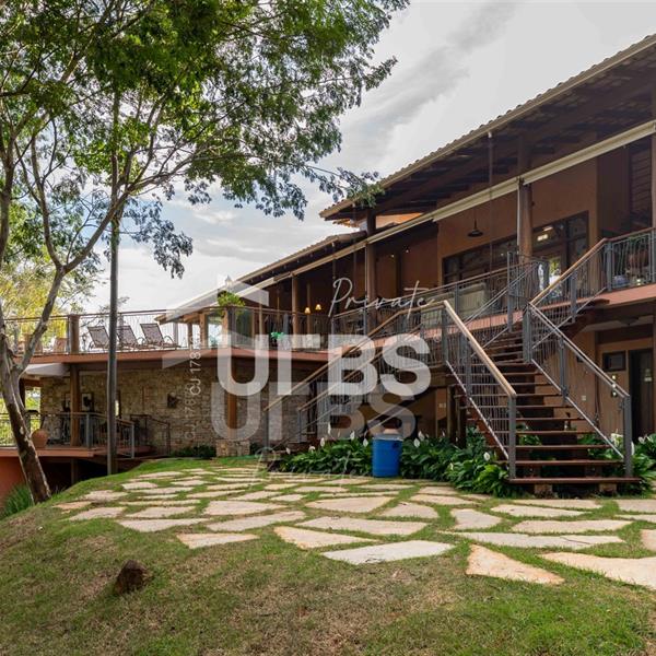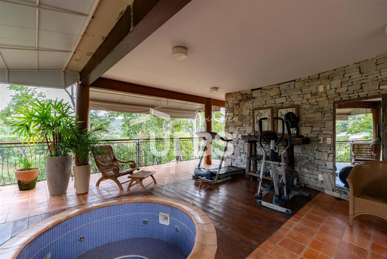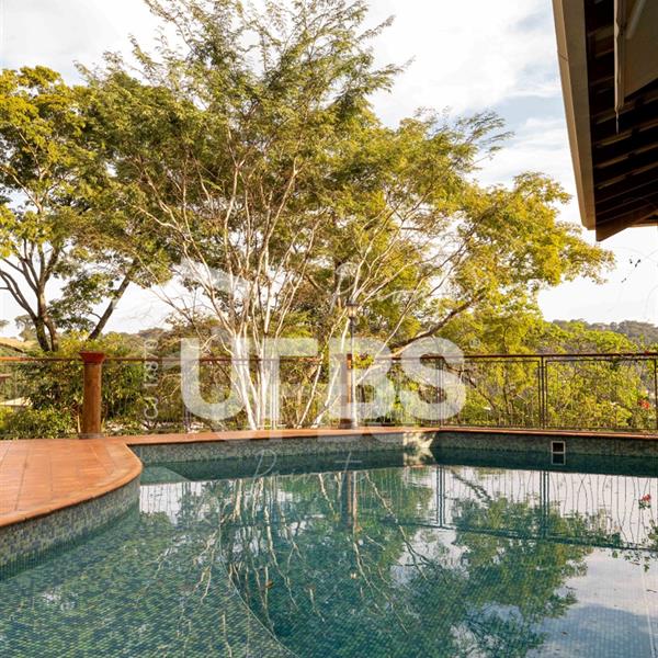 Sobrado à venda no Aldeia do Vale. Com 979 m2 de área construída, este magnífico sobrado está localizado em terreno único no Aldeia. São mais de 5.000 m2 todo em paisagismo com extensa vegetação e lindas árvores, tendo vista privilegiada para fundo de vale e lago. A casa conta com 5 suítes, garagem para 6 carros, aquecimento solar para piscina, chuveiros e torneiras, academia com spa, ampla área gourmet com churrasqueira e fogão à lenha, sauna, gazebo coberto com banheiro, área para fogueira, balanço para crianças e redário.
