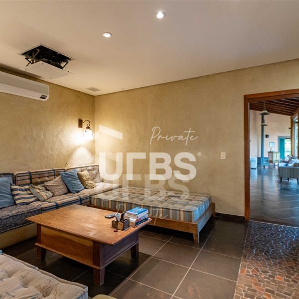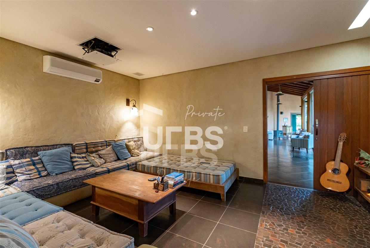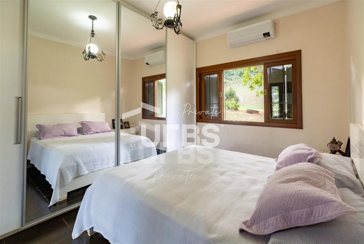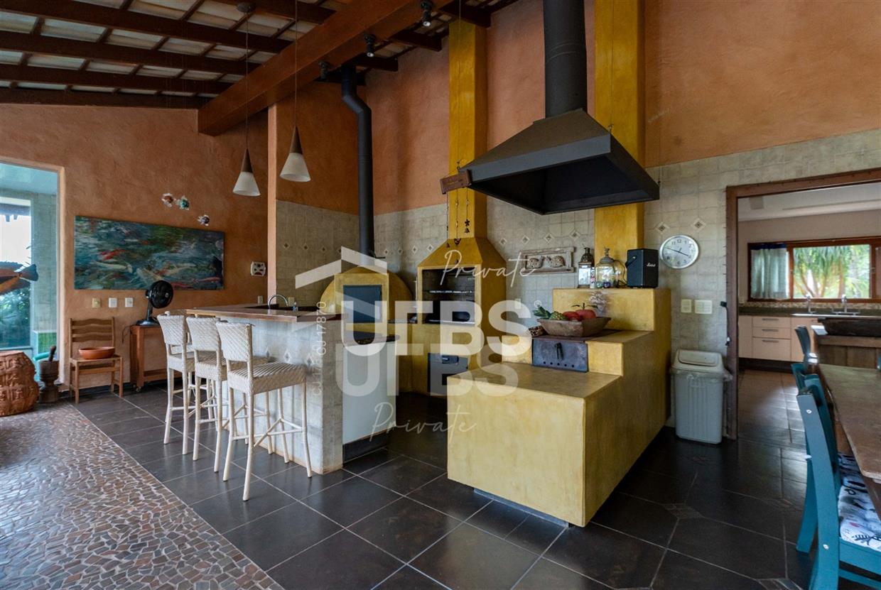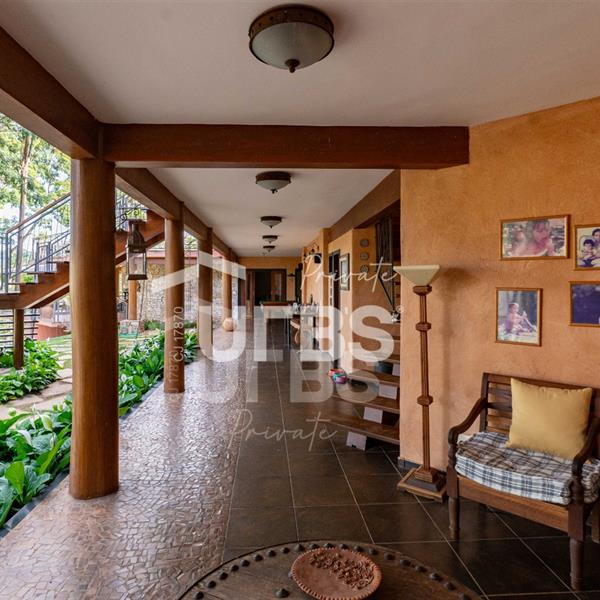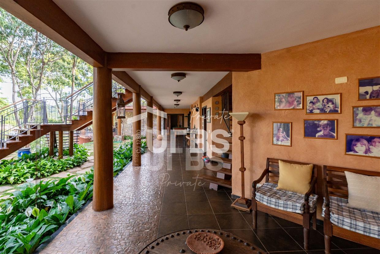 Sobrado à venda no Aldeia do Vale. Com 979 m2 de área construída, este magnífico sobrado está localizado em terreno único no Aldeia. São mais de 5.000 m2 todo em paisagismo com extensa vegetação e lindas árvores, tendo vista privilegiada para fundo de vale e lago. A casa conta com 5 suítes, garagem para 6 carros, aquecimento solar para piscina, chuveiros e torneiras, academia com spa, ampla área gourmet com churrasqueira e fogão à lenha, sauna, gazebo coberto com banheiro, área para fogueira, balanço para crianças e redário.