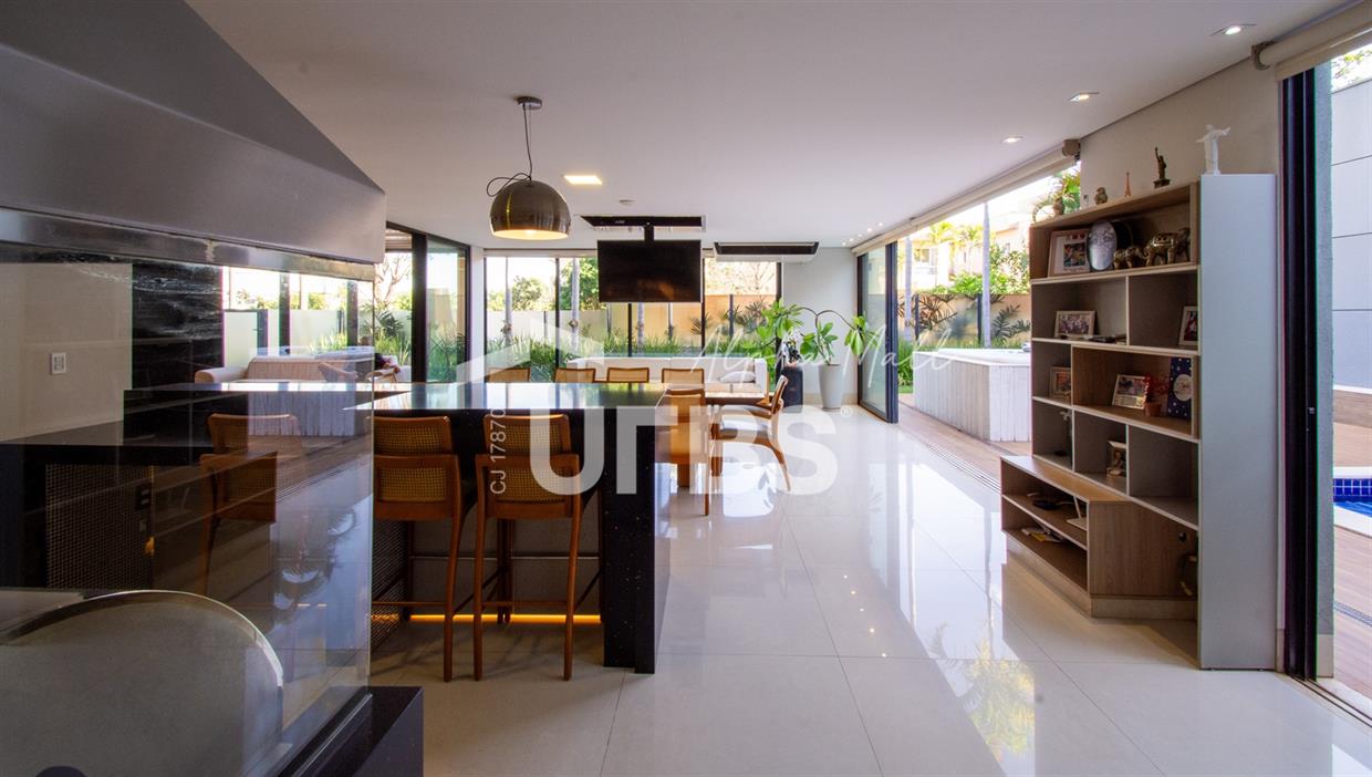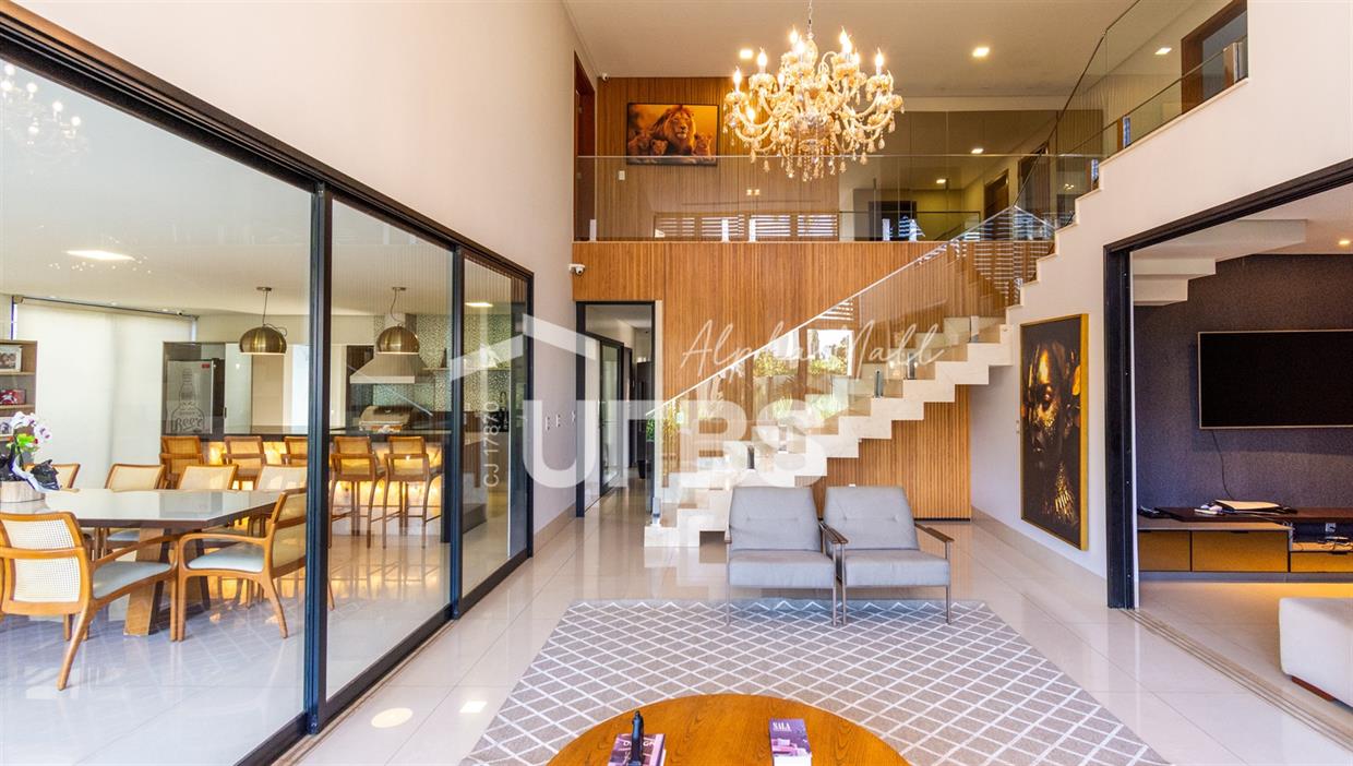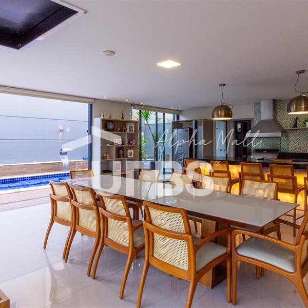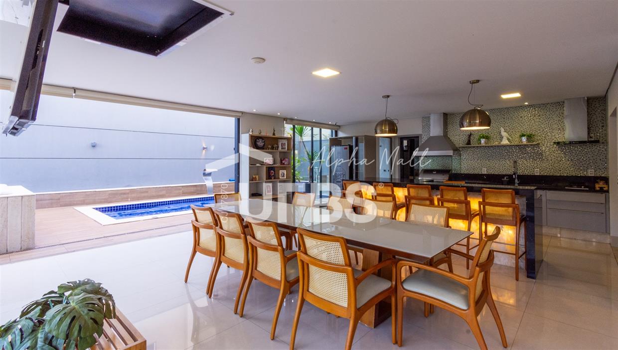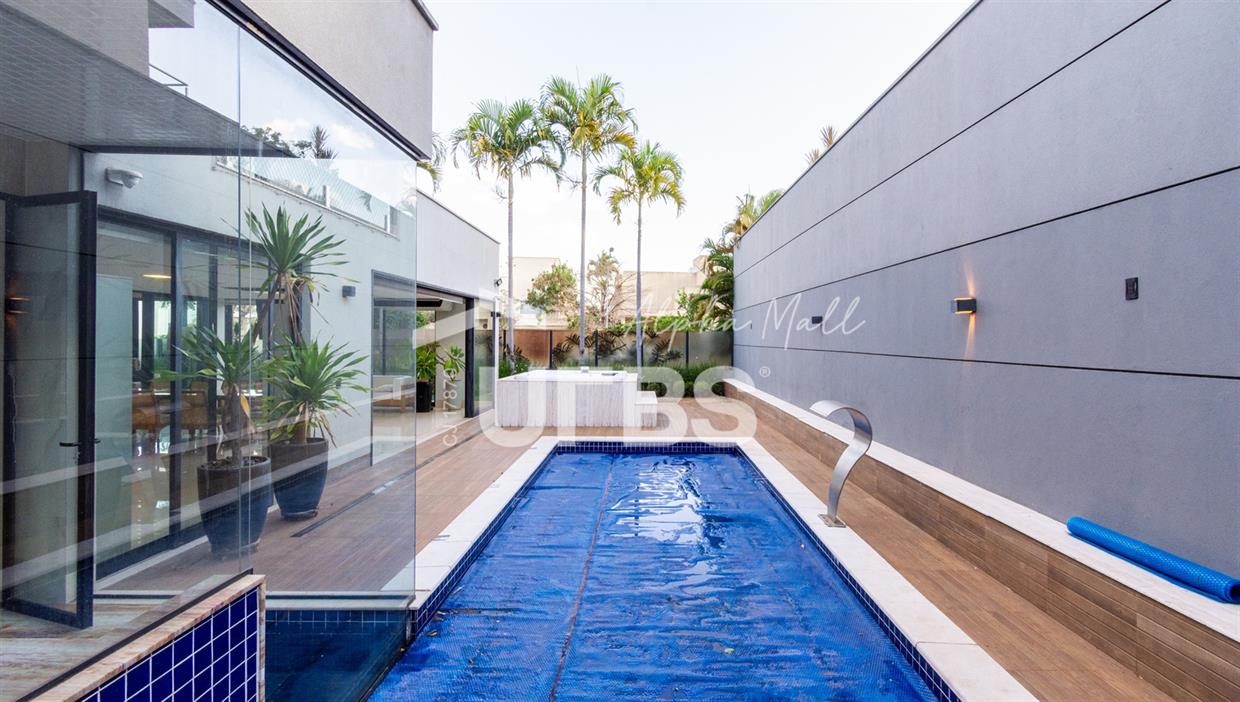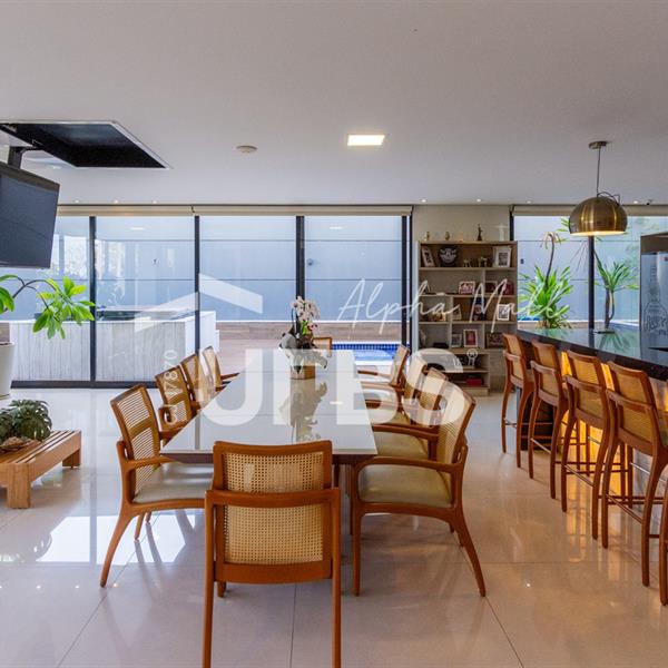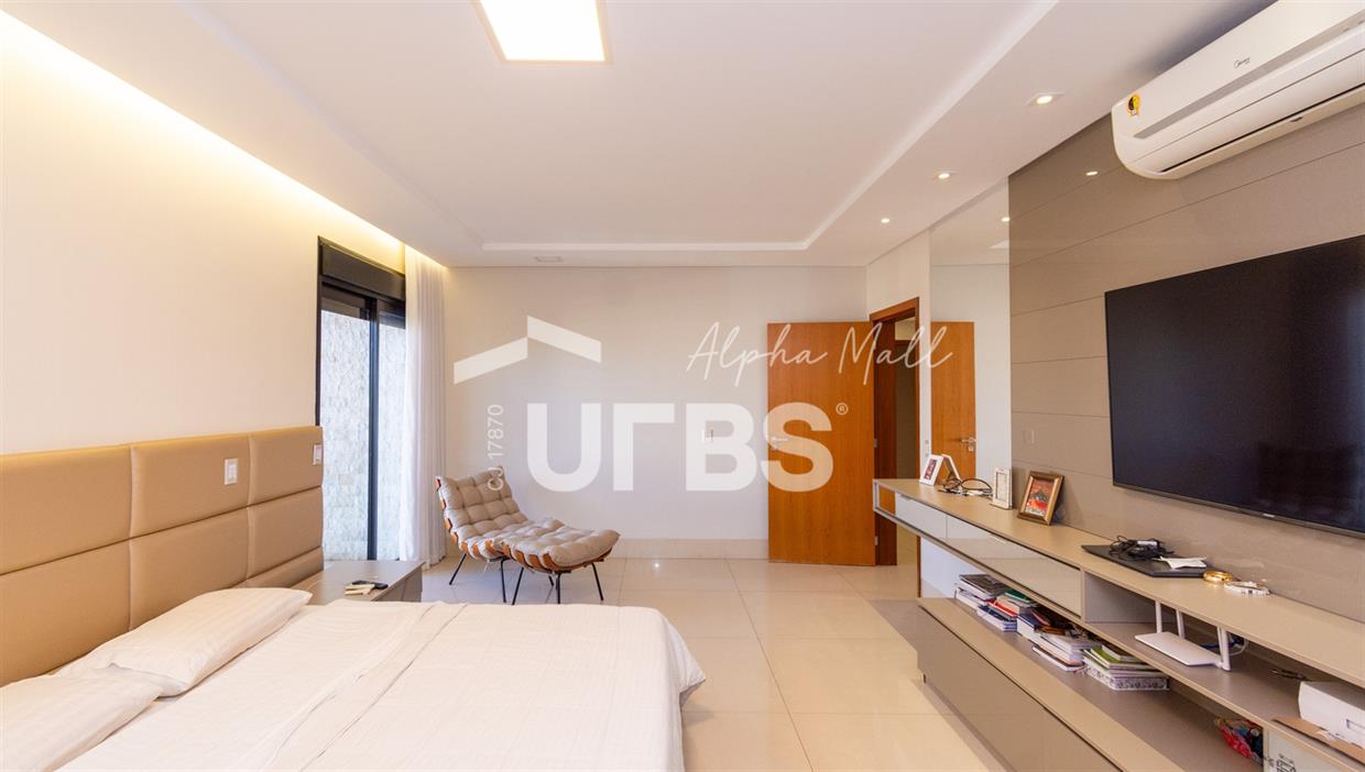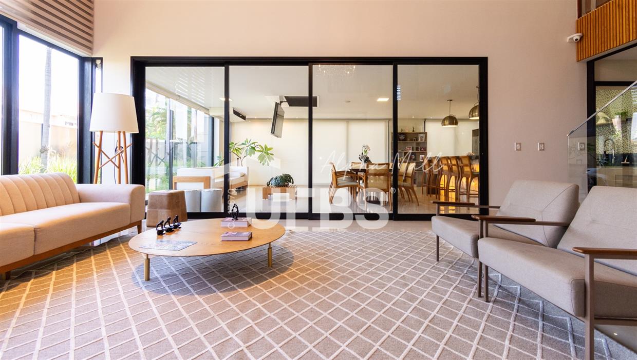 Sobrado de Esquina no Alphaville Araguaia – Sofisticação e Lazer Completo Descubra este belíssimo sobrado de esquina no Alphaville Araguaia, que une design moderno, conforto e lazer exclusivo em cada detalhe. São 543m² de terreno e 392m² de construção, projetados para oferecer praticidade e elegância em um dos condomínios mais desejados da região. No pavimento térreo, o living com pé-direito duplo impressiona pela amplitude e integração aos ambientes. A casa conta com 4 suítes e um escritório reversível para 5ª suíte, além de home cinema para momentos de entretenimento em família. A varanda gourmet climatizada, equipada com bancada em ilha e churrasqueira a carvão, é perfeita para receber amigos com conforto em qualquer estação. A cozinha completa, também com ilha central, alia sofisticação e funcionalidade. Na área externa, o lazer é um espetáculo à parte: piscina aquecida, spa para 8 pessoas, sauna molhada e muito espaço para relaxar e aproveitar ao máximo os dias de sol. O imóvel conta com usina fotovoltaica e poço artesiano. A garagem comporta até 4 veículos com total comodidade. Um imóvel que traduz qualidade de vida, exclusividade e requinte em cada detalhe.
