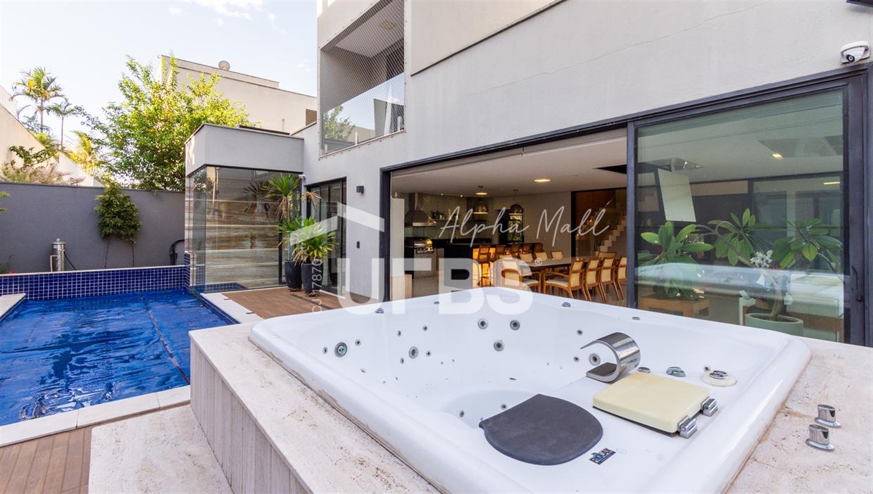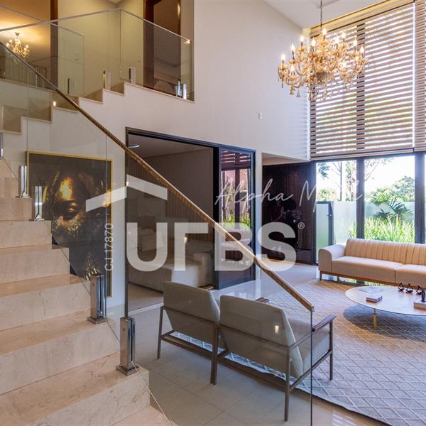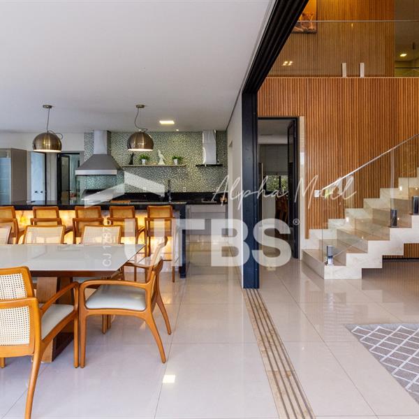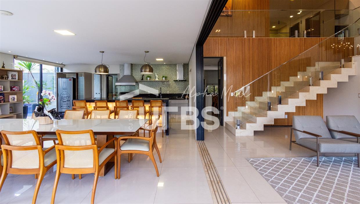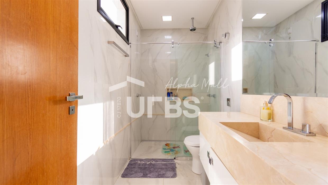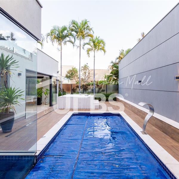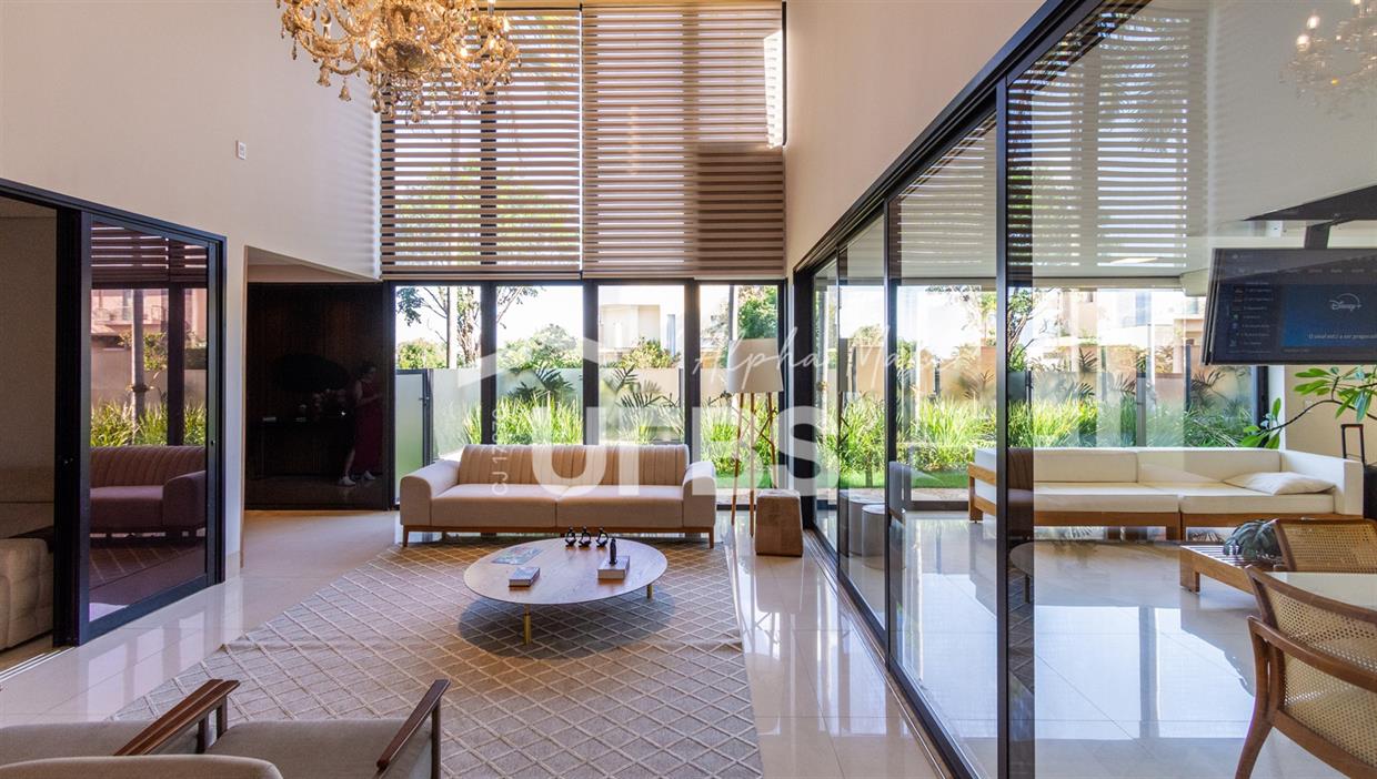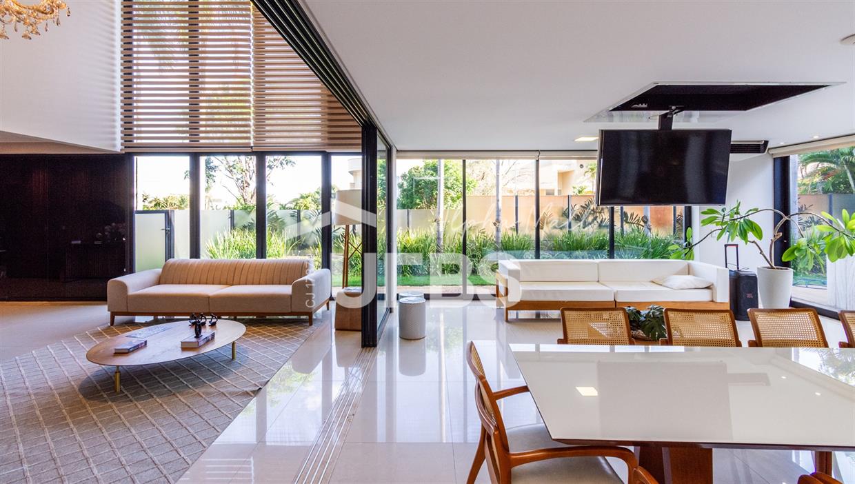 Sobrado de Esquina no Alphaville Araguaia – Sofisticação e Lazer Completo Descubra este belíssimo sobrado de esquina no Alphaville Araguaia, que une design moderno, conforto e lazer exclusivo em cada detalhe. São 543m² de terreno e 392m² de construção, projetados para oferecer praticidade e elegância em um dos condomínios mais desejados da região. No pavimento térreo, o living com pé-direito duplo impressiona pela amplitude e integração aos ambientes. A casa conta com 4 suítes e um escritório reversível para 5ª suíte, além de home cinema para momentos de entretenimento em família. A varanda gourmet climatizada, equipada com bancada em ilha e churrasqueira a carvão, é perfeita para receber amigos com conforto em qualquer estação. A cozinha completa, também com ilha central, alia sofisticação e funcionalidade. Na área externa, o lazer é um espetáculo à parte: piscina aquecida, spa para 8 pessoas, sauna molhada e muito espaço para relaxar e aproveitar ao máximo os dias de sol. O imóvel conta com usina fotovoltaica e poço artesiano. A garagem comporta até 4 veículos com total comodidade. Um imóvel que traduz qualidade de vida, exclusividade e requinte em cada detalhe.